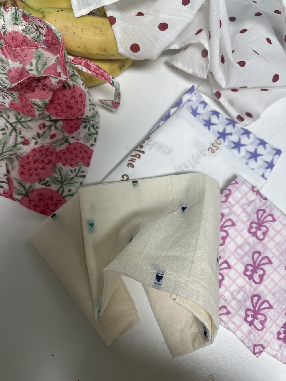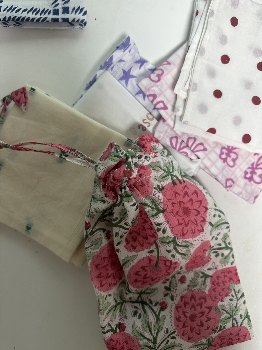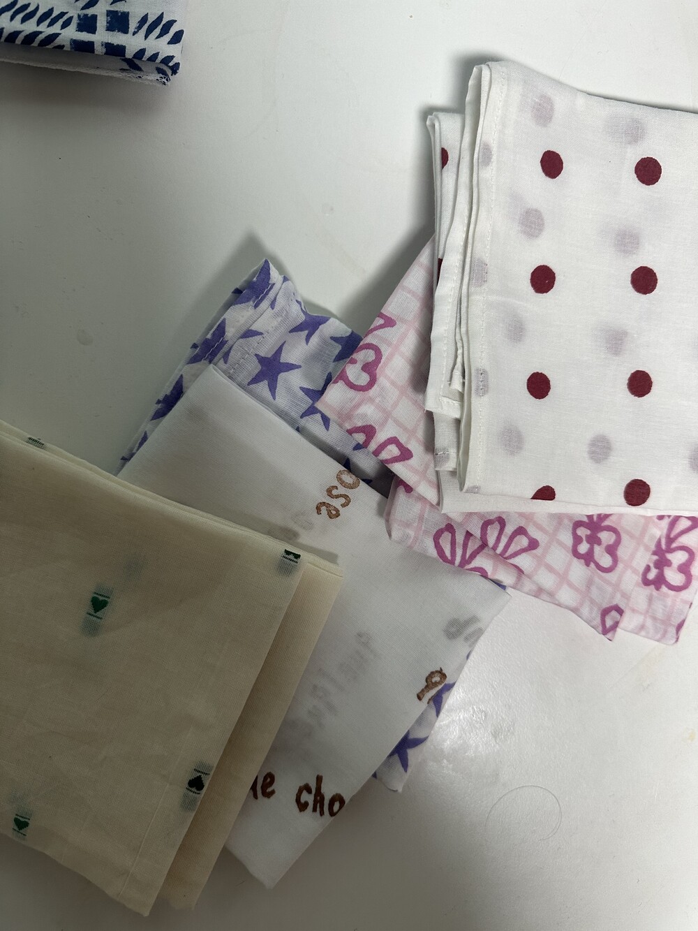 52*52 센티미터의 아사면 손수건이에요.요 구성안에서의 삼종 랜덤 패브릭 수건과 작은 파우치까지 선물셋트로 준비했어요.손수건은 목에 감기에도 좋은 사이즈에요.