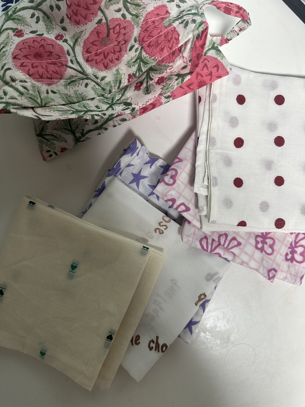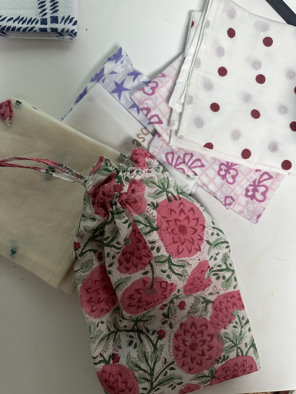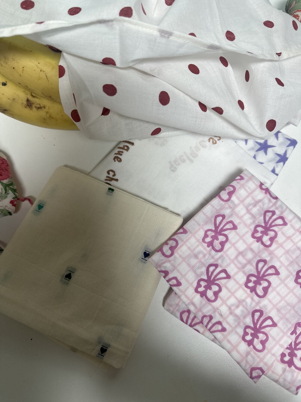 52*52 센티미터의 아사면 손수건이에요.요 구성안에서의 삼종 랜덤 패브릭 수건과 작은 파우치까지 선물셋트로 준비했어요.손수건은 목에 감기에도 좋은 사이즈에요.
