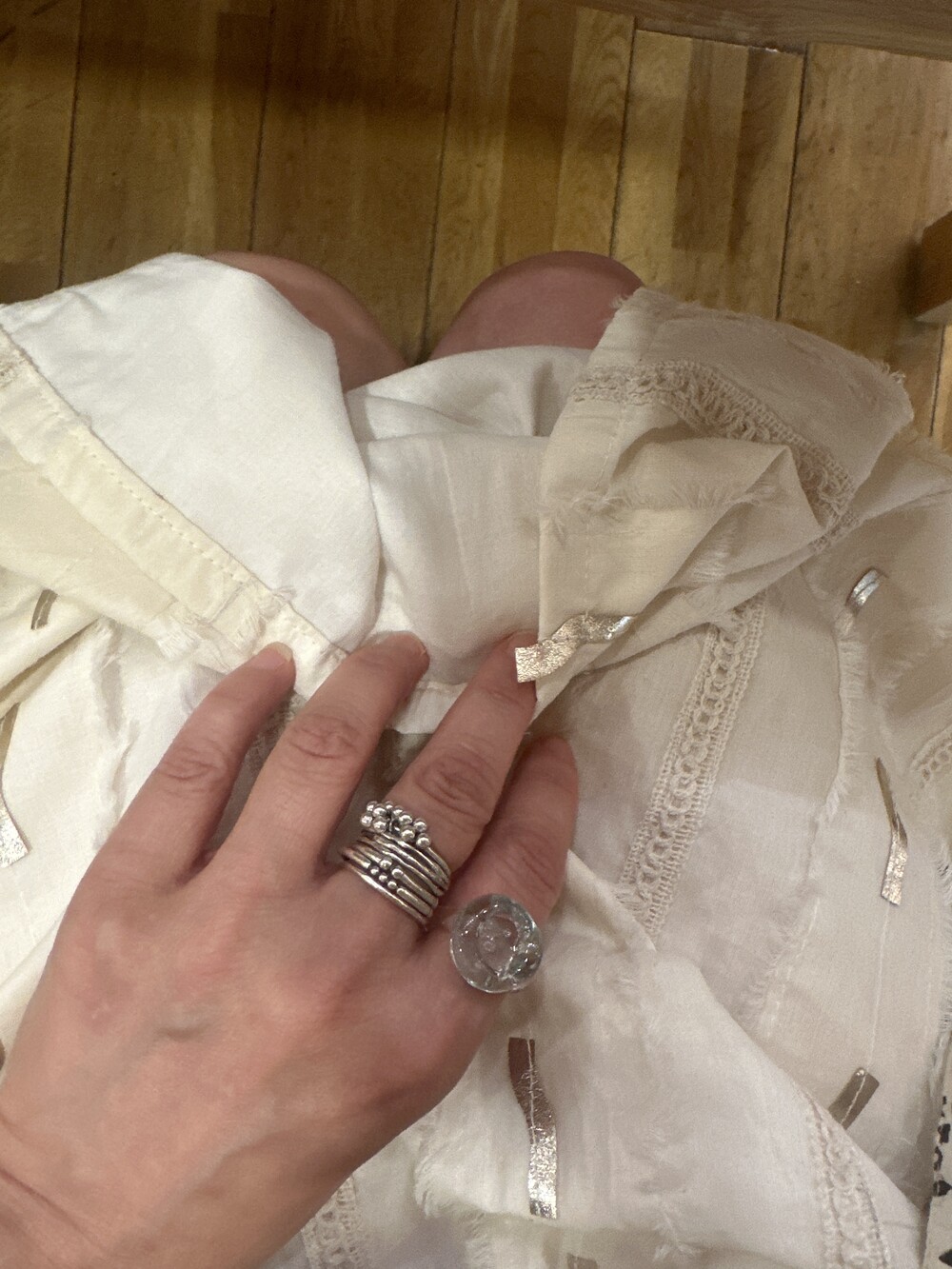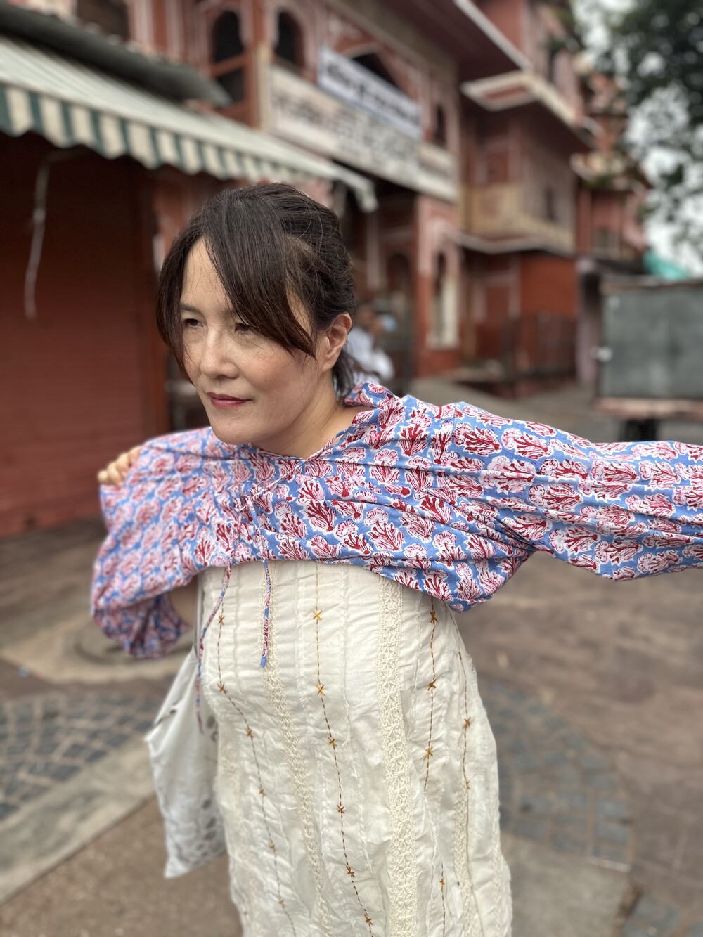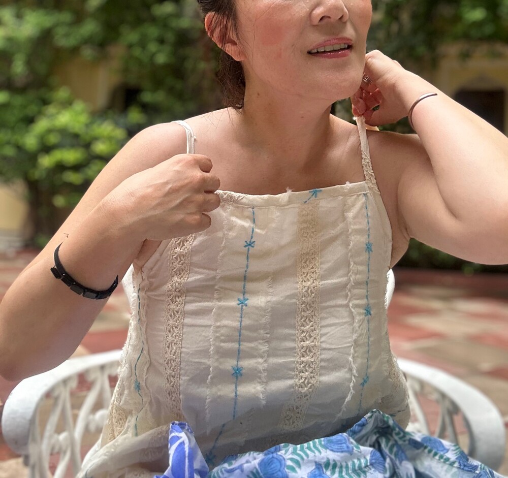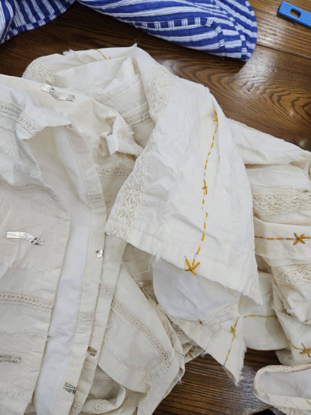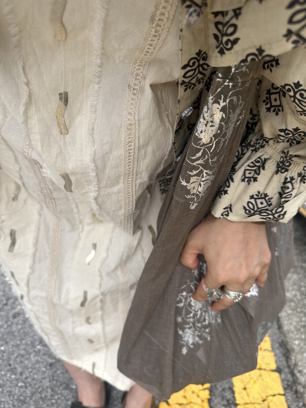 끈길이 제외 기장 109센티이고 가슴둘레 52-54(미듐)56-65(라지)이며 뒷부분 고무줄로 되어있어요.안감이 내장되어있어서 편히 입으시면되요. 프리오더할인가로 주문되고 추석이후 인도에서 출발해요.정말 아름다운 소재에요.주문제작으로 단순변심 교환환불 힘들어요❤️ 덧대고 붙여서 만든 정말 예쁜소재에요.소장가치충분,일상에도 편히 입으시고 조금 드레스업 하고싶은 날도! 실버와 블루컬러만주문가능해요
