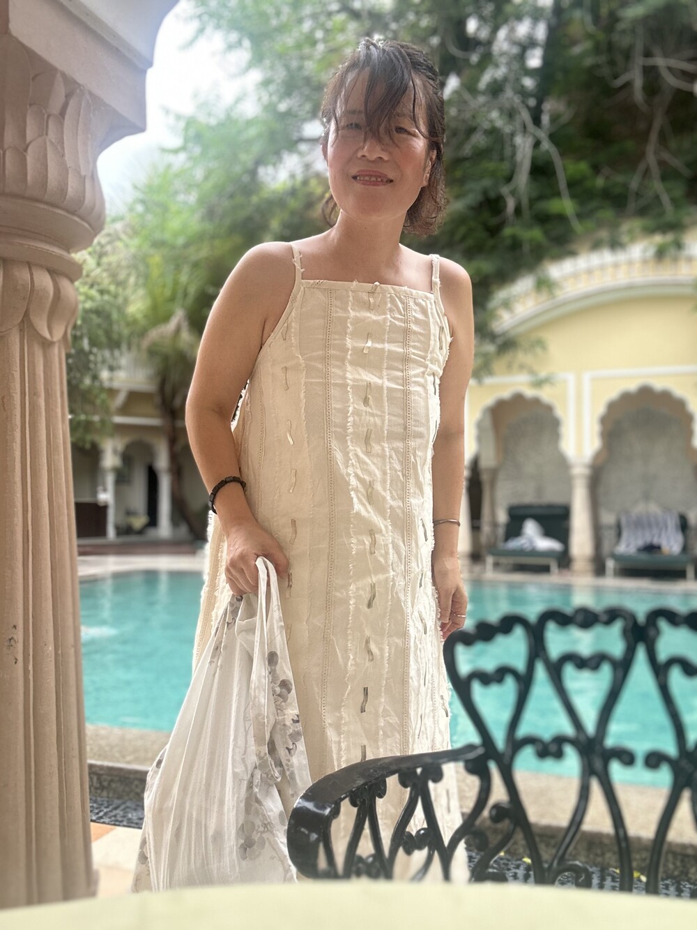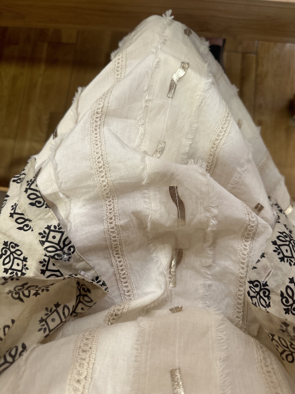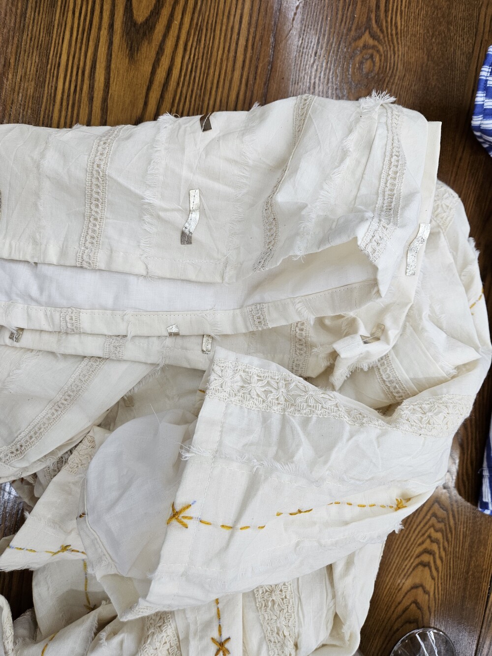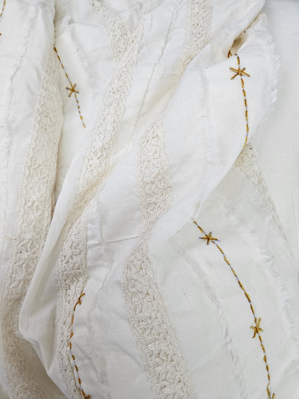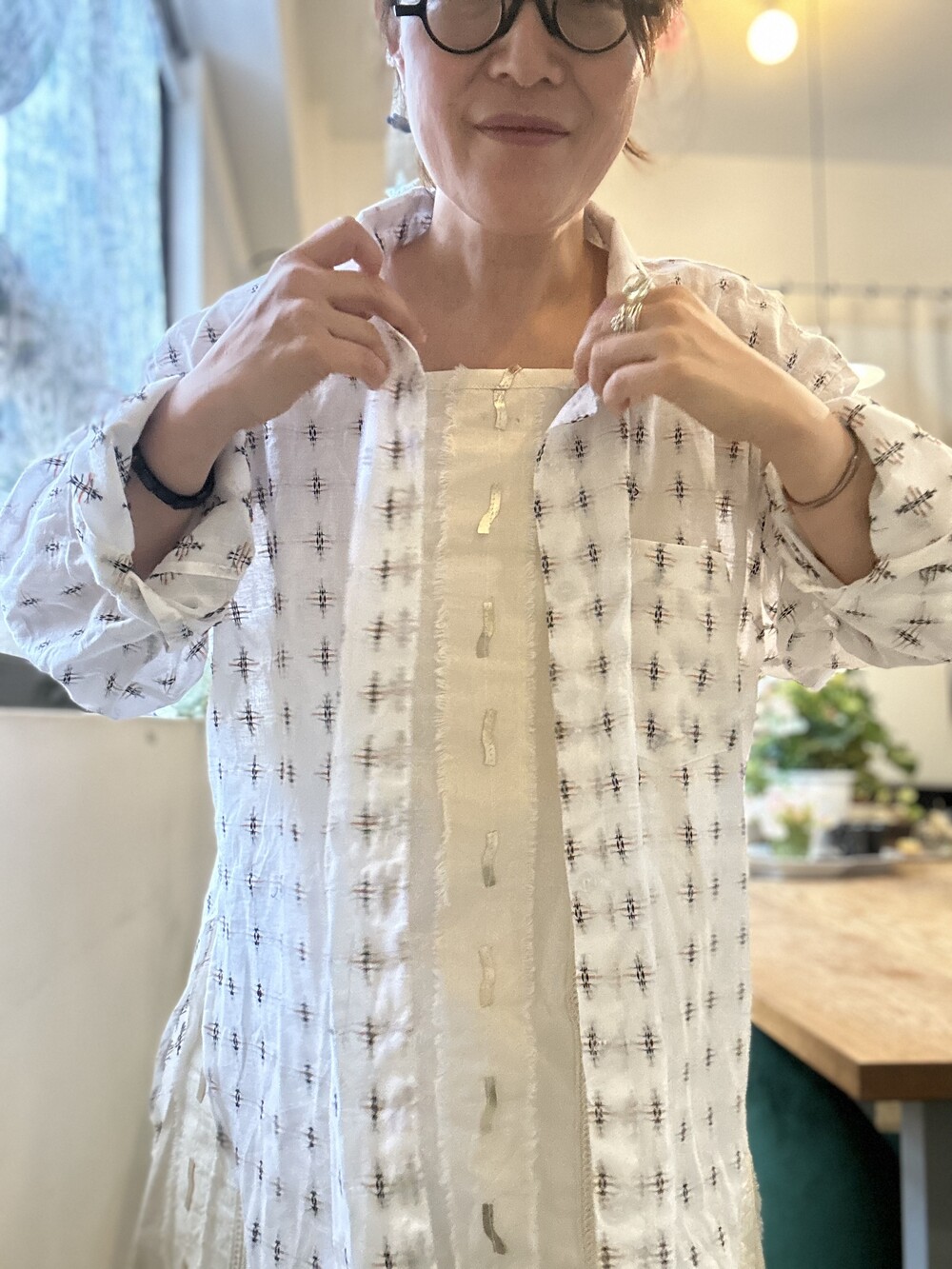 끈길이 제외 기장 109센티이고 가슴둘레 52-54(미듐)56-65(라지)이며 뒷부분 고무줄로 되어있어요.안감이 내장되어있어서 편히 입으시면되요. 프리오더할인가로 주문되고 추석이후 인도에서 출발해요.정말 아름다운 소재에요.주문제작으로 단순변심 교환환불 힘들어요❤️ 덧대고 붙여서 만든 정말 예쁜소재에요.소장가치충분,일상에도 편히 입으시고 조금 드레스업 하고싶은 날도! 실버와 블루컬러만주문가능해요
