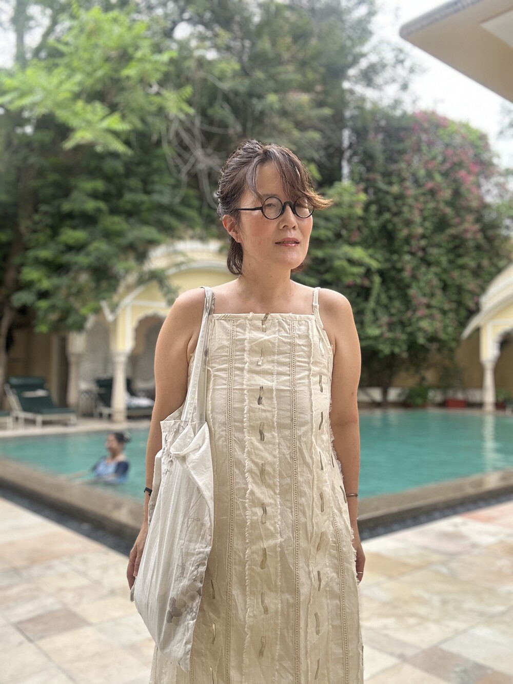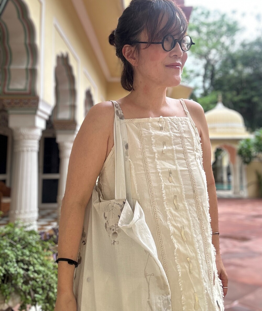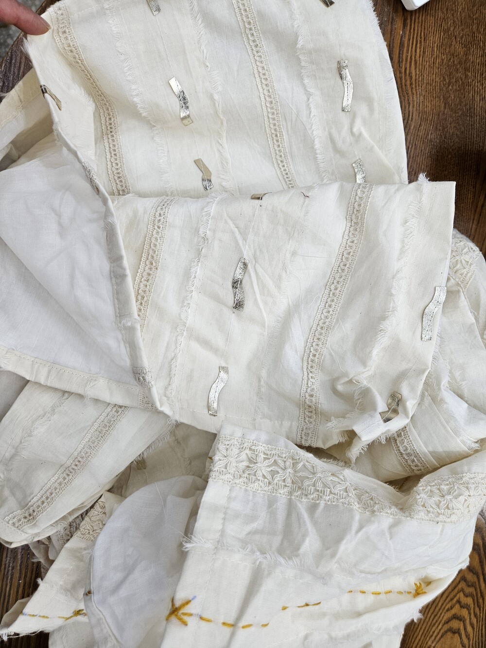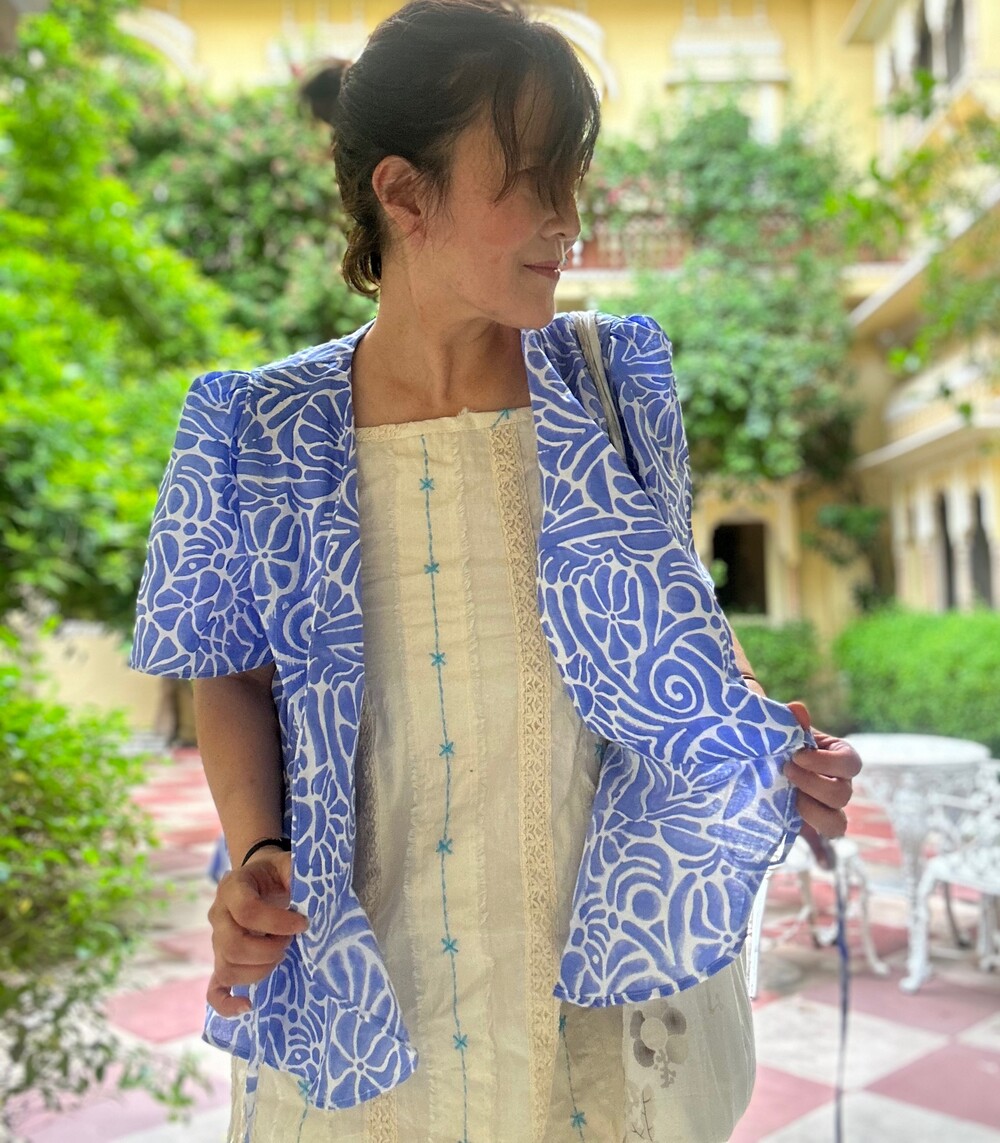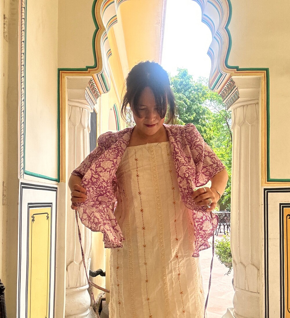끈길이 제외 기장 109센티이고 가슴둘레 52-54(미듐)56-65(라지)이며 뒷부분 고무줄로 되어있어요.안감이 내장되어있어서 편히 입으시면되요. 프리오더할인가로 주문되고 추석이후 인도에서 출발해요.정말 아름다운 소재에요.주문제작으로 단순변심 교환환불 힘들어요❤️ 덧대고 붙여서 만든 정말 예쁜소재에요.소장가치충분,일상에도 편히 입으시고 조금 드레스업 하고싶은 날도! 실버와 블루컬러만주문가능해요