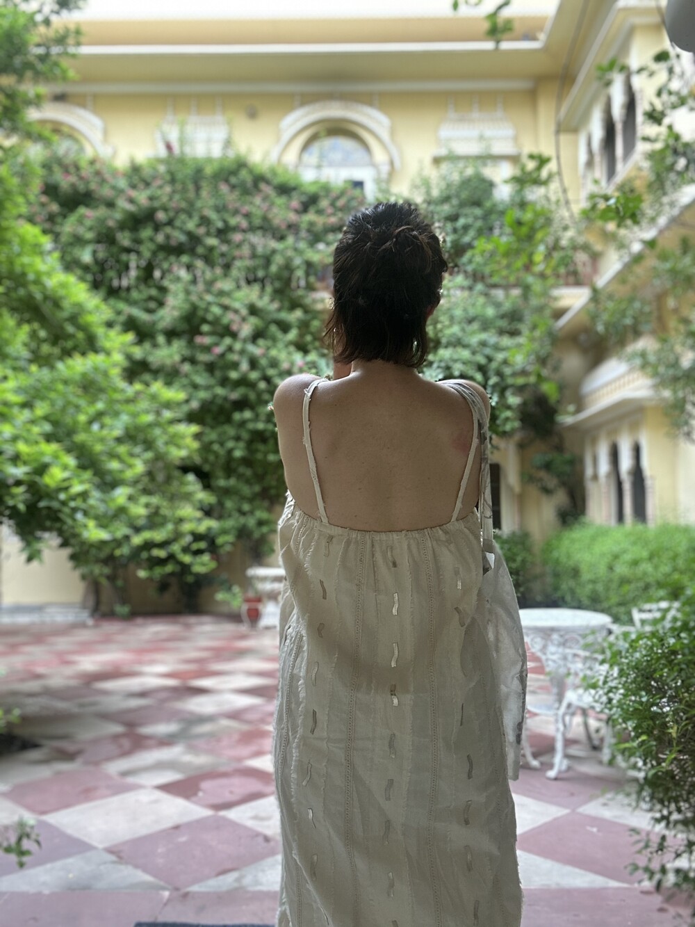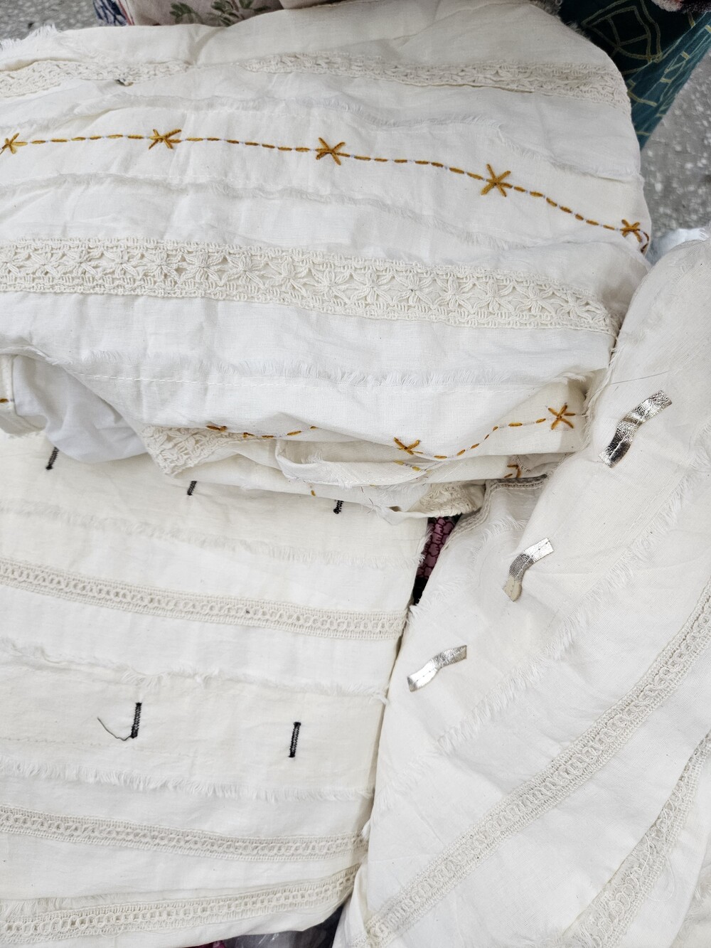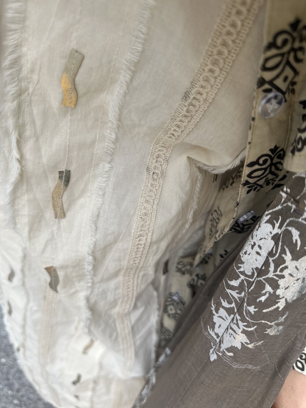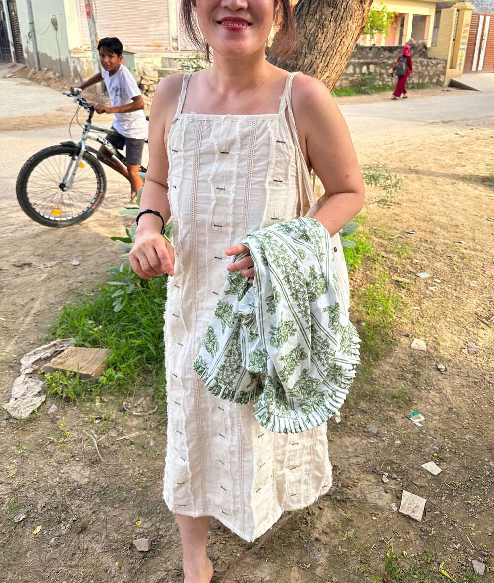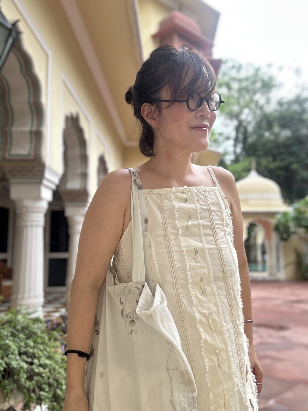 끈길이 제외 기장 109센티이고 가슴둘레 52-54(미듐)56-65(라지)이며 뒷부분 고무줄로 되어있어요.안감이 내장되어있어서 편히 입으시면되요. 프리오더할인가로 주문되고 추석이후 인도에서 출발해요.정말 아름다운 소재에요.주문제작으로 단순변심 교환환불 힘들어요❤️ 덧대고 붙여서 만든 정말 예쁜소재에요.소장가치충분,일상에도 편히 입으시고 조금 드레스업 하고싶은 날도! 실버와 블루컬러만주문가능해요