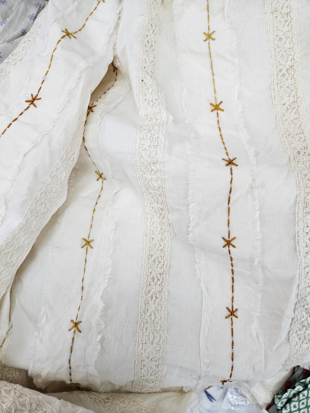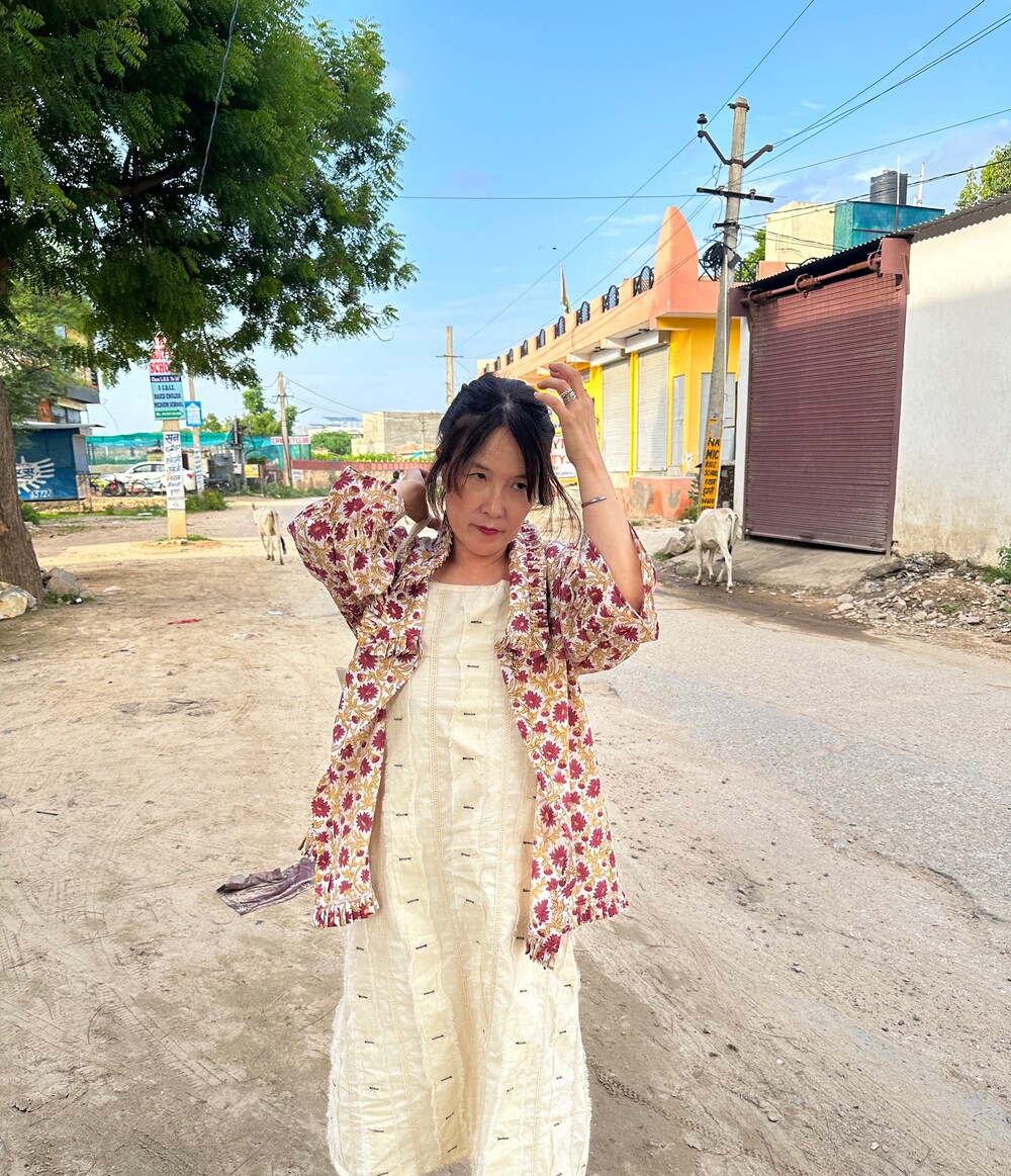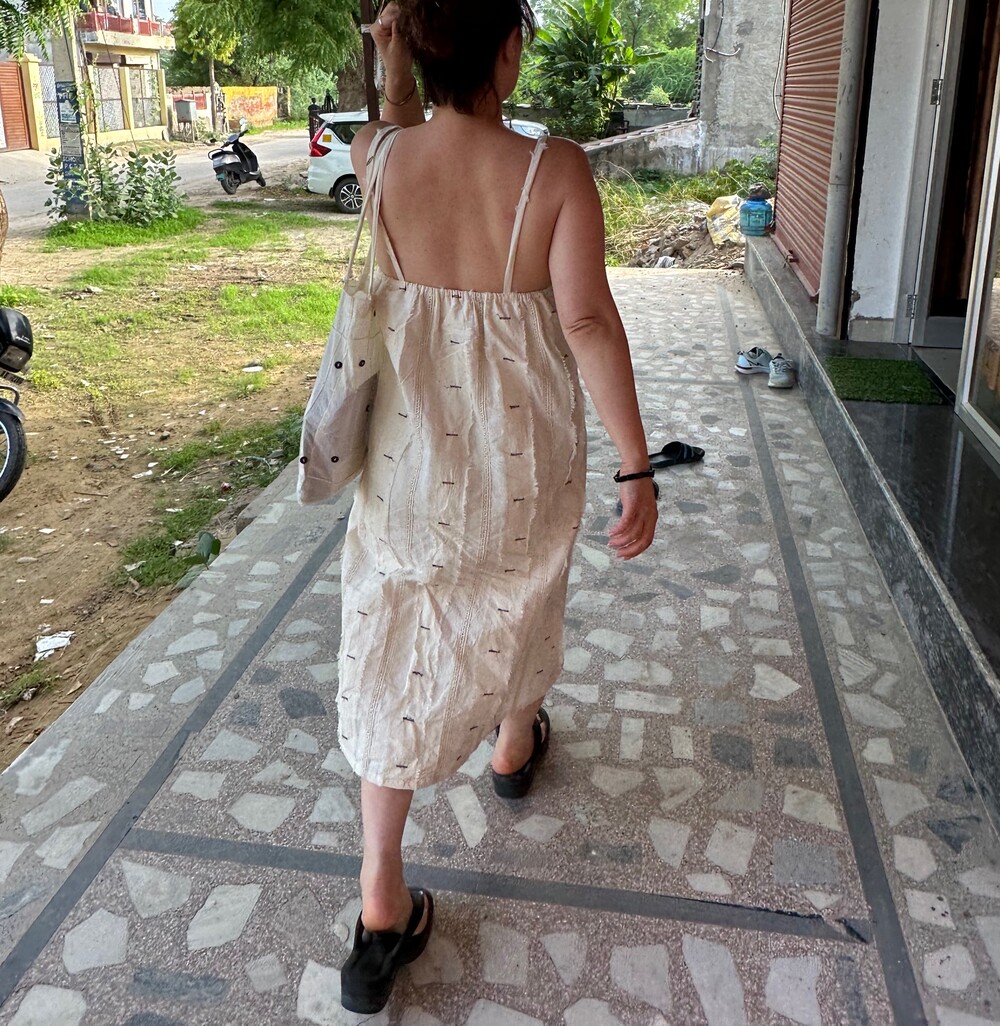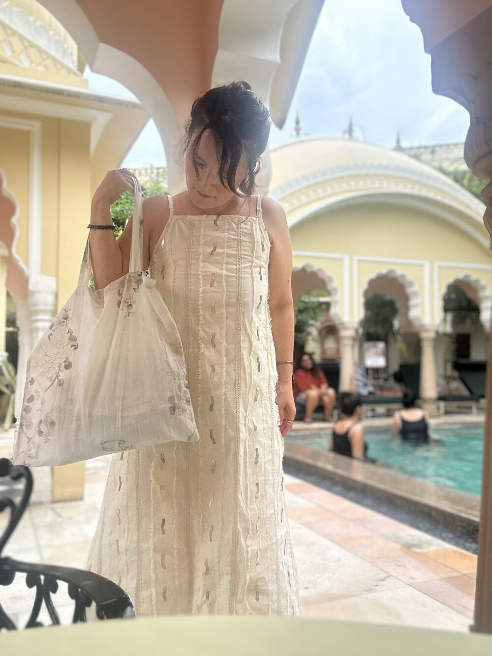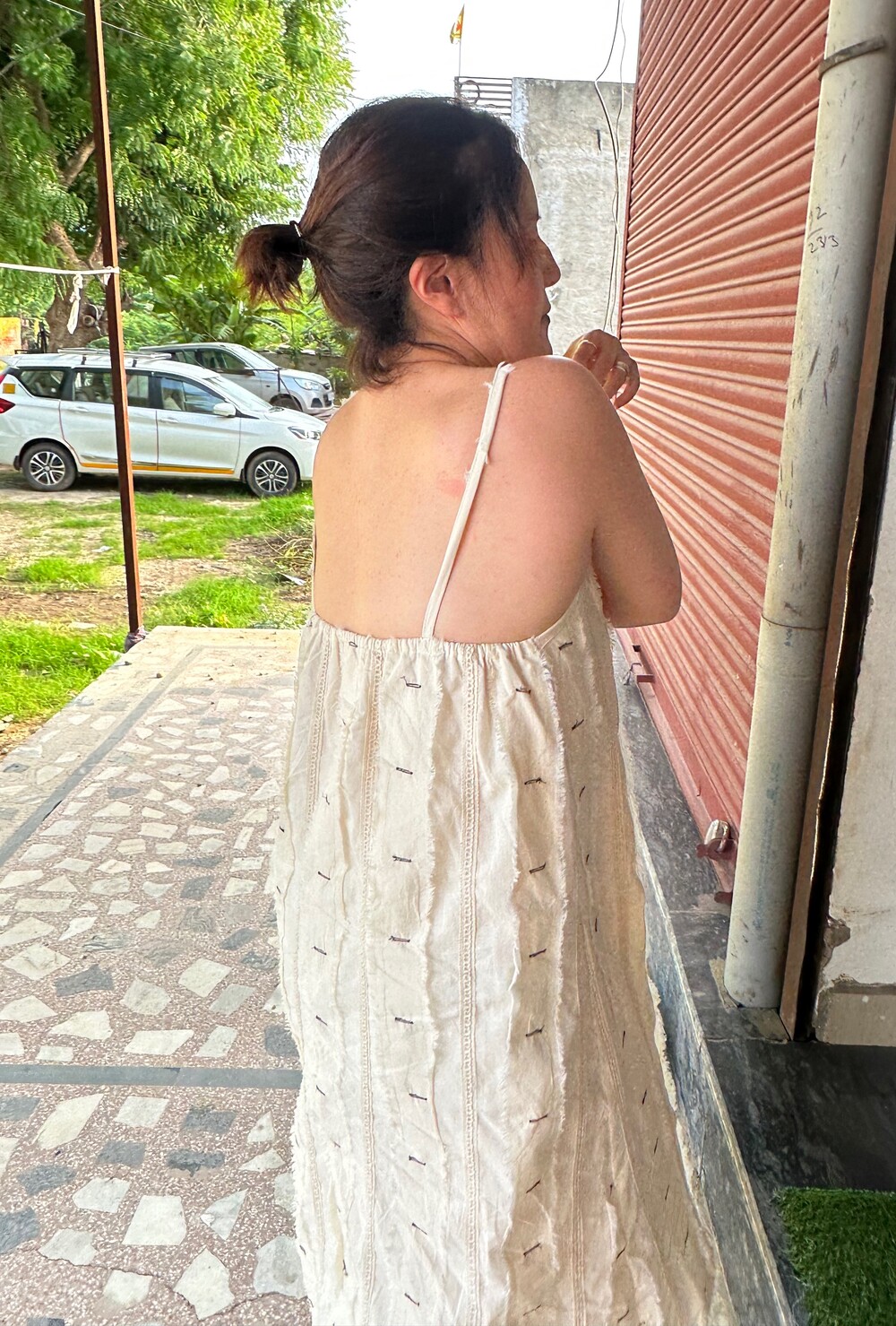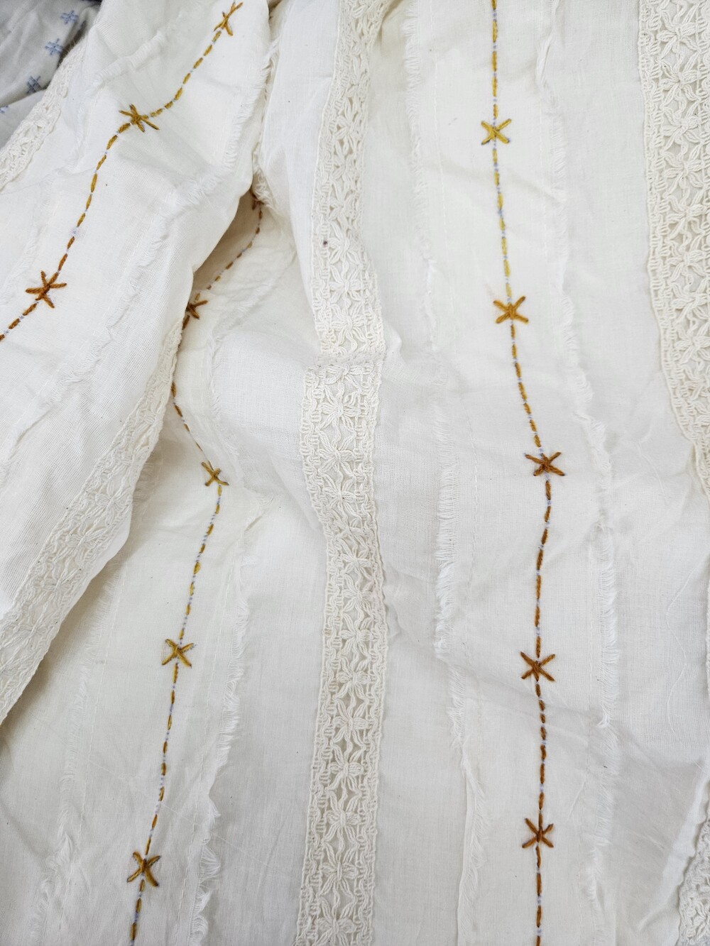 끈길이 제외 기장 109센티이고 가슴둘레 52-54(미듐)56-65(라지)이며 뒷부분 고무줄로 되어있어요.안감이 내장되어있어서 편히 입으시면되요. 프리오더할인가로 주문되고 추석이후 인도에서 출발해요.정말 아름다운 소재에요.주문제작으로 단순변심 교환환불 힘들어요❤️ 덧대고 붙여서 만든 정말 예쁜소재에요.소장가치충분,일상에도 편히 입으시고 조금 드레스업 하고싶은 날도! 실버와 블루컬러만주문가능해요