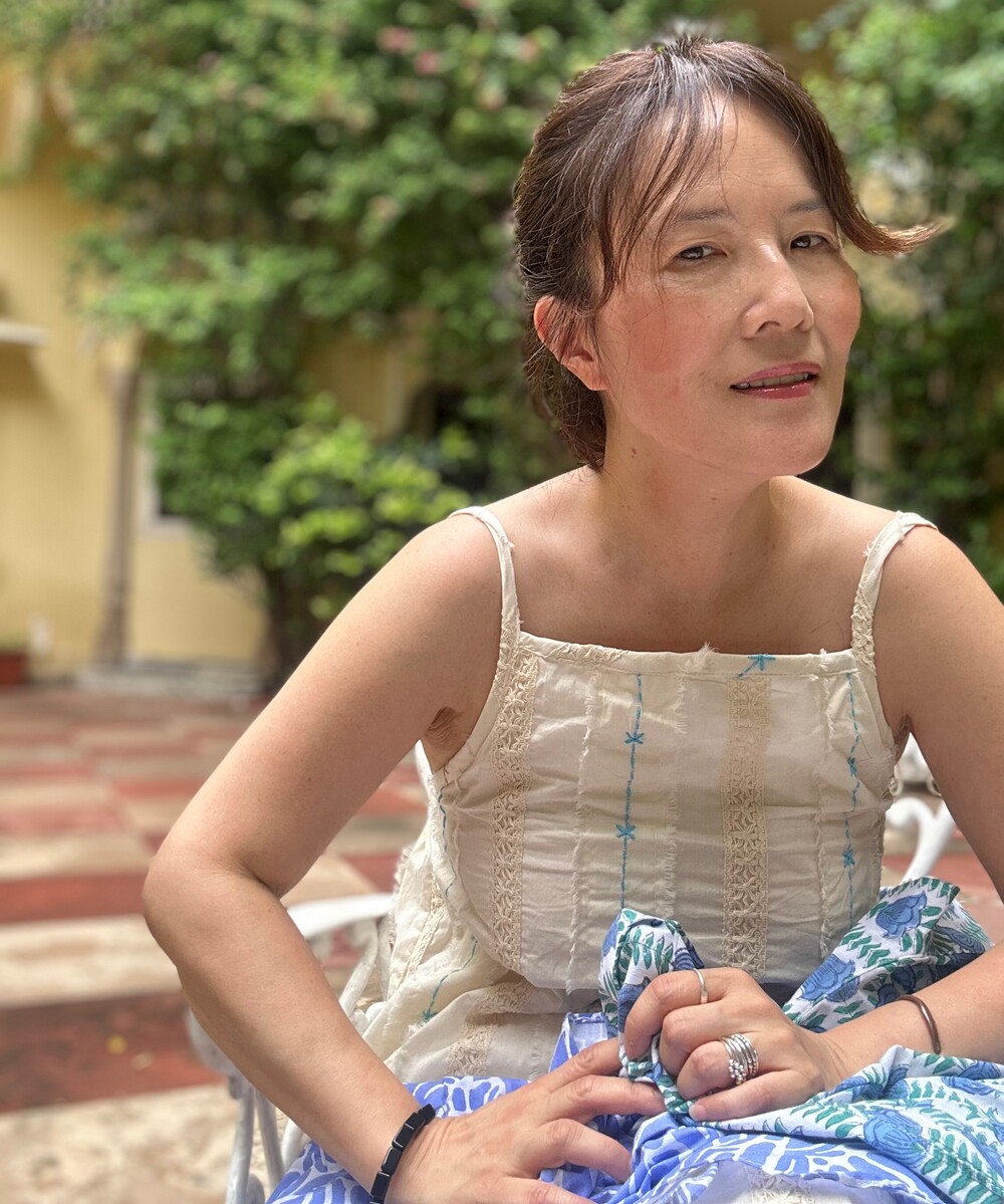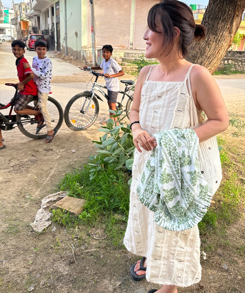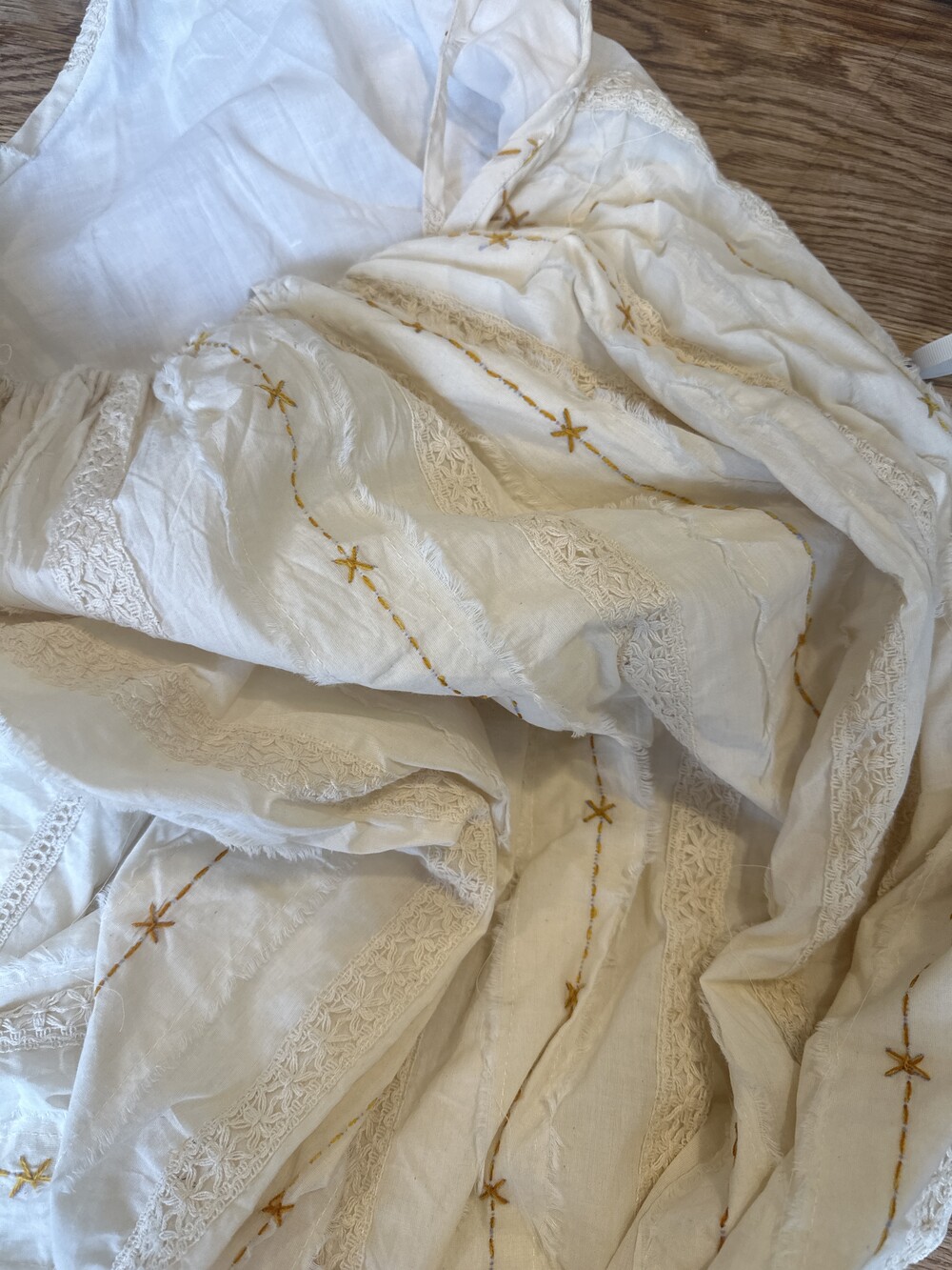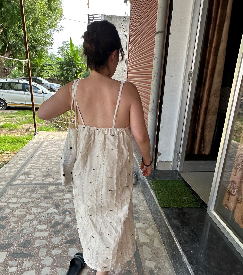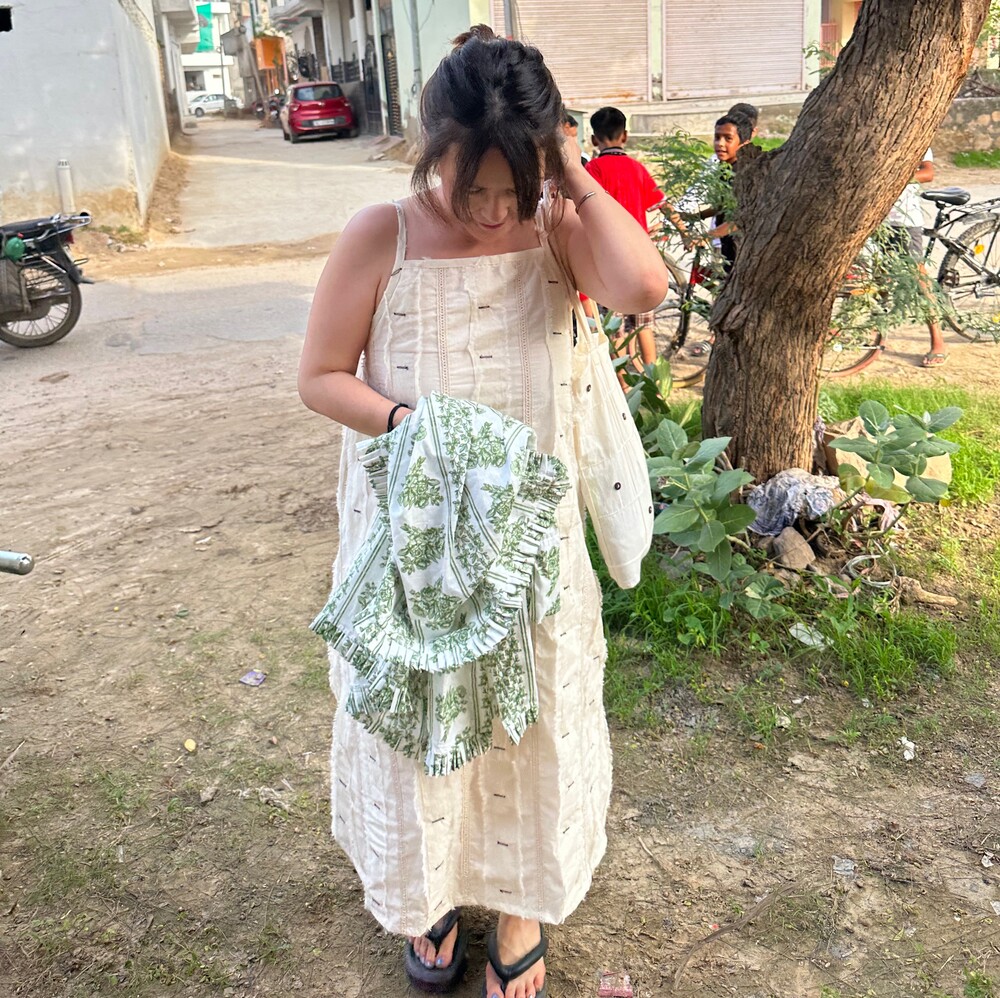 끈길이 제외 기장 109센티이고 가슴둘레 52-54(미듐)56-65(라지)이며 뒷부분 고무줄로 되어있어요.안감이 내장되어있어서 편히 입으시면되요. 프리오더할인가로 주문되고 추석이후 인도에서 출발해요.정말 아름다운 소재에요.주문제작으로 단순변심 교환환불 힘들어요❤️ 덧대고 붙여서 만든 정말 예쁜소재에요.소장가치충분,일상에도 편히 입으시고 조금 드레스업 하고싶은 날도! 실버와 블루컬러만주문가능해요