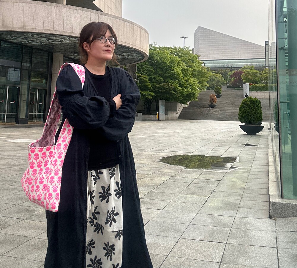 좀 예쁘라거 중간에 한번 저렇게 겹쳐재단을 했어요.