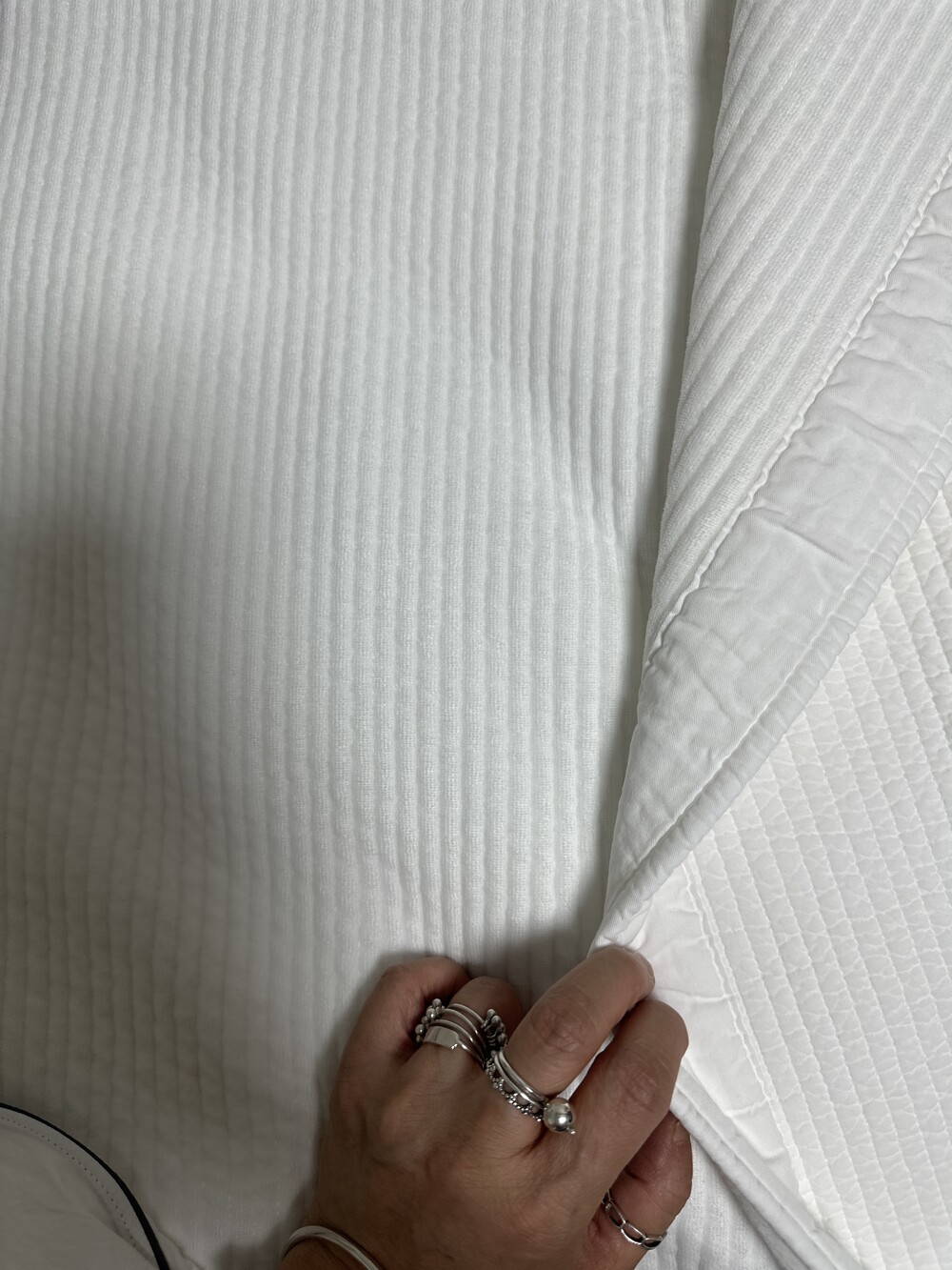 싱글과 퀸 두가지 사이즈이고 일주일정도 소요됩니다.목화솜이 얇게 들어간패드이며 한쪽면은 벨벳 다른 한쪽면은 아사면 겉 테두리는아사면으로 사계절 다 사용가능하세요.