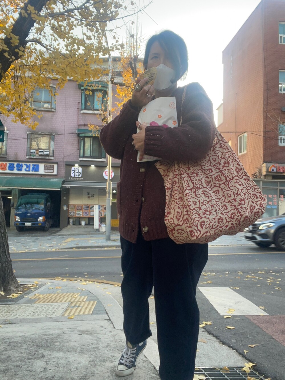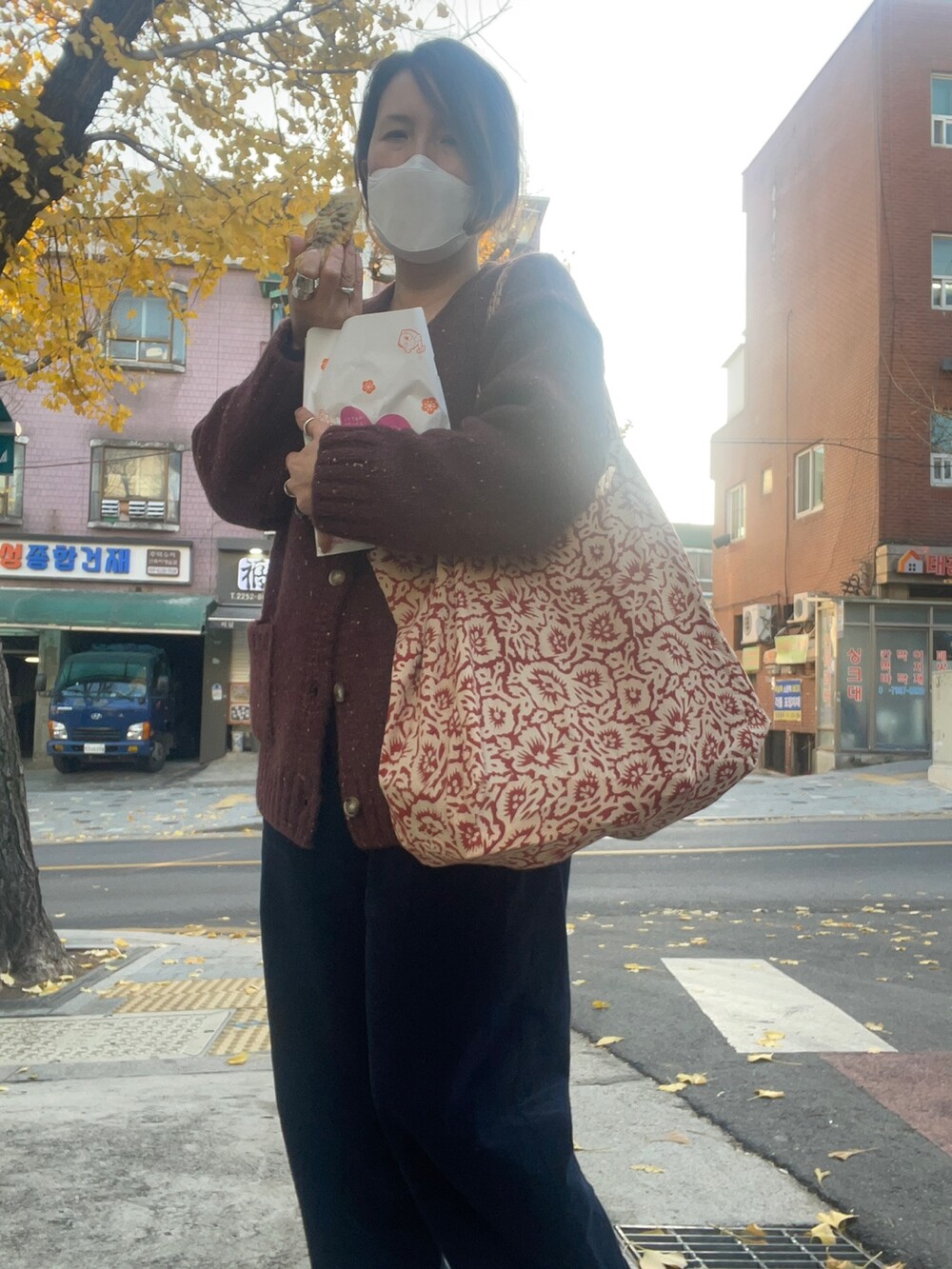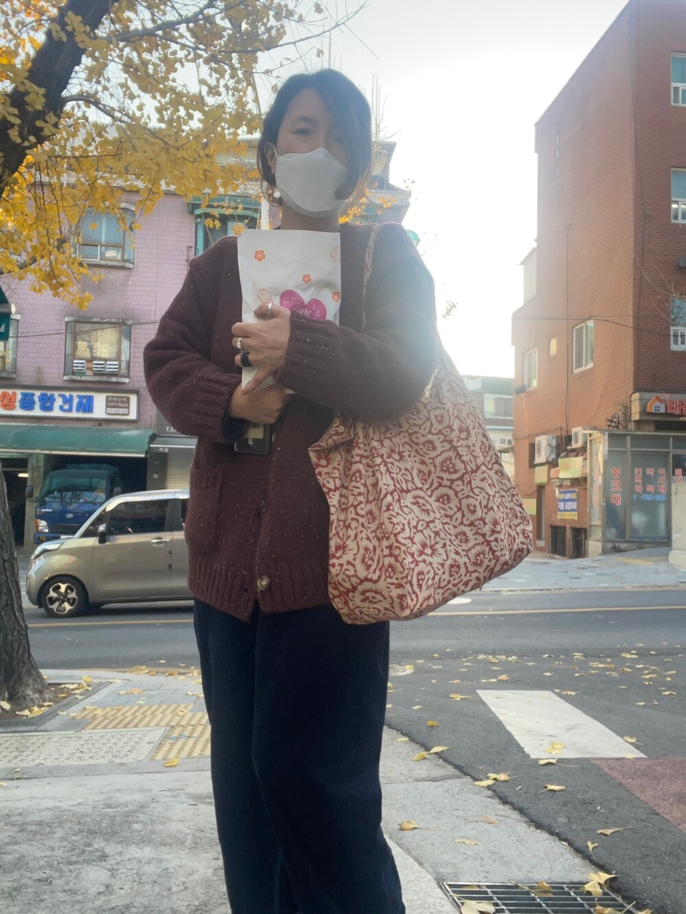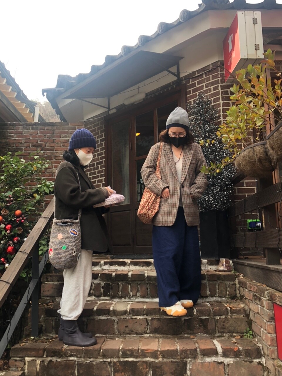 저는 겨울에 밝은색 가방을 드는걸 좋아해요