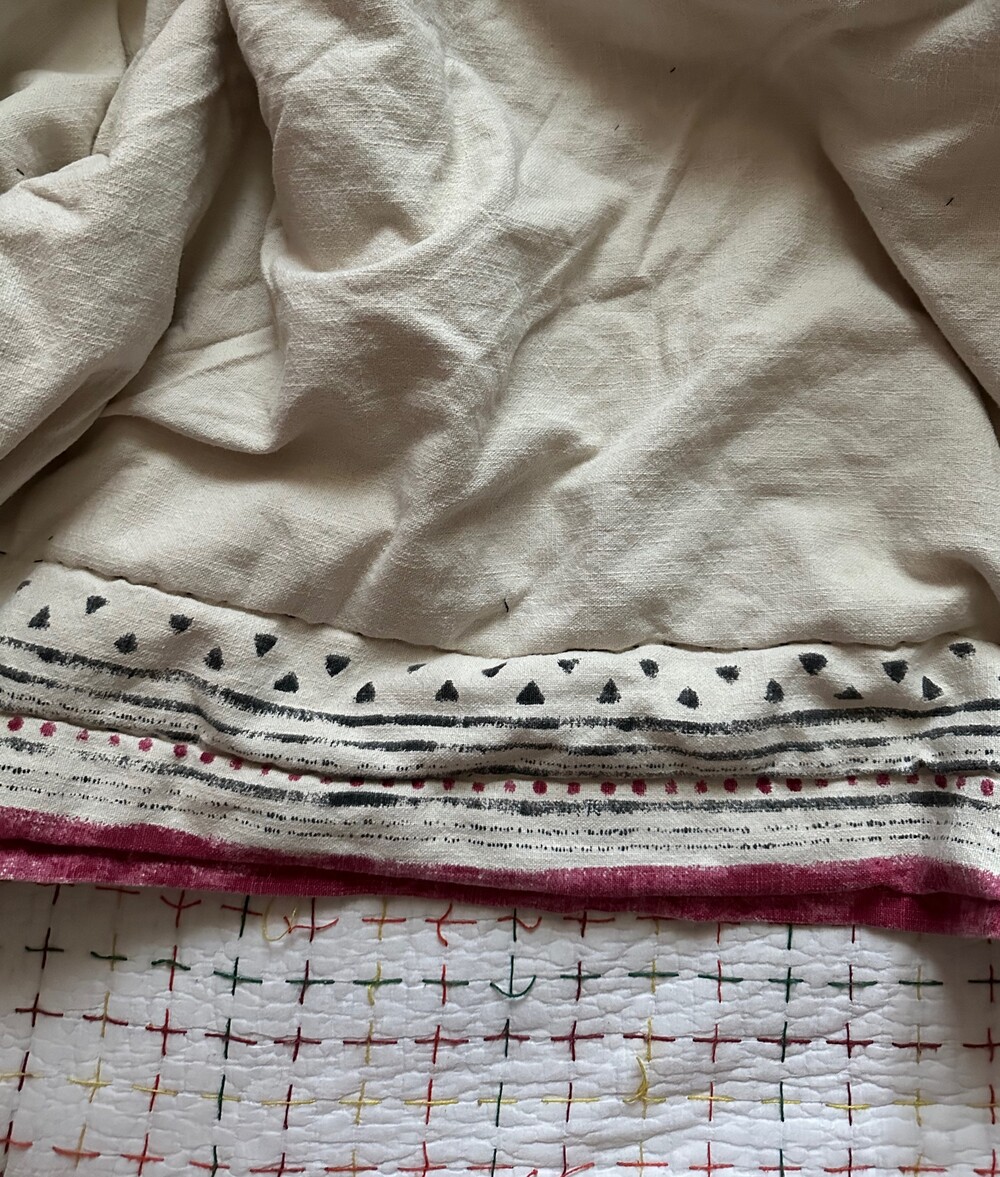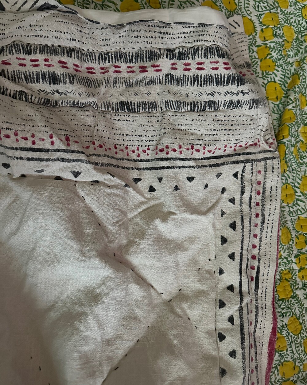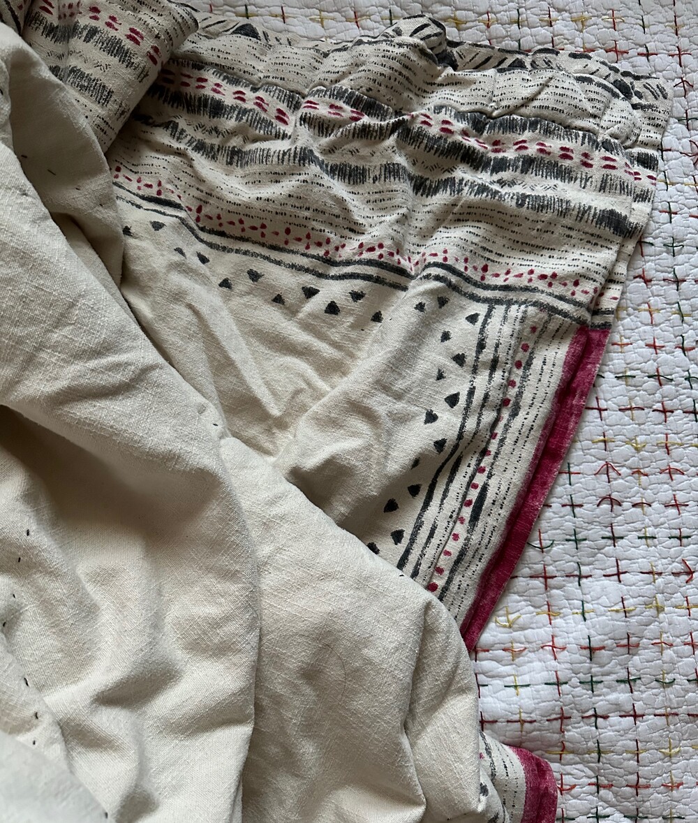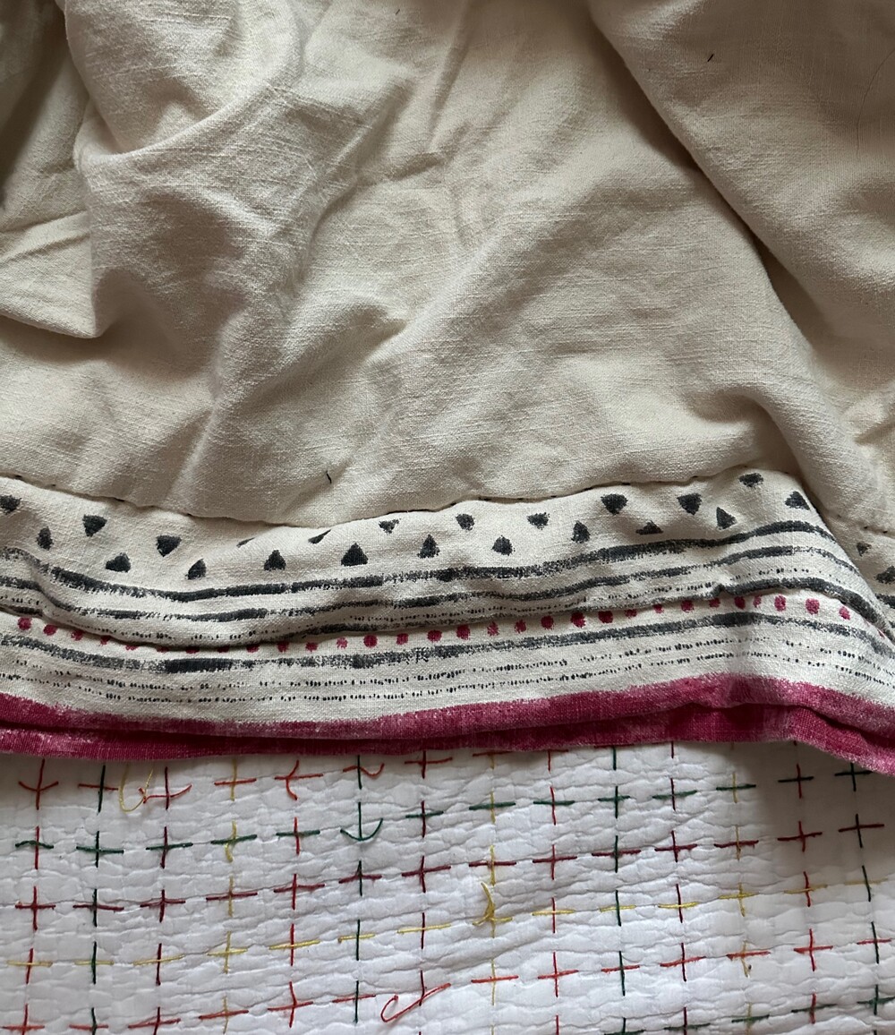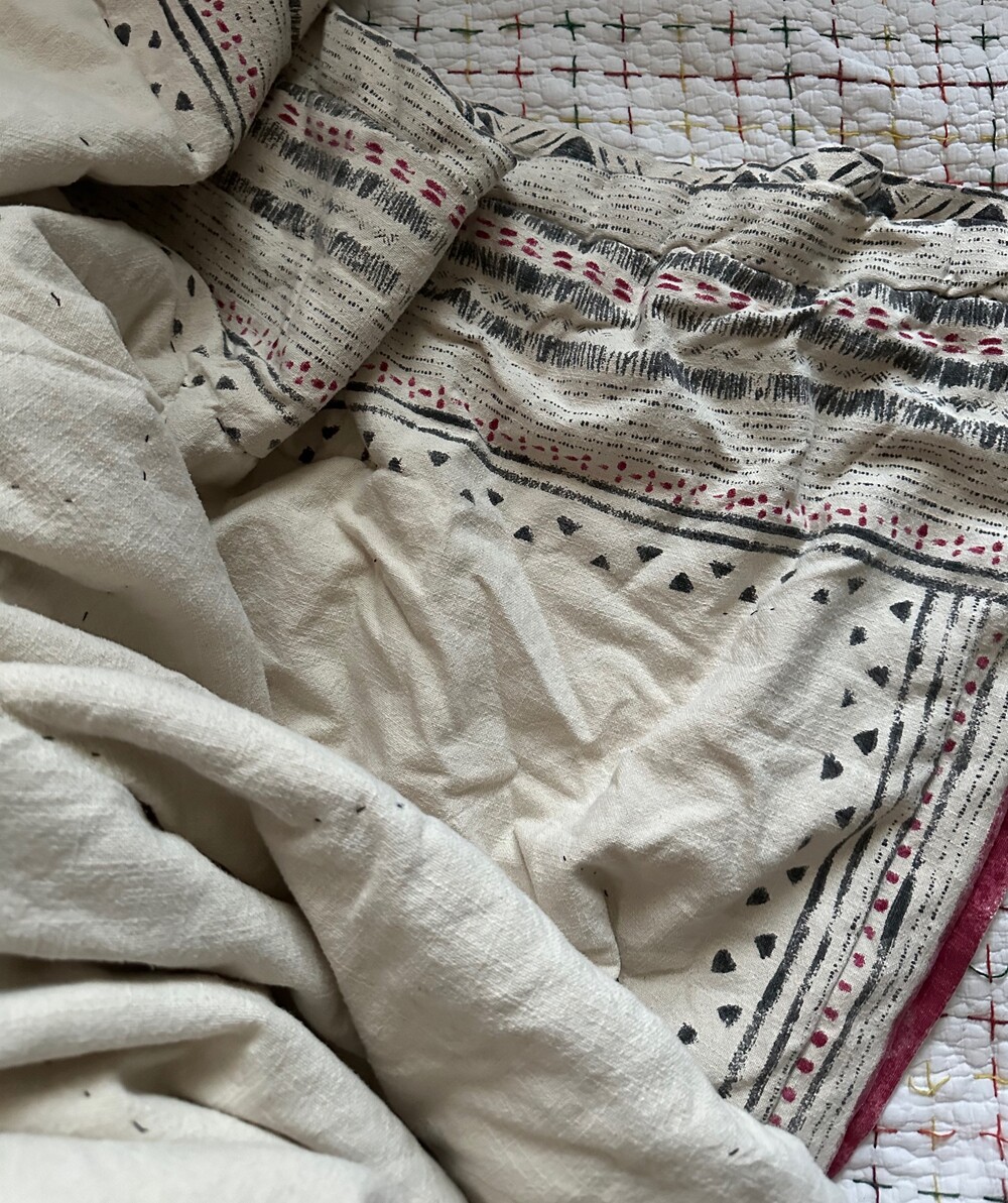 제가 붓터치느낌으로 그려서 만든 우드블럭프린팅의 이불이고