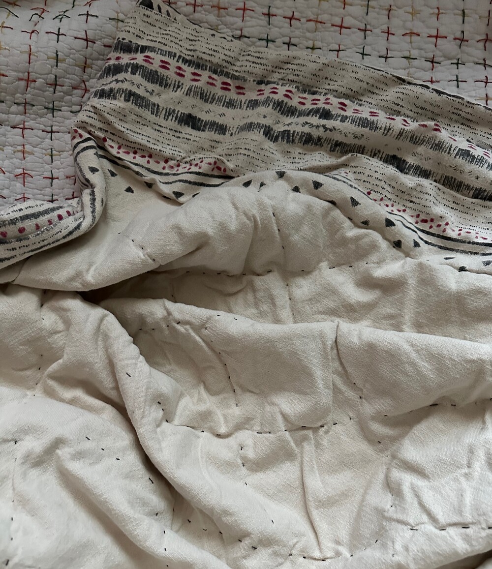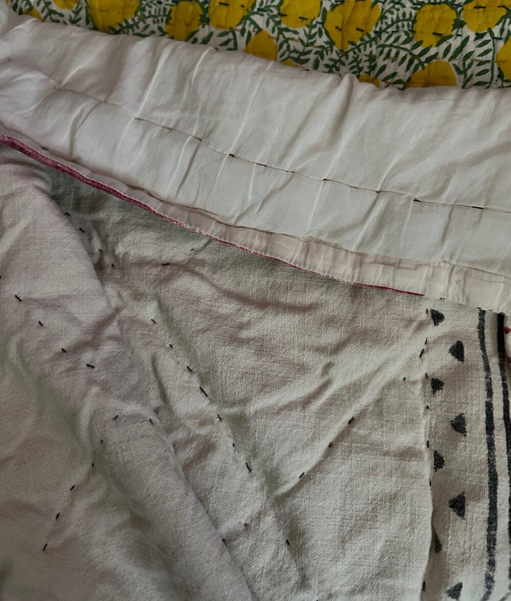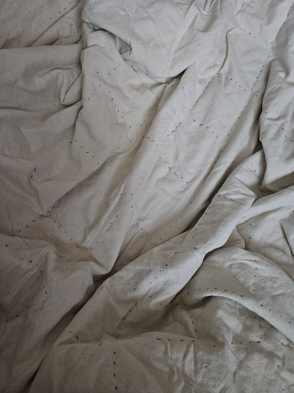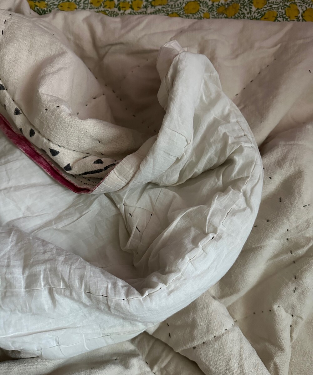 제가 붓터치느낌으로 그려서 만든 우드블럭프린팅의 이불이고