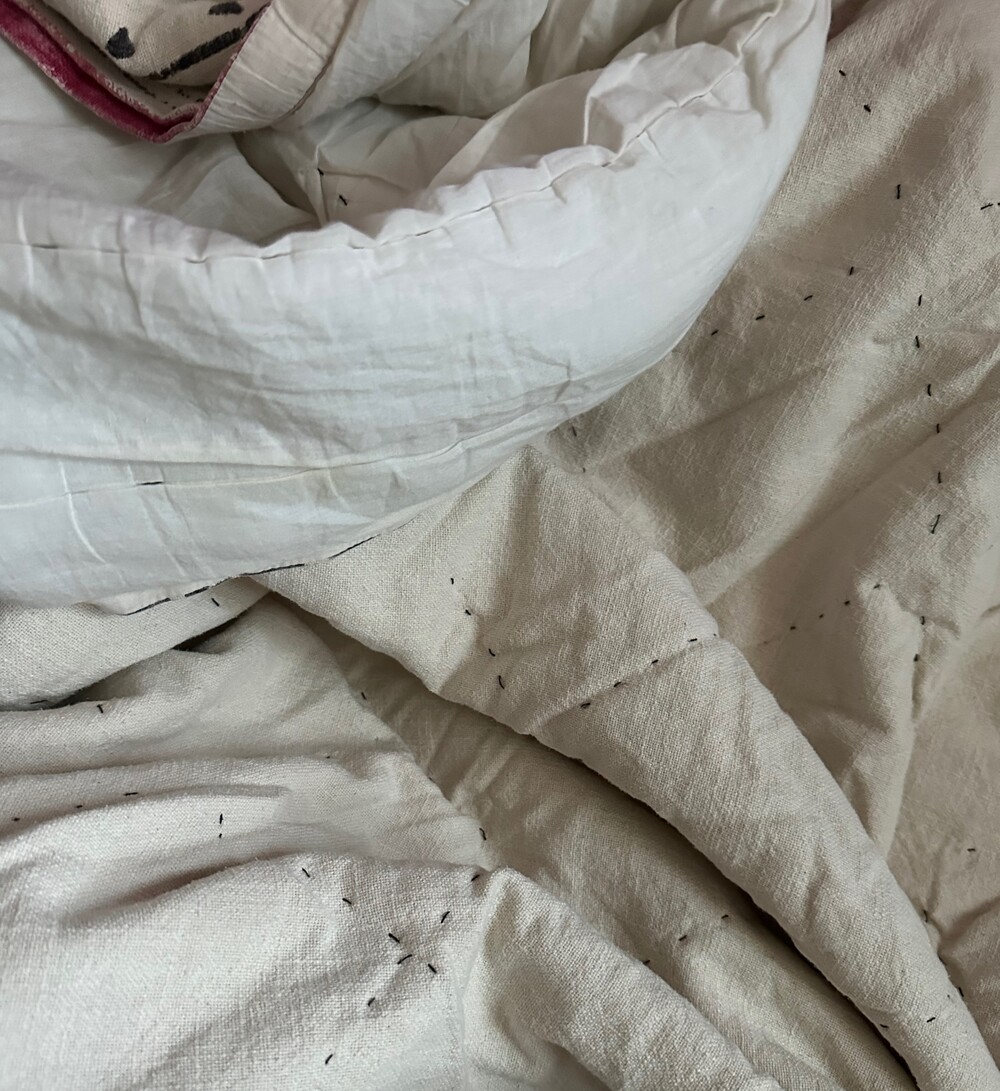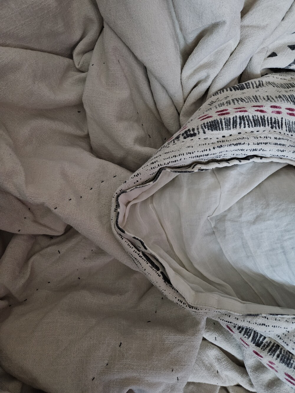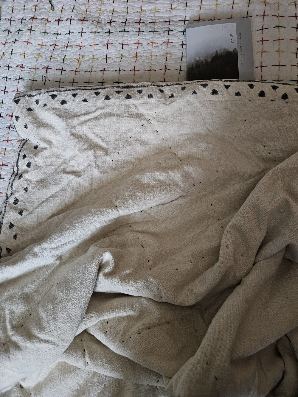아사면이 안에서 부드럽고 따뜻하게 린넨이 묵직한 보온효과를 줍니다.