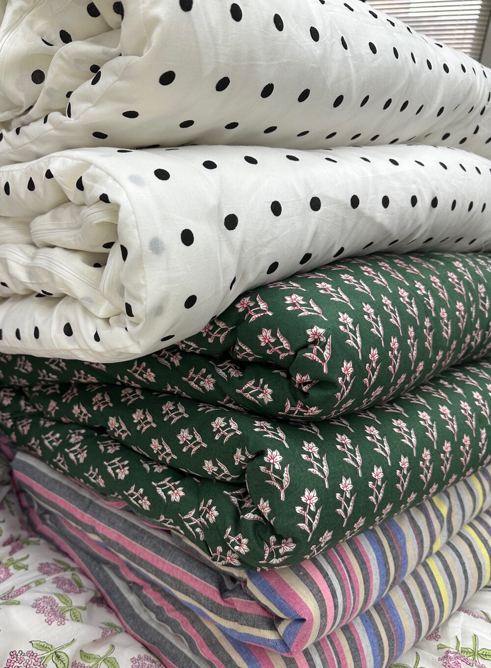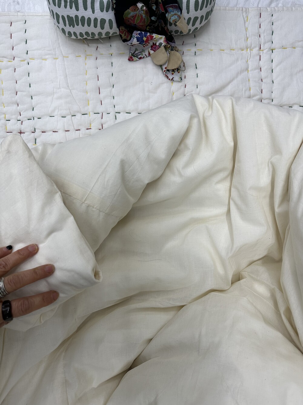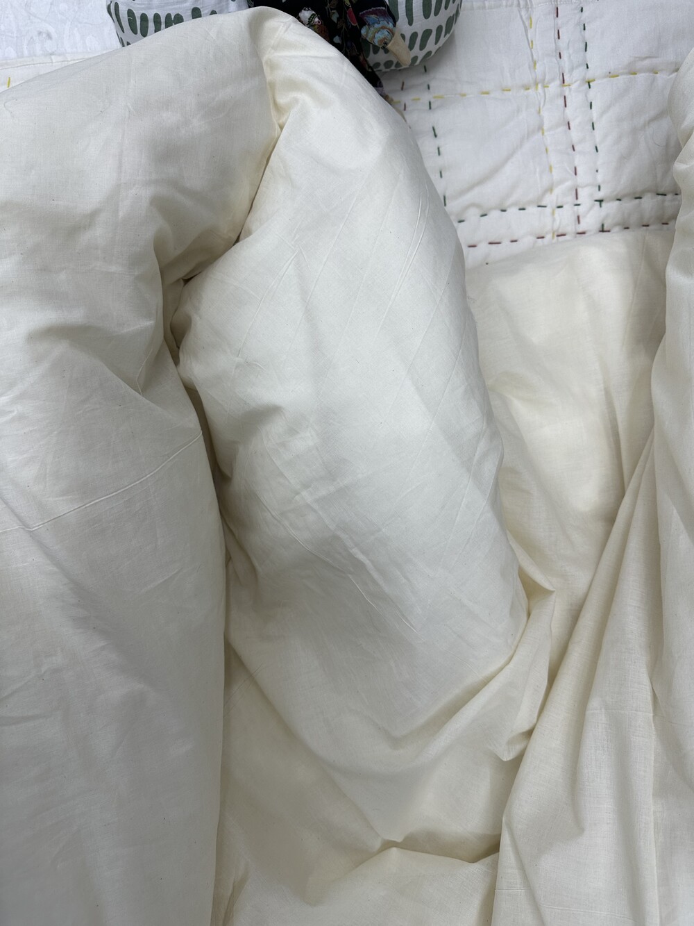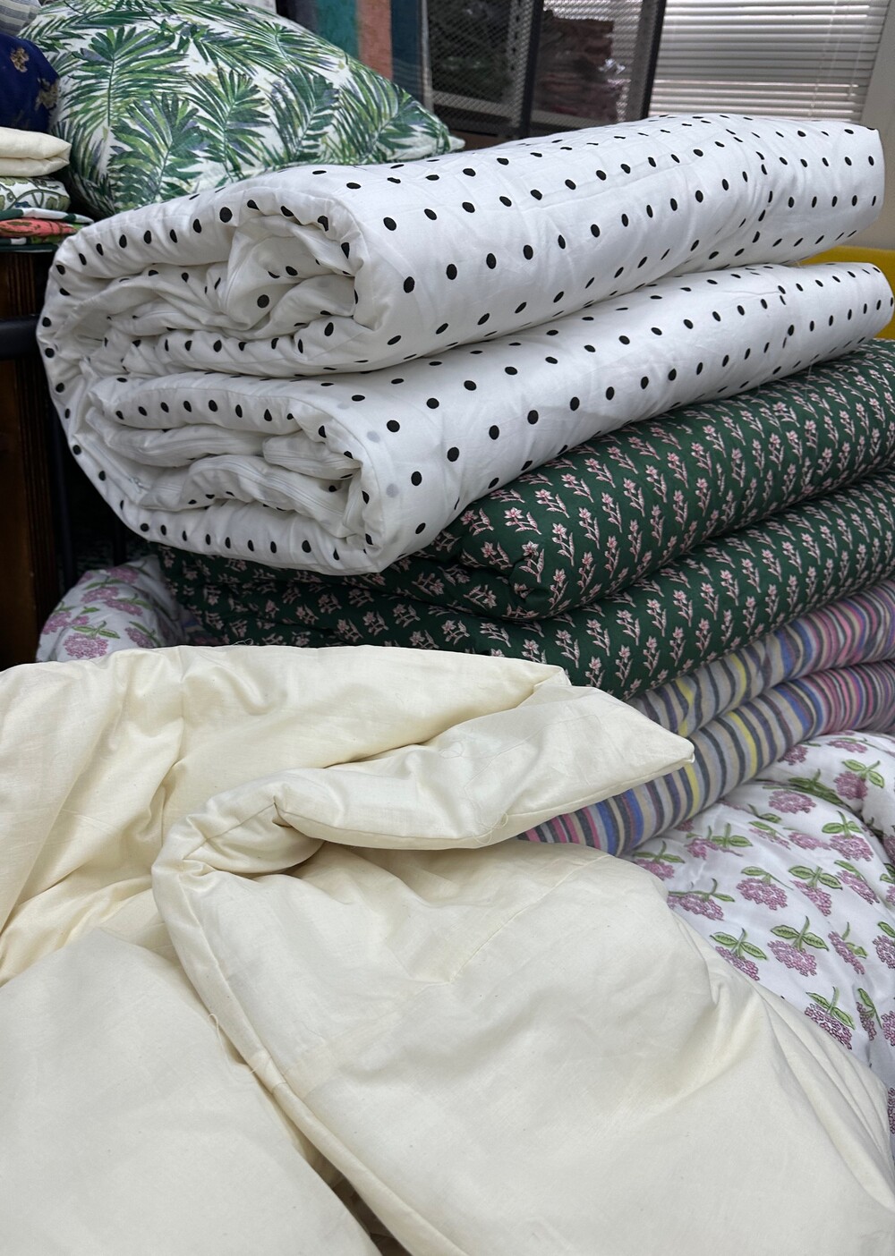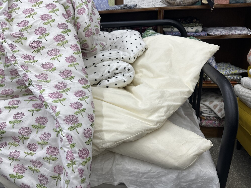 우리는 하루의 3분의 1을 이불속에서 살아요.전 유난히 이불과 속옷 잠옷의 촉감에 민감해요 .두께별로 이불이 다 필요하고요 ㅎㅎㅎ양옆을 리본으로 묶어 고정하는 형태이고 목화솜은 묵직하게 눌러줄만큼 아주 많이 들어가는 목화솜통 분리 이불이에요.