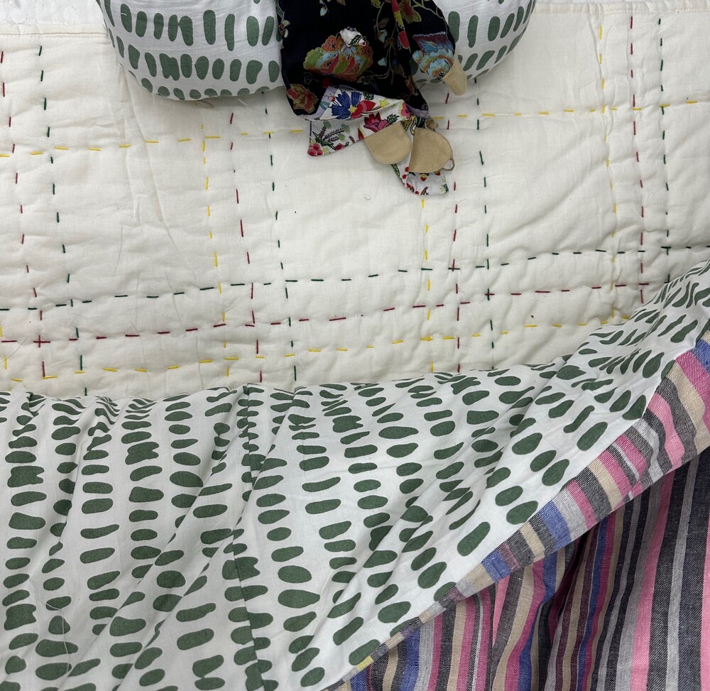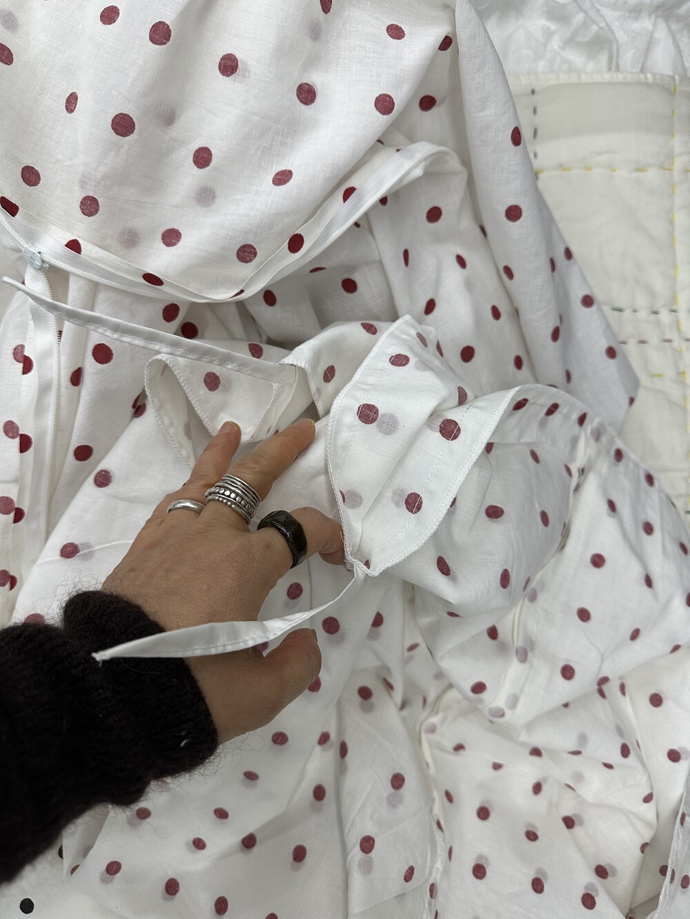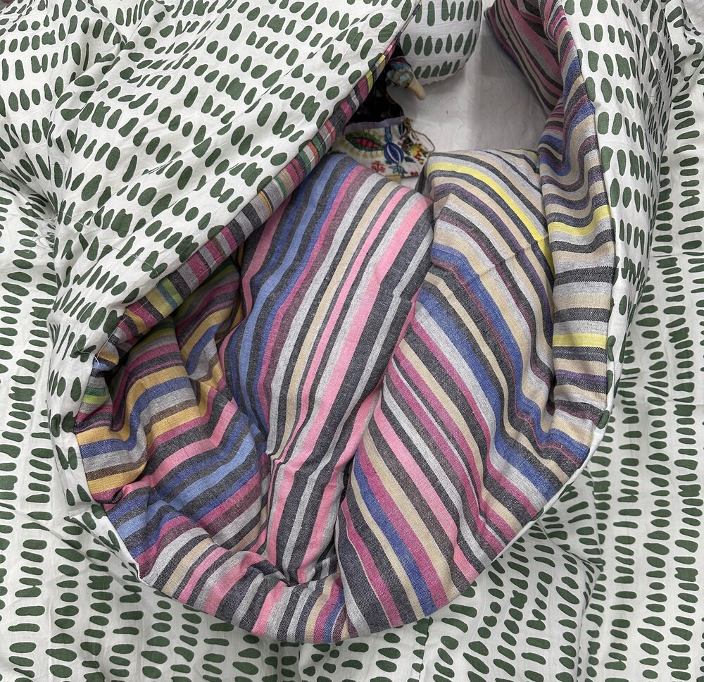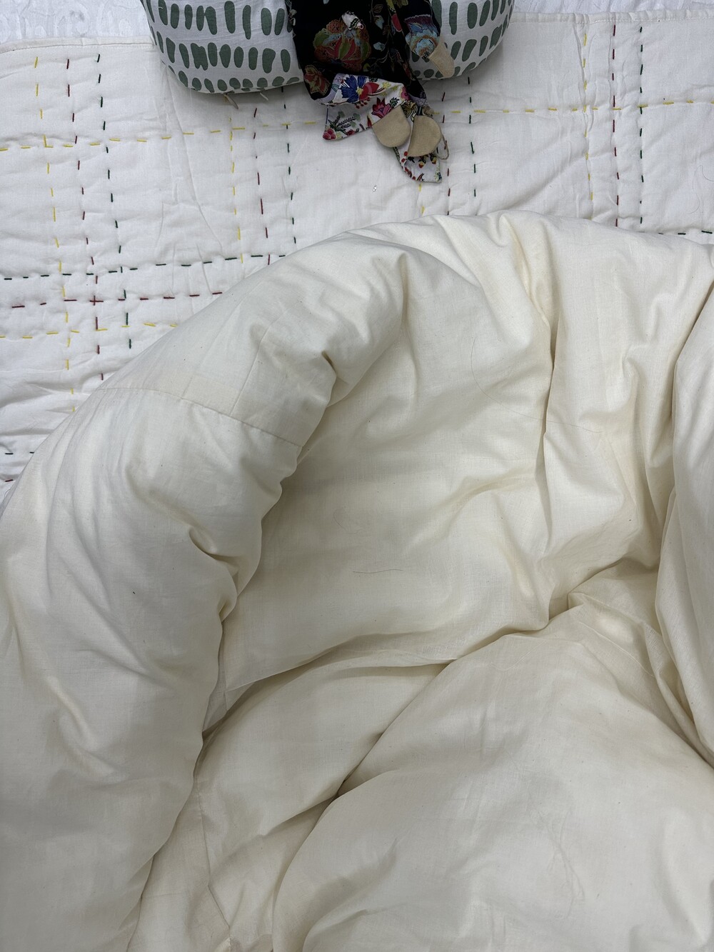 우리는 하루의 3분의 1을 이불속에서 살아요.전 유난히 이불과 속옷 잠옷의 촉감에 민감해요 .두께별로 이불이 다 필요하고요 ㅎㅎㅎ양옆을 리본으로 묶어 고정하는 형태이고 목화솜은 묵직하게 눌러줄만큼 아주 많이 들어가는 목화솜통 분리 이불이에요.