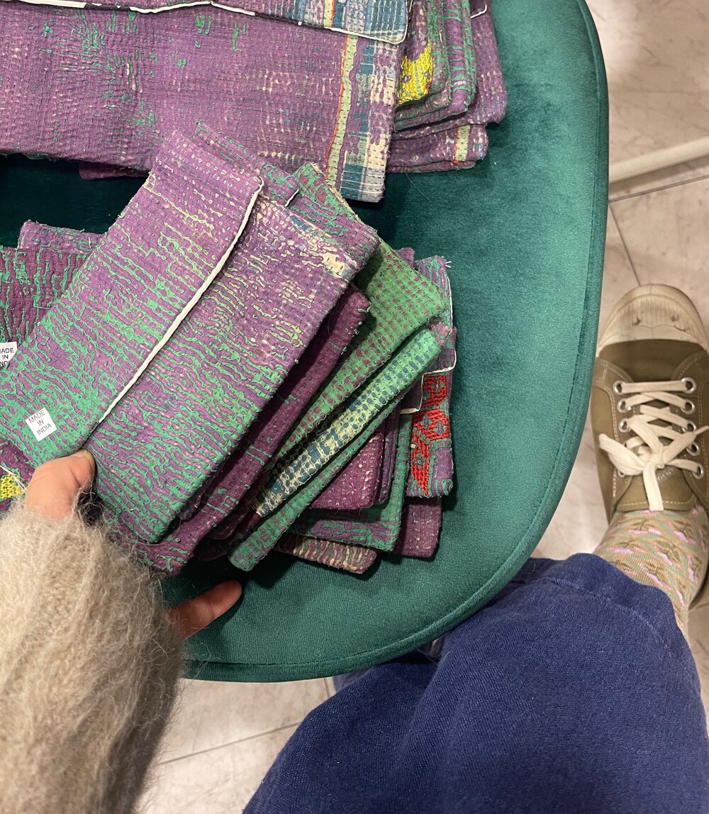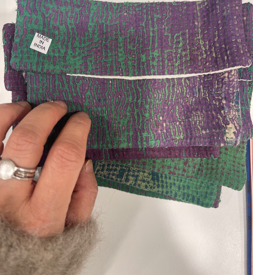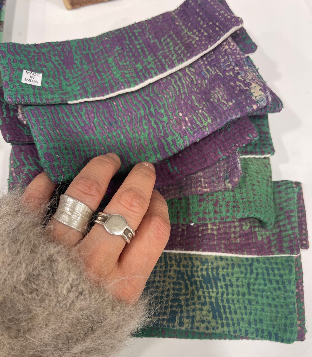 안감에 면으로 덧대어있고 똑딱단추로 마감되어 손느낌이 강한 정겨운 아이템이에요.