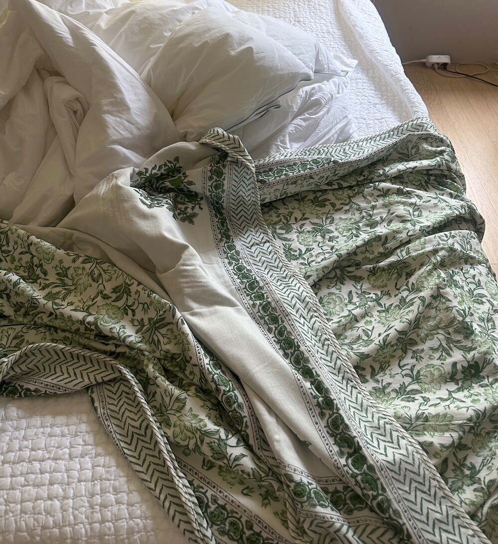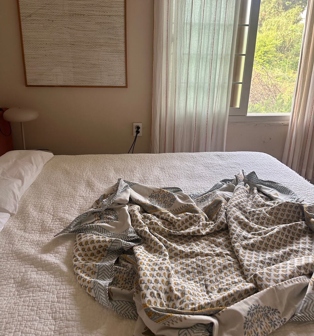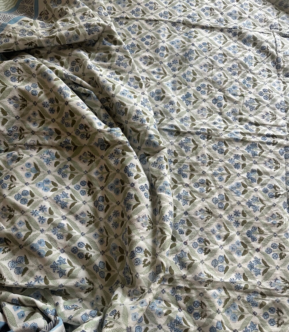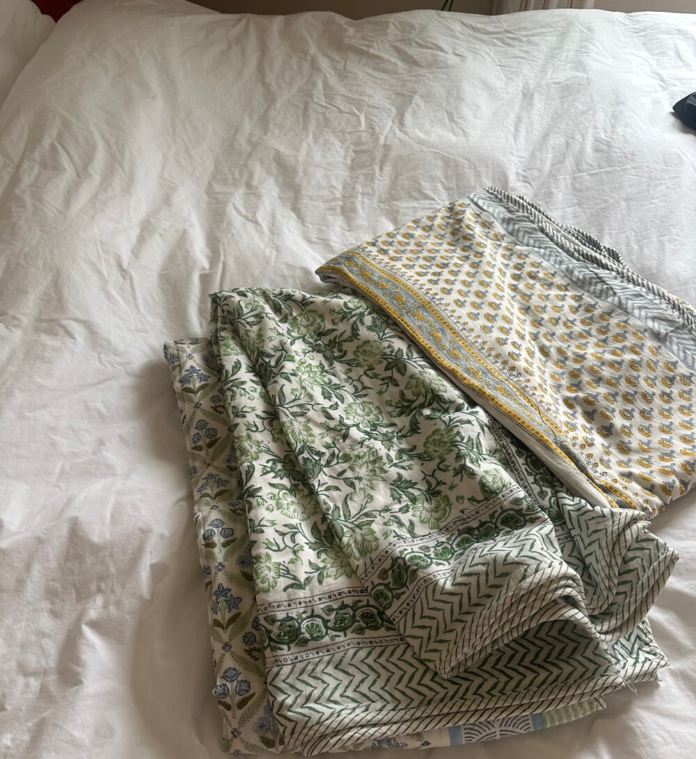 140*228 사이즈의 여름 이불이에요 인도에서는 에어컨이불이라고해요,습한여름의 청량감을 책임져줄 이불이에요 목화섬을 패드로 얇게 만들어 제작됩니다.초경량 이불이라고 생각하심되요 양면 사이에 아주 얇은 목화솜 시트가 들어가있어서 무게감이 일만큼 생기는 이불이에요, 오주뒤에 인도에서 발송됩니다,