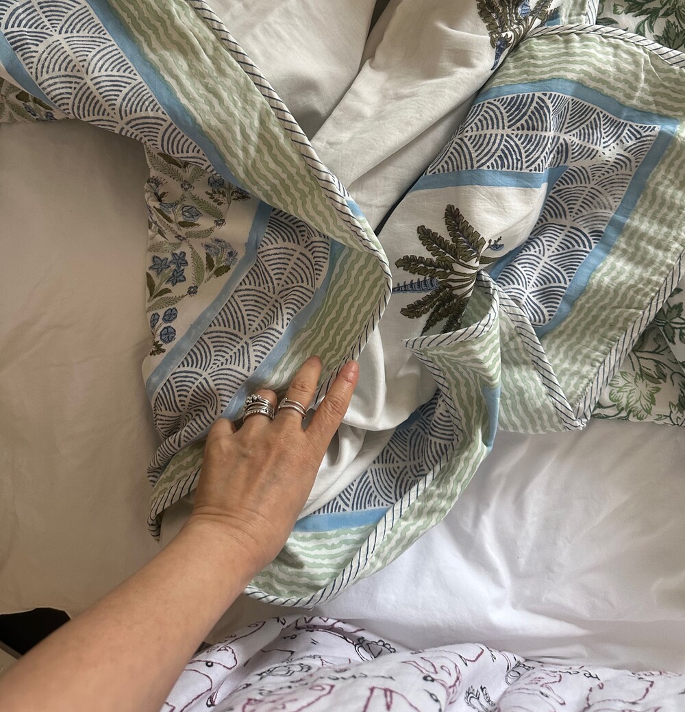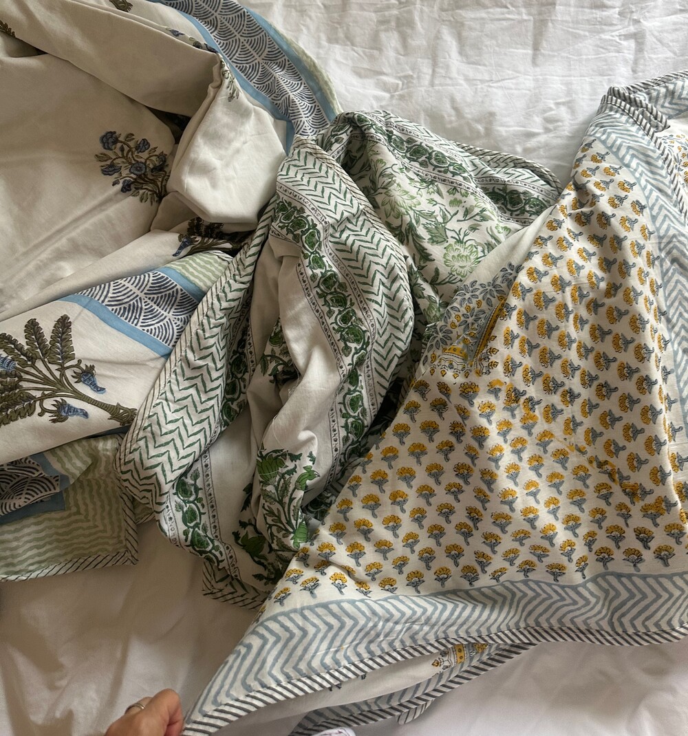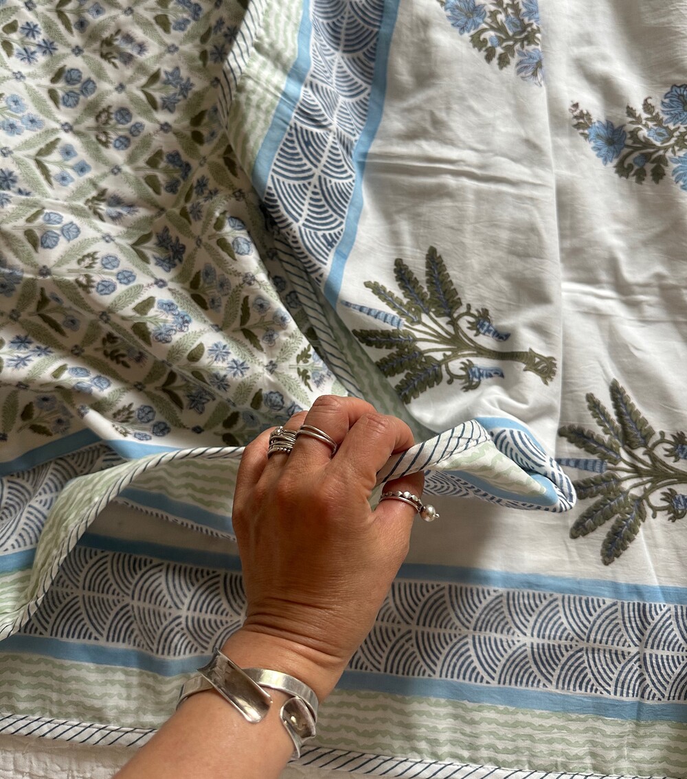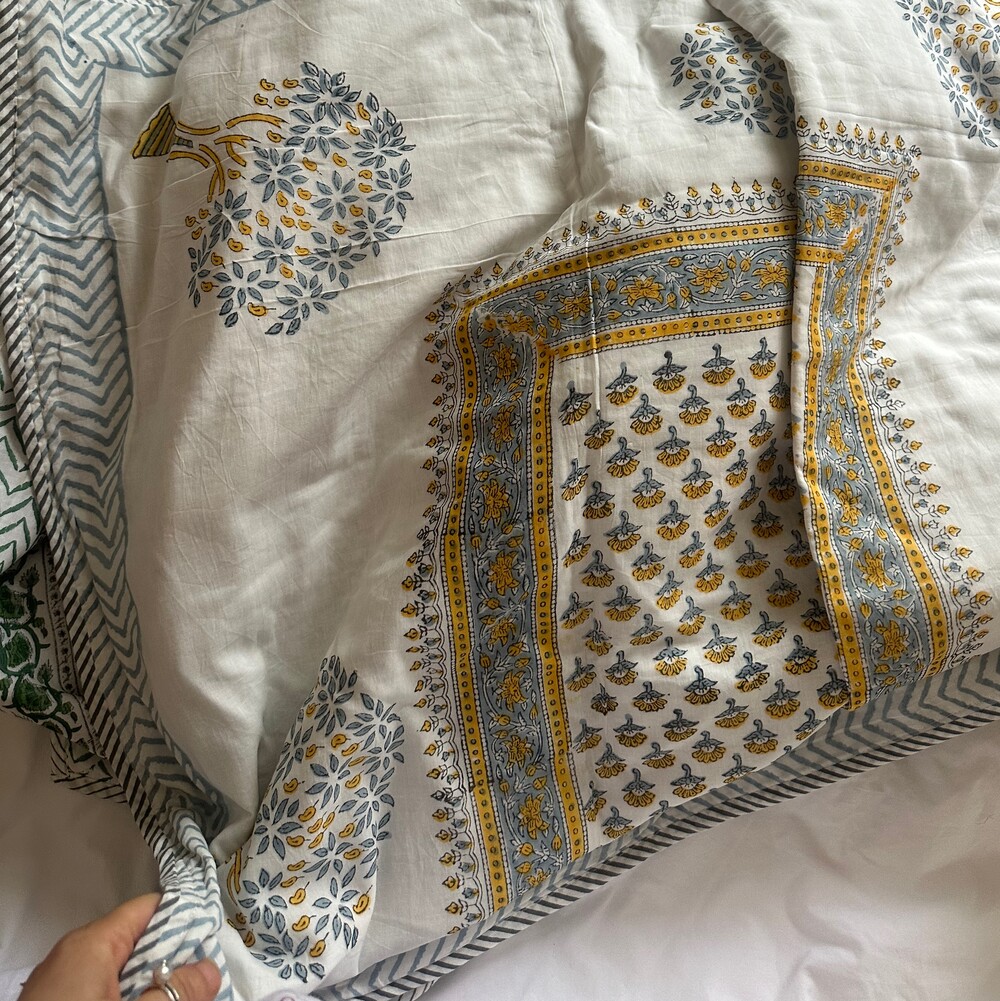 140*228 사이즈의 여름 이불이에요 인도에서는 에어컨이불이라고해요,습한여름의 청량감을 책임져줄 이불이에요 목화섬을 패드로 얇게 만들어 제작됩니다.초경량 이불이라고 생각하심되요 양면 사이에 아주 얇은 목화솜 시트가 들어가있어서 무게감이 일만큼 생기는 이불이에요, 오주뒤에 인도에서 발송됩니다,