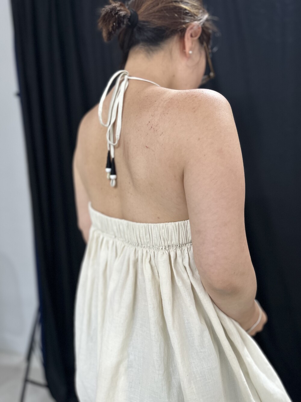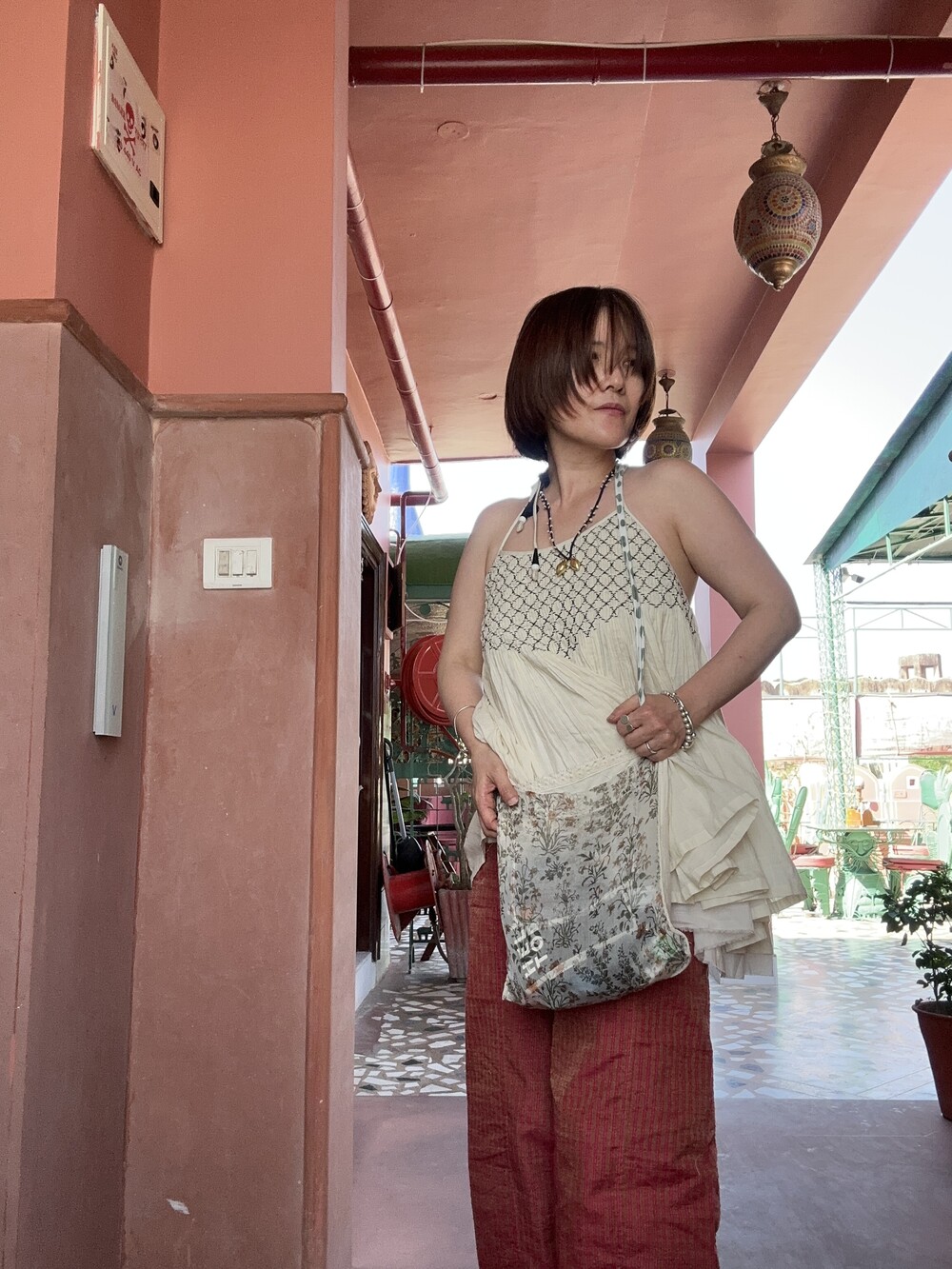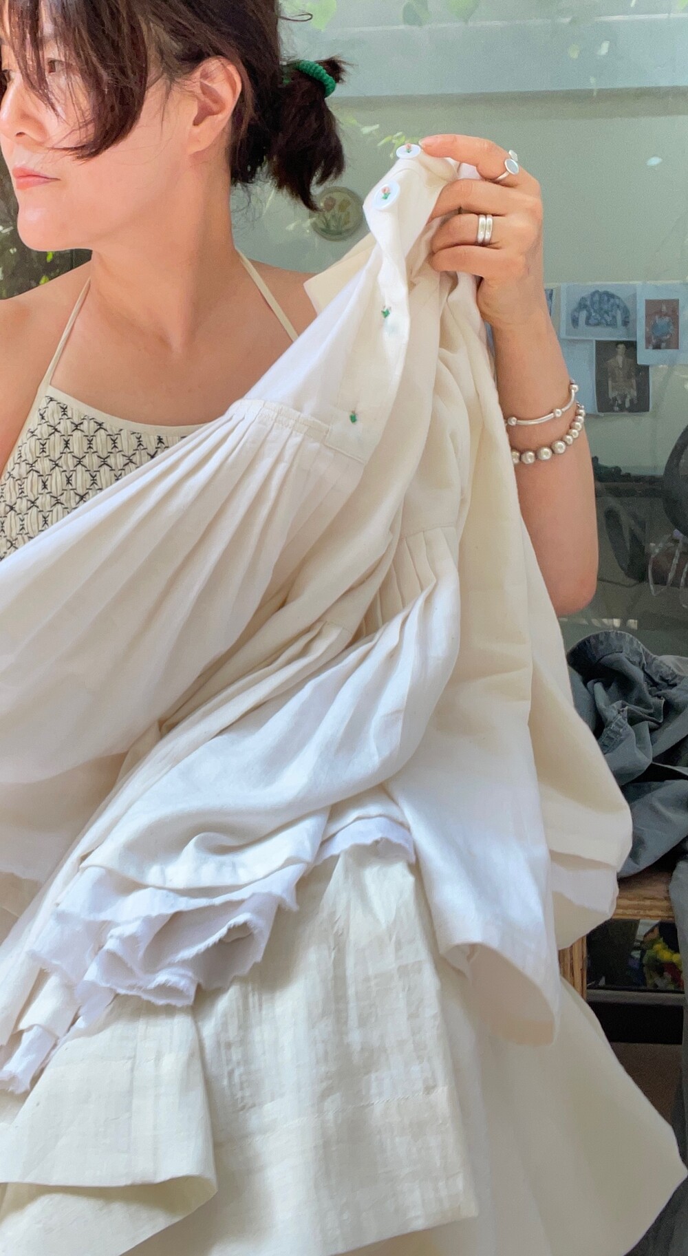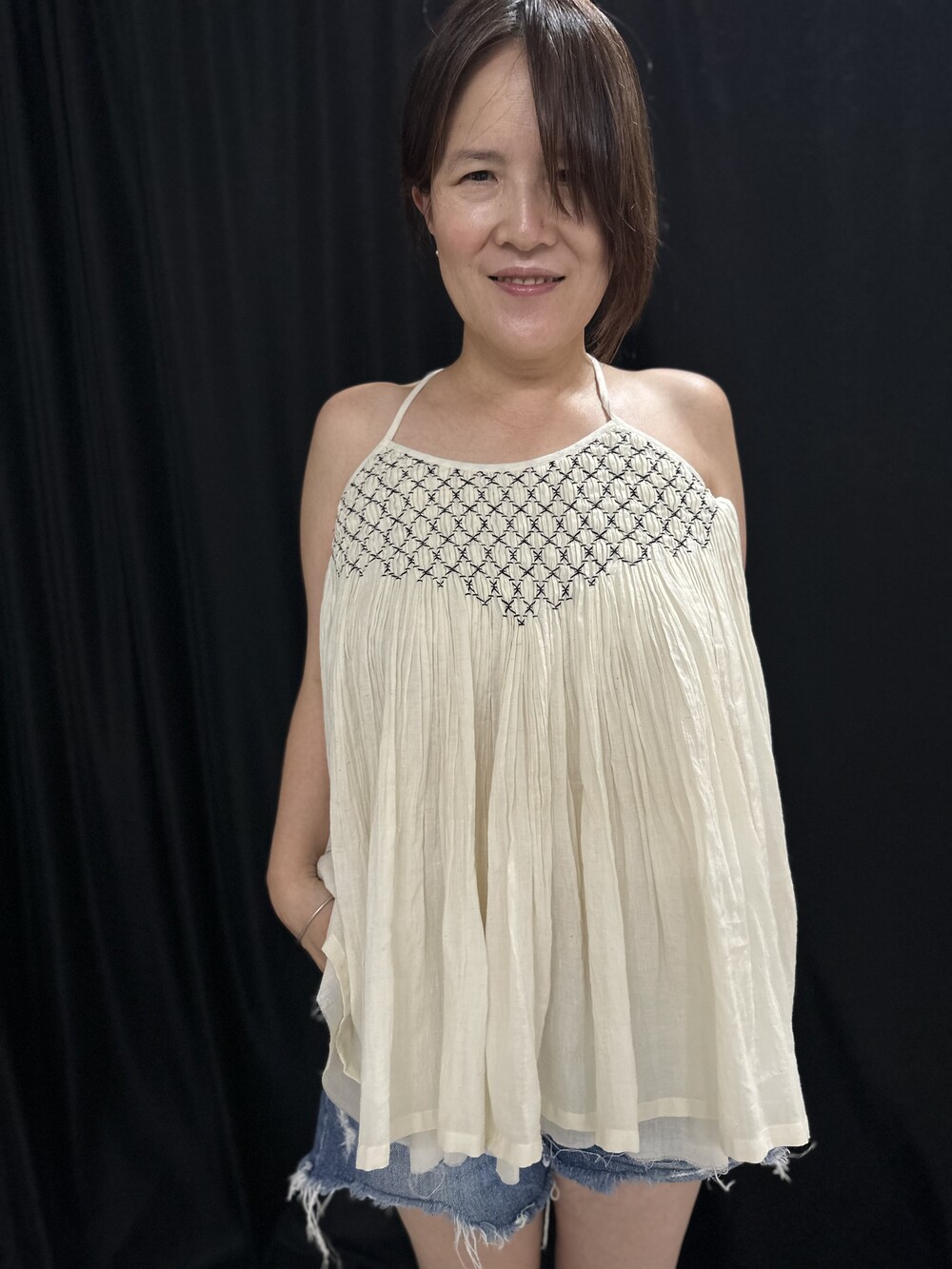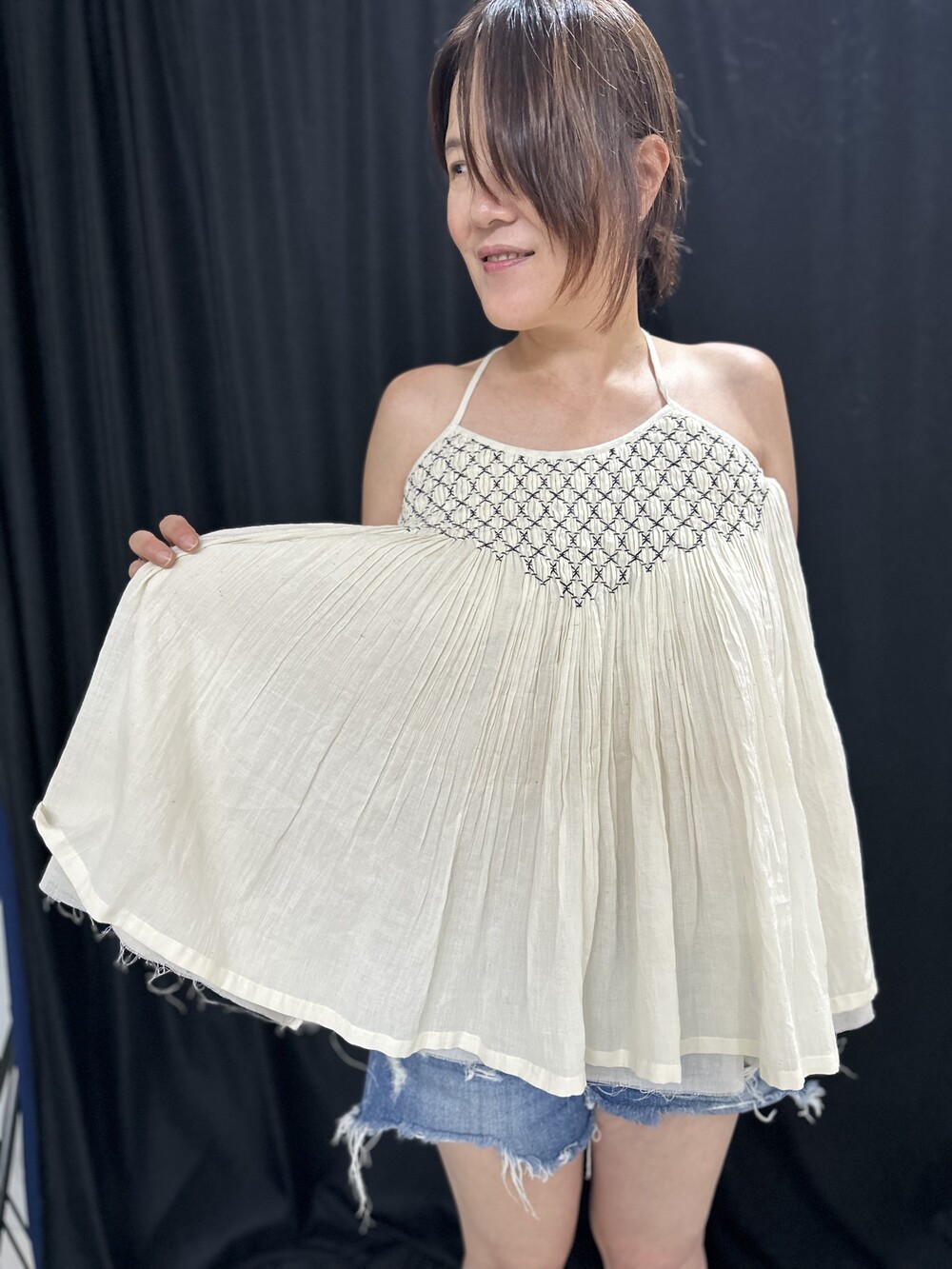 라바리 자켓안의 이너 스모킹 홀터넥이에요 기장은 자켓에서 조금 내려올정도로 57-58(속지포함)정도로 제작되고 가슴둘레는 66반 사이즈까지 입게 만듭니다.겨울에도 터틀넥과 입으실수있고 여러겹으로 겹쳐진 원단이고 찻물로 빈티지 느낌으로 염색했어요.카디원단으로 제작되었어요❤️주문제작이고 단순변심 교환 힘들어요!!바로 발송해요