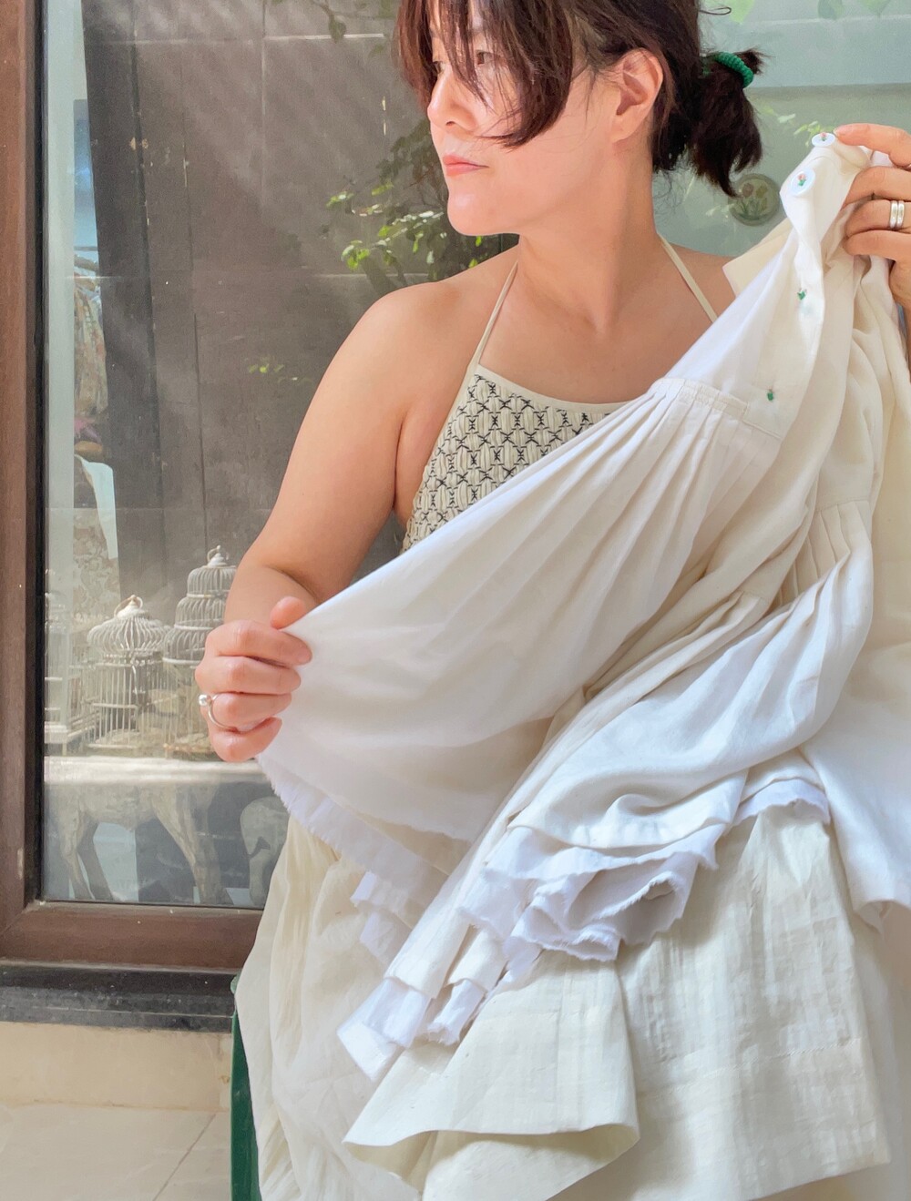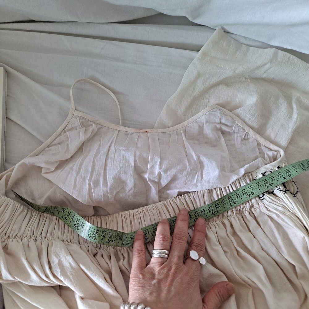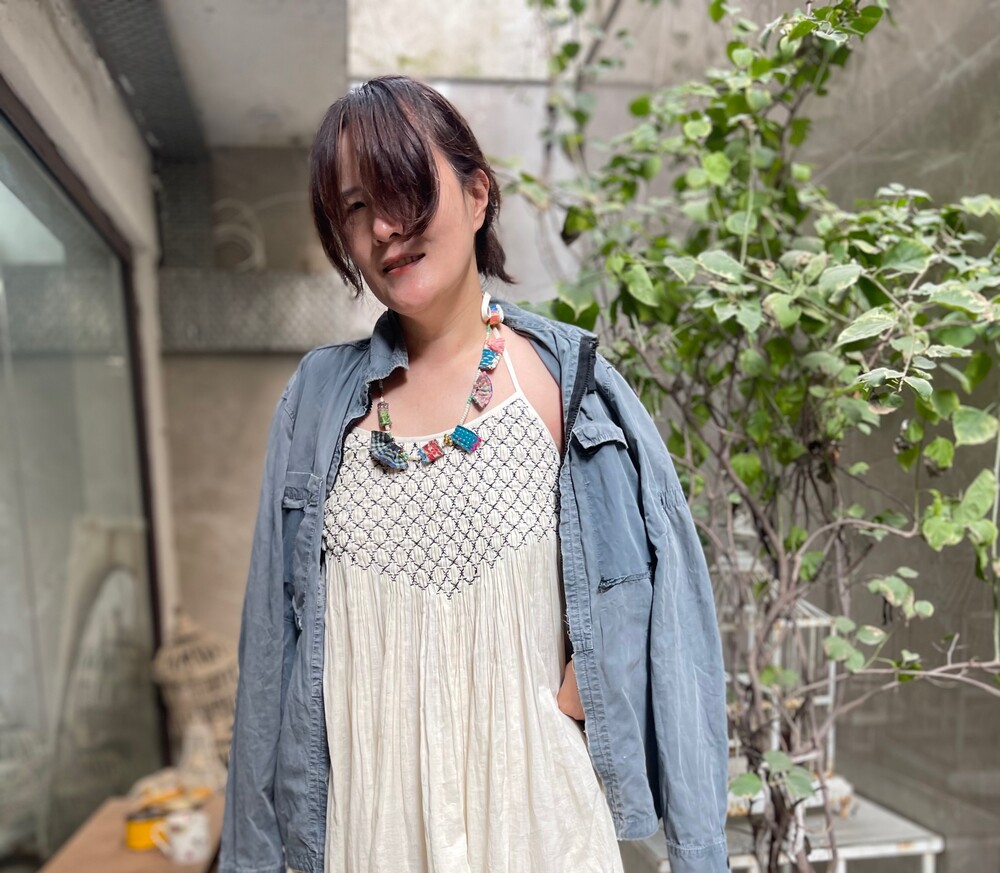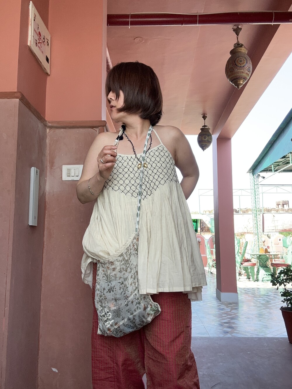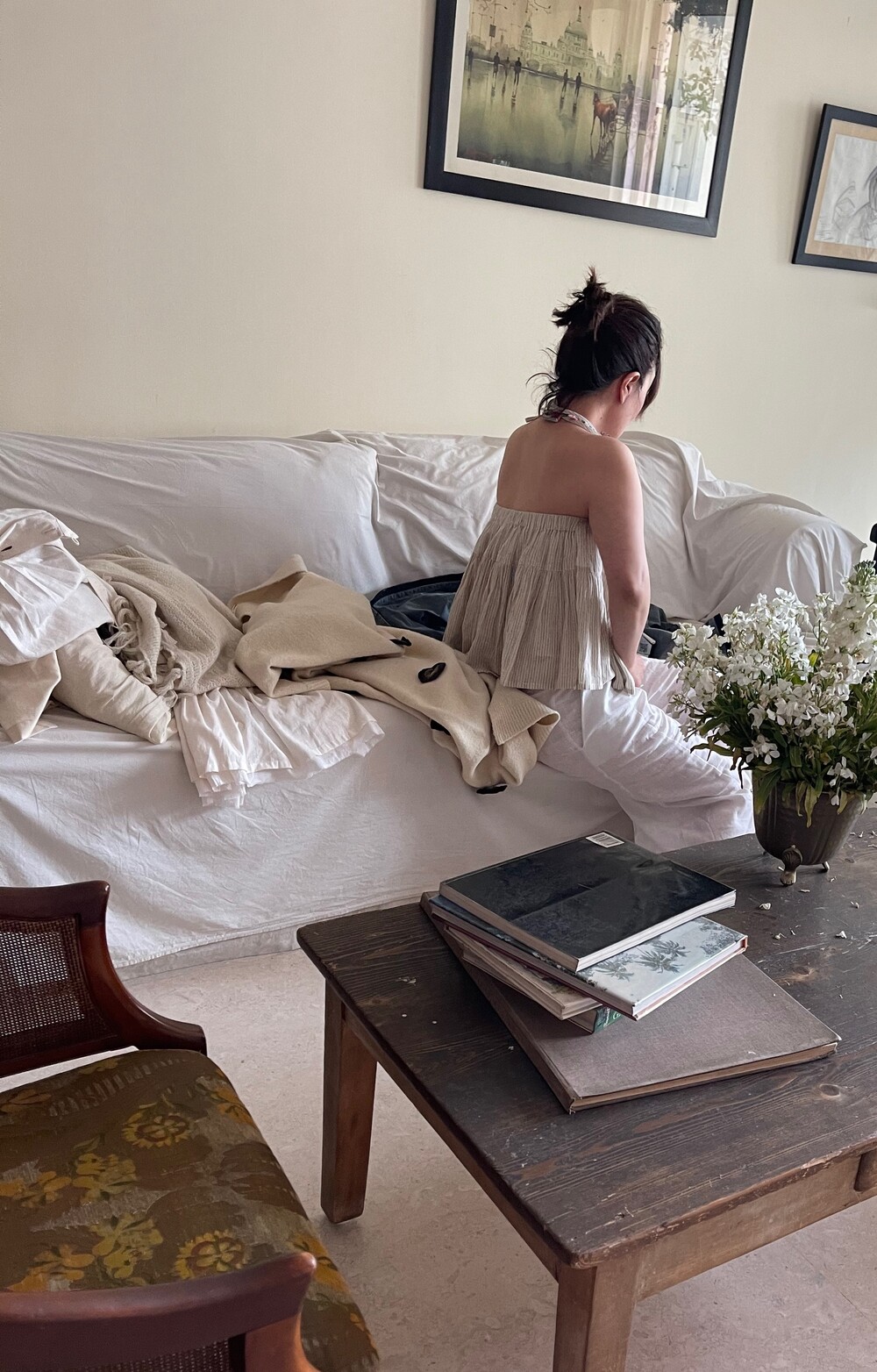 라바리 자켓안의 이너 스모킹 홀터넥이에요 기장은 자켓에서 조금 내려올정도로 57-58(속지포함)정도로 제작되고 가슴둘레는 66반 사이즈까지 입게 만듭니다.겨울에도 터틀넥과 입으실수있고 여러겹으로 겹쳐진 원단이고 찻물로 빈티지 느낌으로 염색했어요.카디원단으로 제작되었어요❤️주문제작이고 단순변심 교환 힘들어요!!바로 발송해요