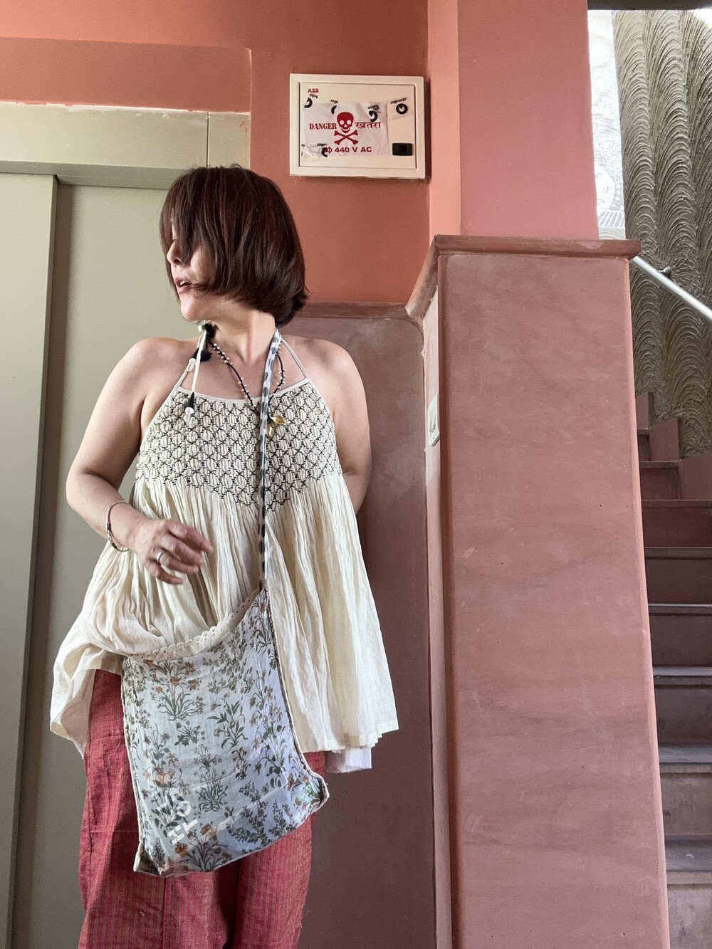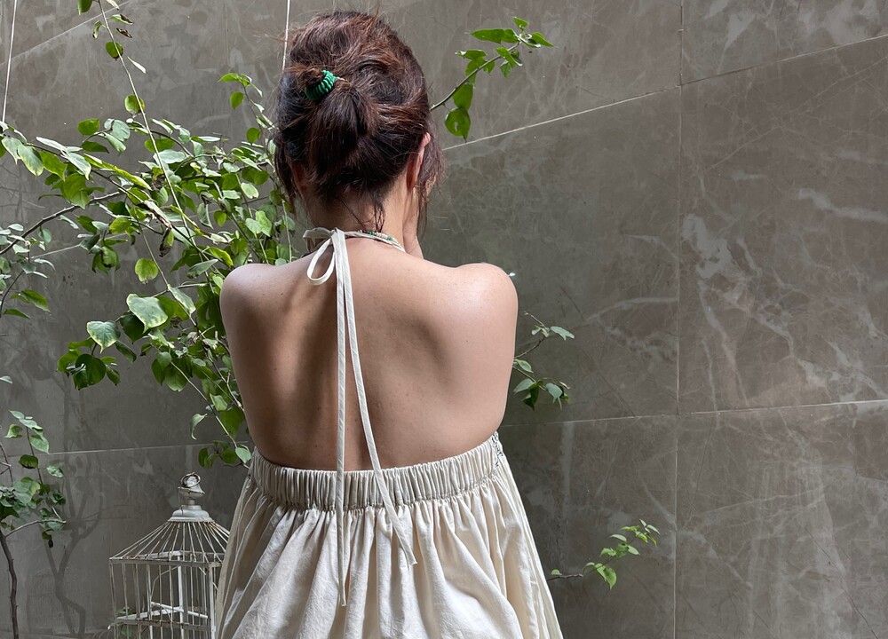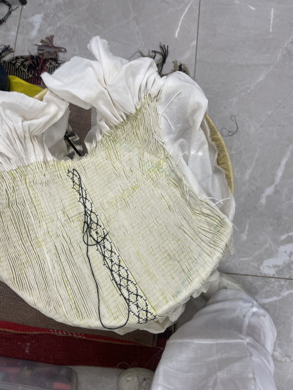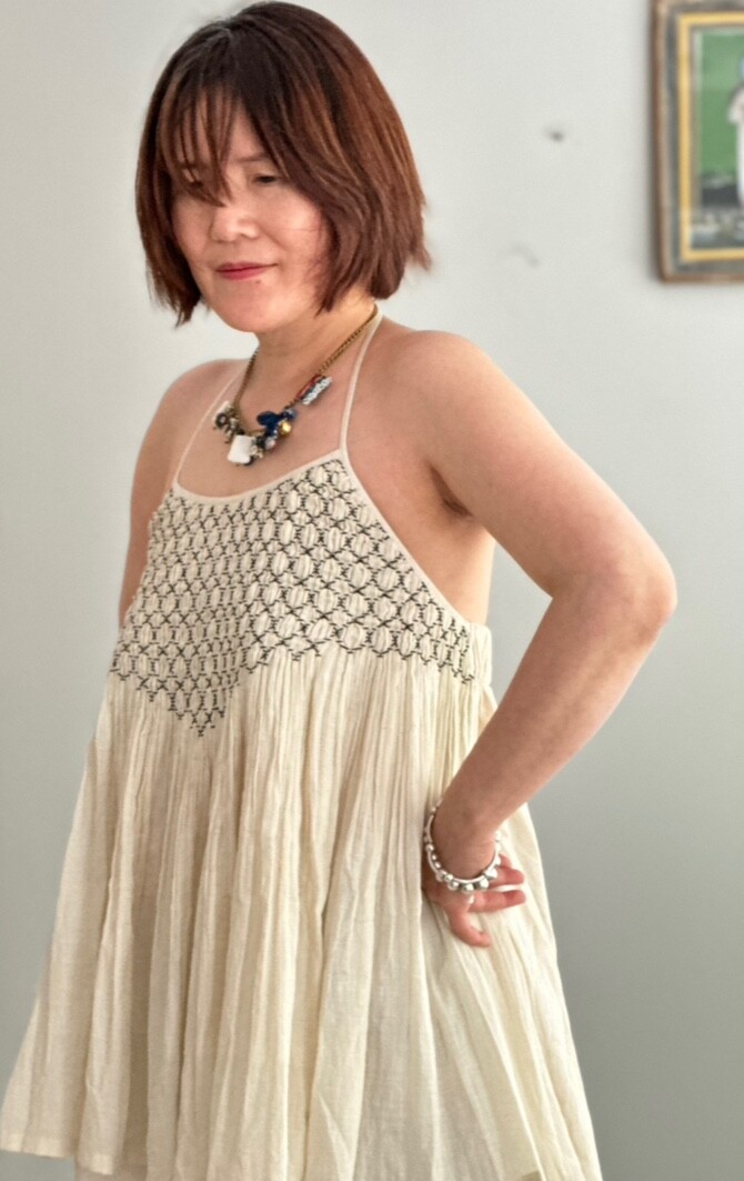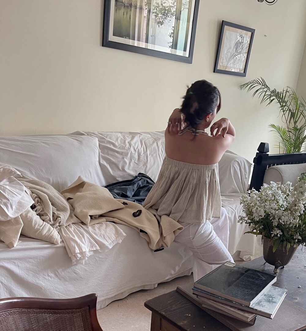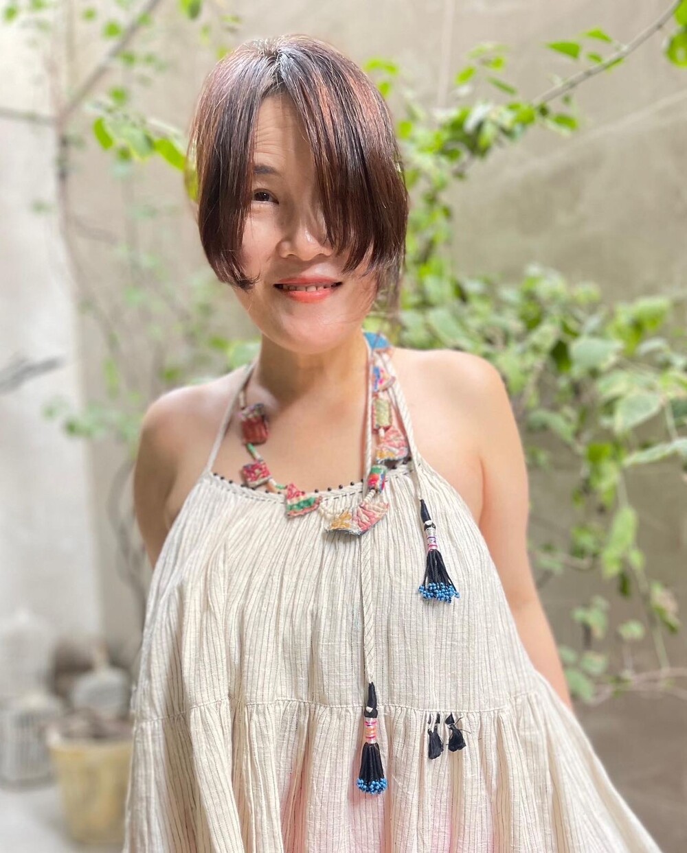 라바리 자켓안의 이너 스모킹 홀터넥이에요 기장은 자켓에서 조금 내려올정도로 57-58(속지포함)정도로 제작되고 가슴둘레는 66반 사이즈까지 입게 만듭니다.겨울에도 터틀넥과 입으실수있고 여러겹으로 겹쳐진 원단이고 찻물로 빈티지 느낌으로 염색했어요.카디원단으로 제작되었어요❤️주문제작이고 단순변심 교환 힘들어요!!바로 발송해요