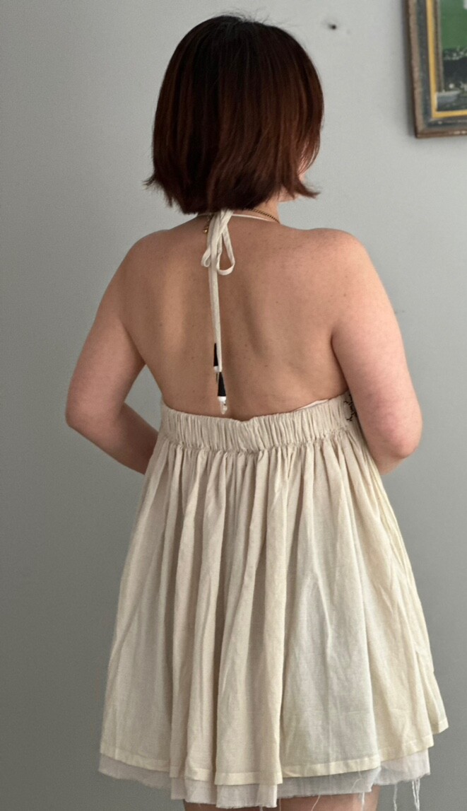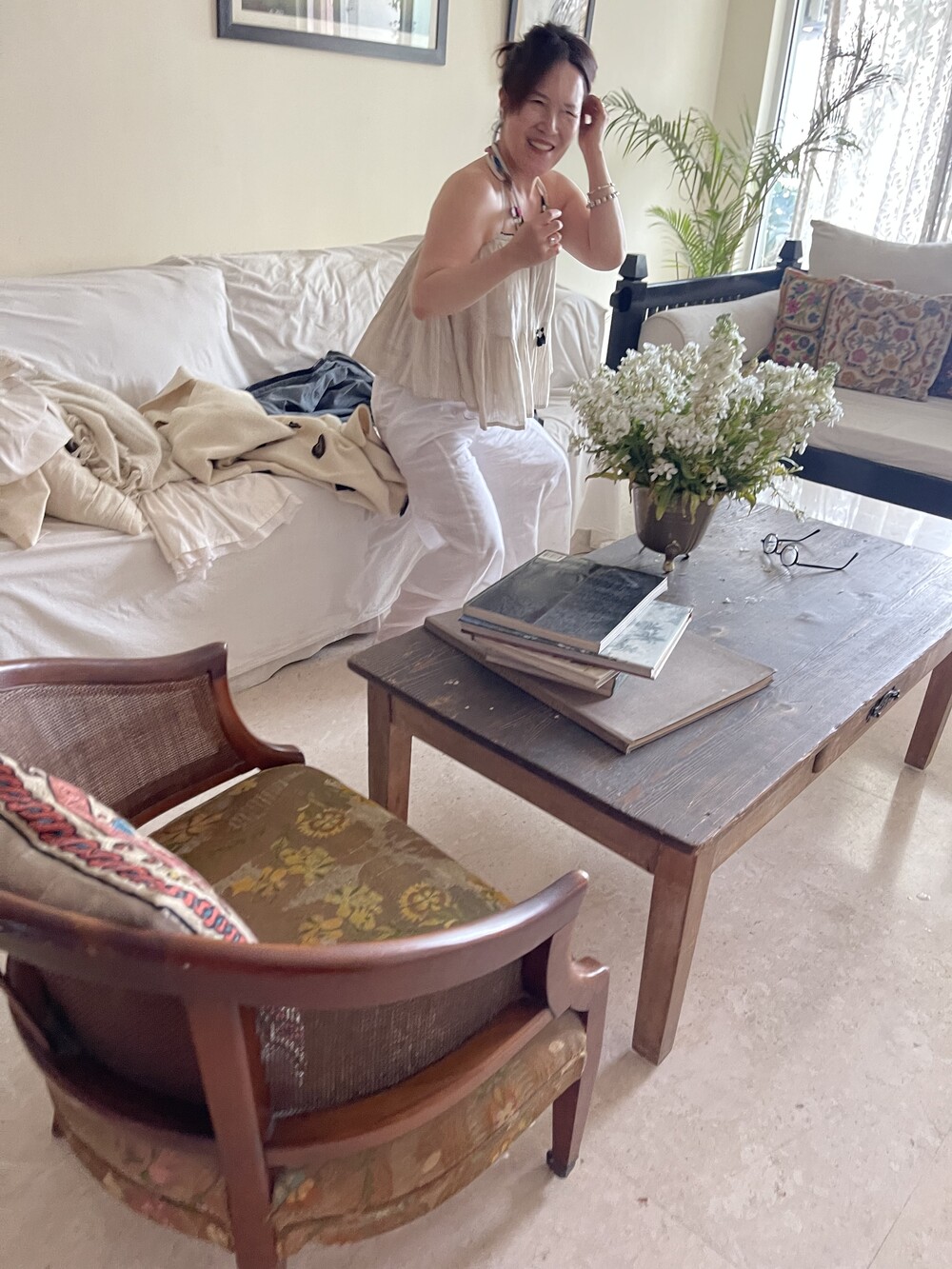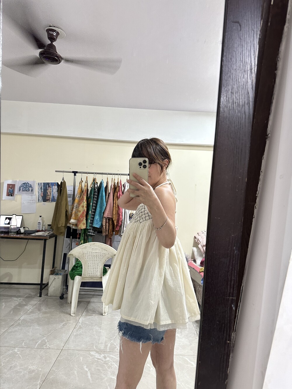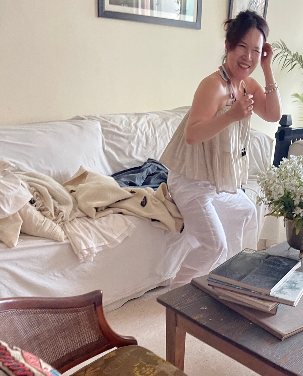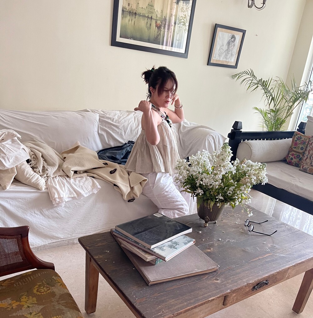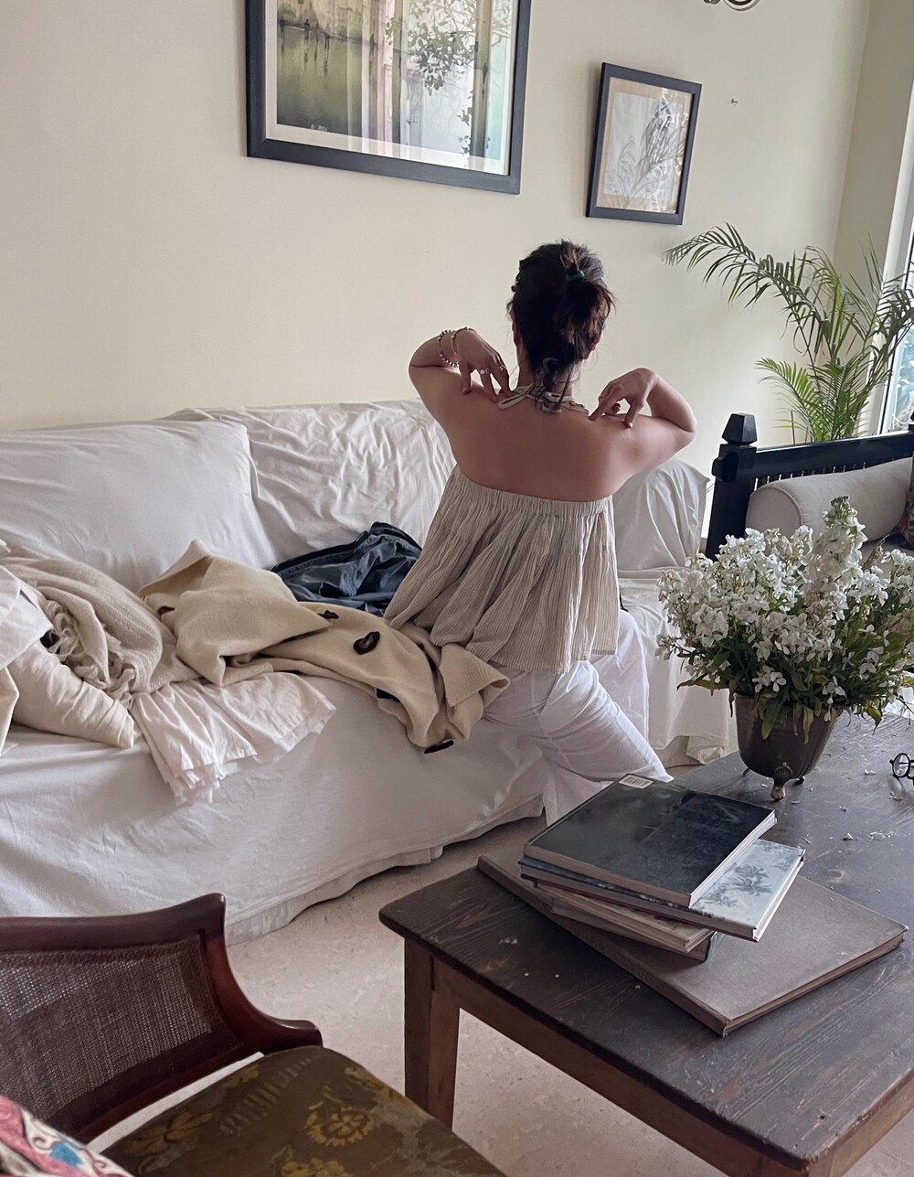 라바리 자켓안의 이너 스모킹 홀터넥이에요 기장은 자켓에서 조금 내려올정도로 57-58(속지포함)정도로 제작되고 가슴둘레는 66반 사이즈까지 입게 만듭니다.겨울에도 터틀넥과 입으실수있고 여러겹으로 겹쳐진 원단이고 찻물로 빈티지 느낌으로 염색했어요.카디원단으로 제작되었어요❤️주문제작이고 단순변심 교환 힘들어요!!바로 발송해요