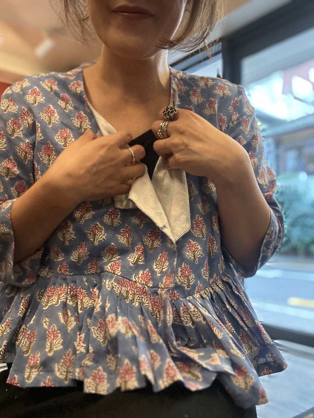 프릴처럼 잡힌부분이 가슴아랫부분이고,