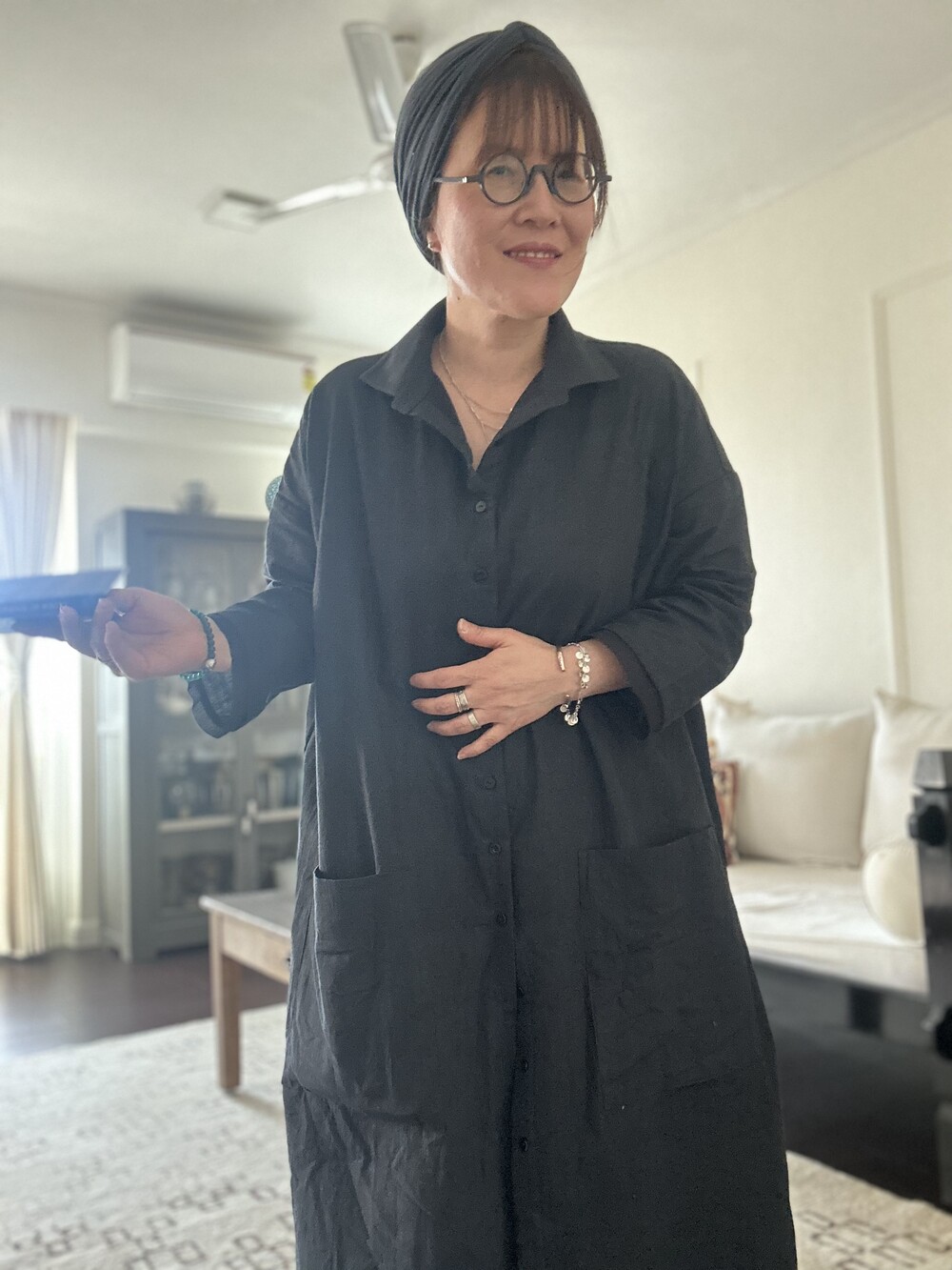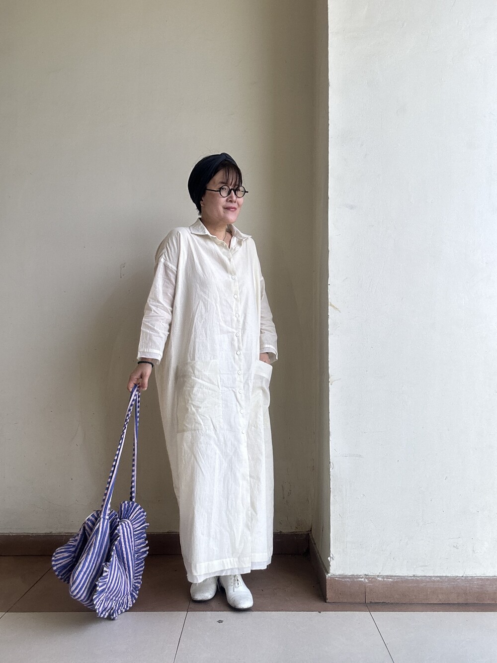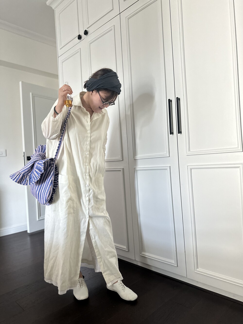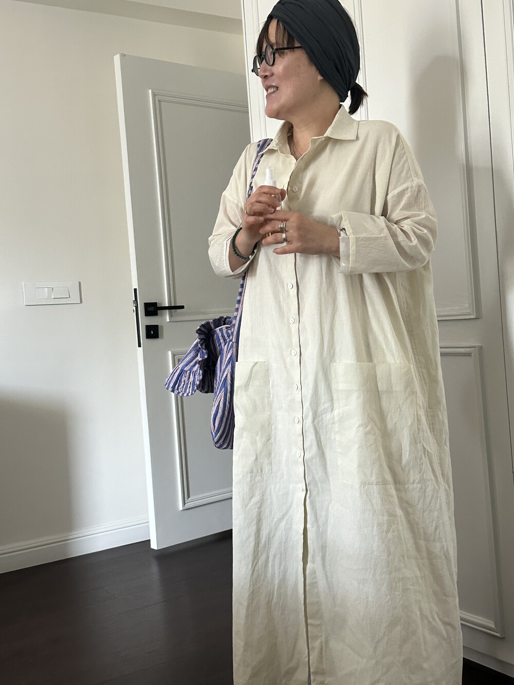 사주뒤 배송되며 봄 여름 가을 아주 잘 입으실거에요. 손으로 짠 핸드위빙 면으로 디자인되요.가슴둘레 64로 정말 박시하게 그리고 키도 커보이는 셔츠타입드레스이고 안감이 더 길게 되어 소매와 기장으로 나오는 디자인이에요. 카디와 보일이라는 면소재이고 라이닝을 대어서 더 여성스러움을 느끼게 되는 디자인이에요.