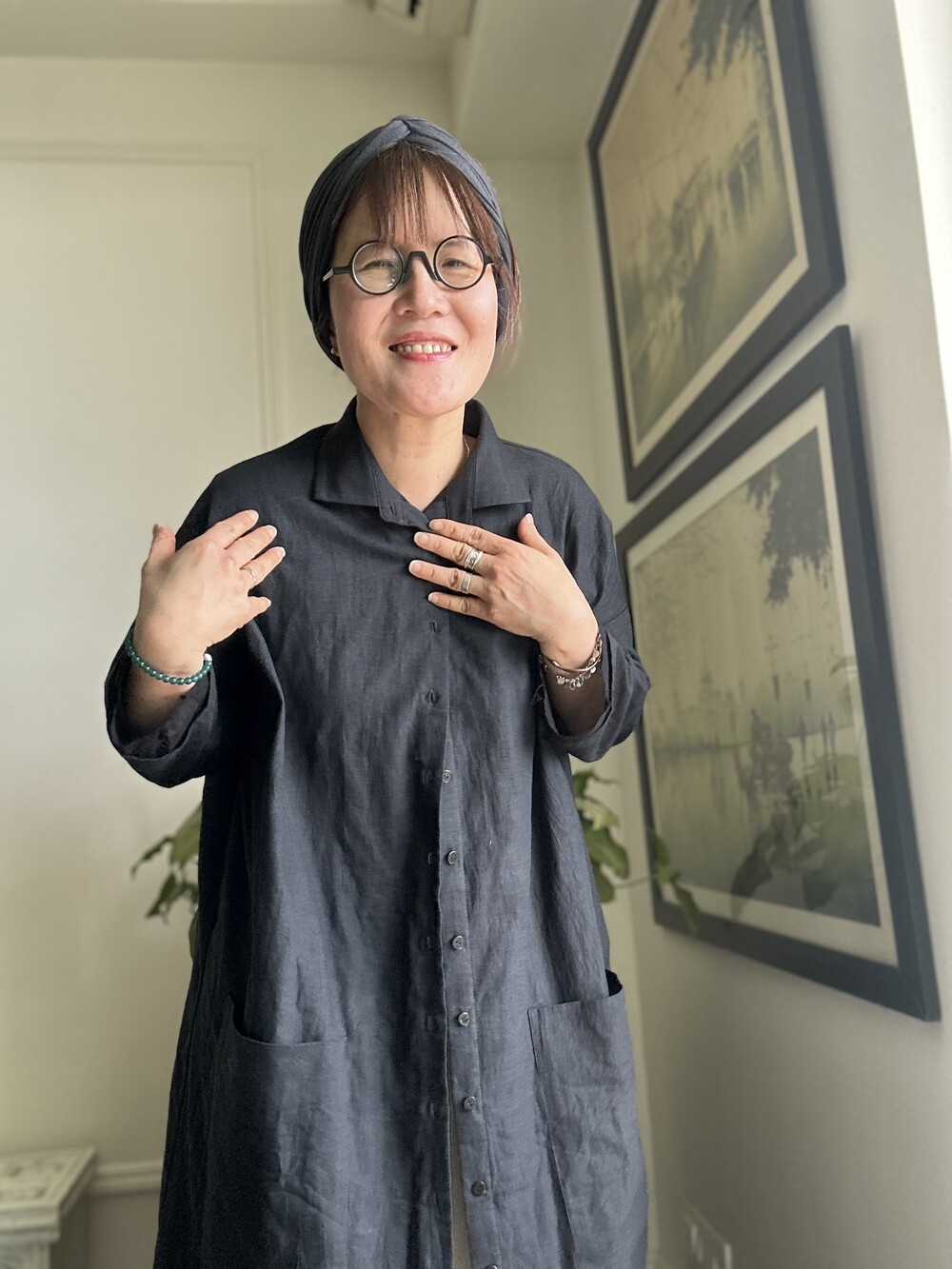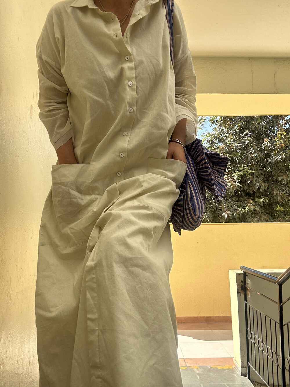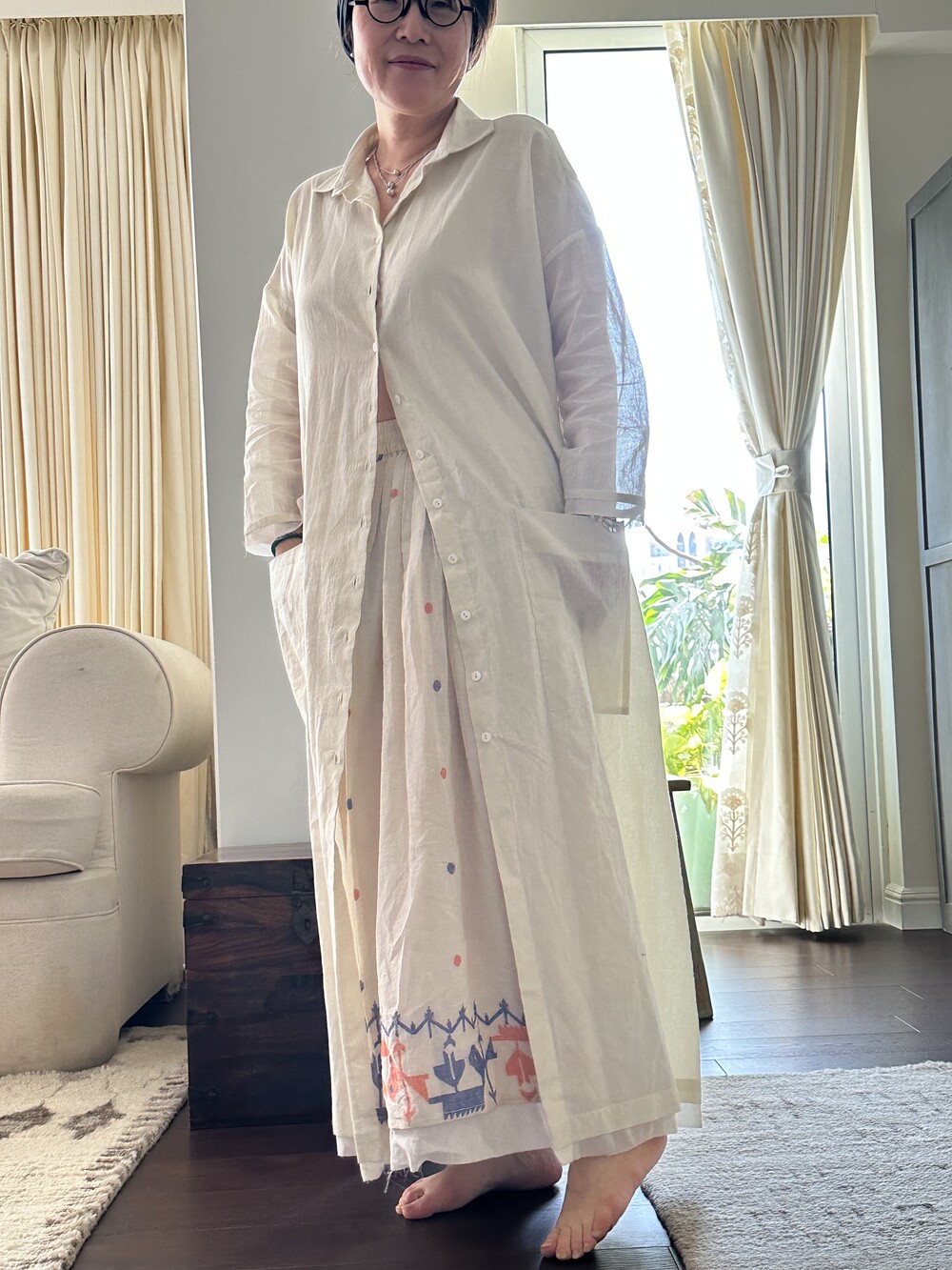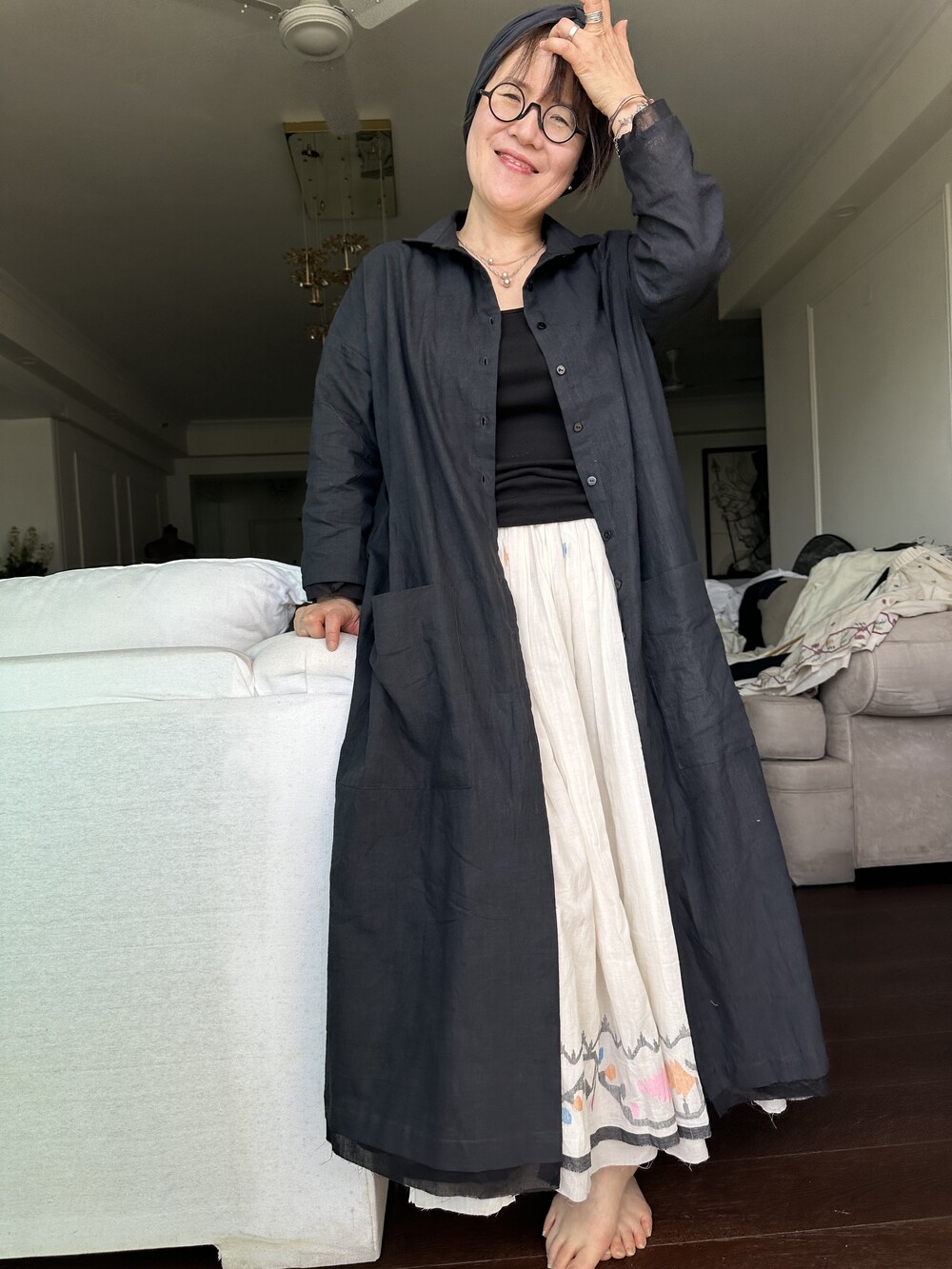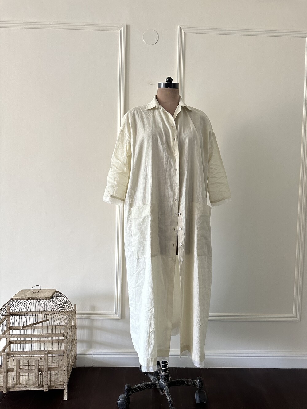 사주뒤 배송되며 봄 여름 가을 아주 잘 입으실거에요. 손으로 짠 핸드위빙 면으로 디자인되요.가슴둘레 64로 정말 박시하게 그리고 키도 커보이는 셔츠타입드레스이고 안감이 더 길게 되어 소매와 기장으로 나오는 디자인이에요. 카디와 보일이라는 면소재이고 라이닝을 대어서 더 여성스러움을 느끼게 되는 디자인이에요.