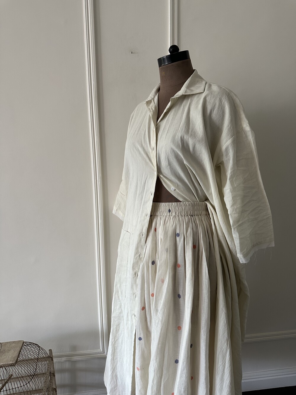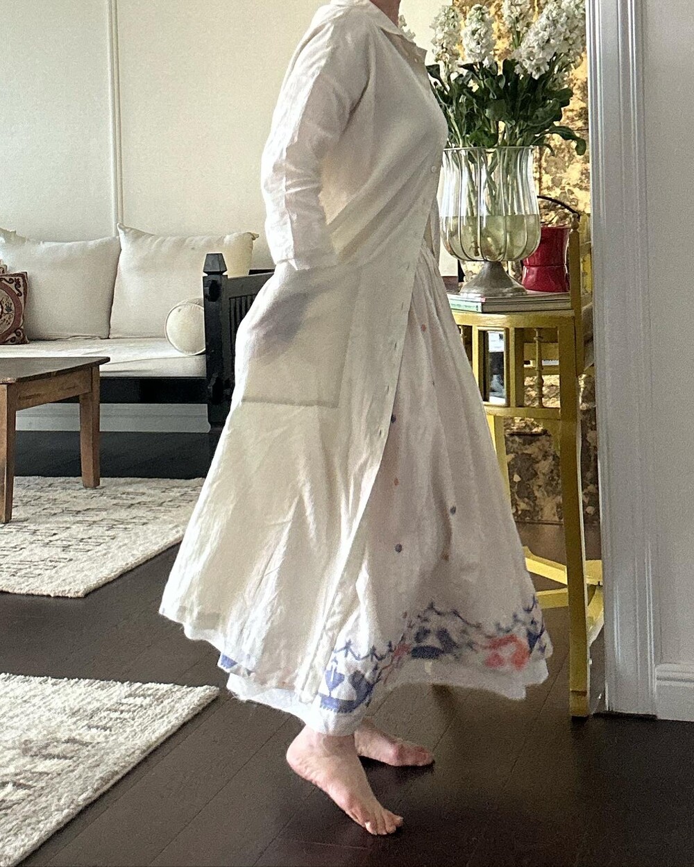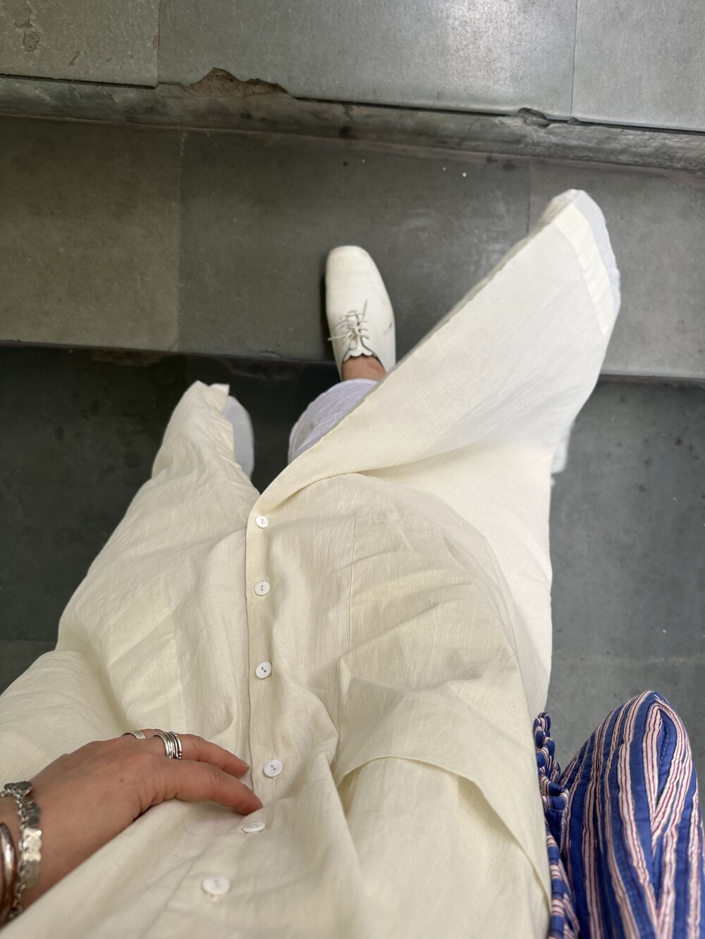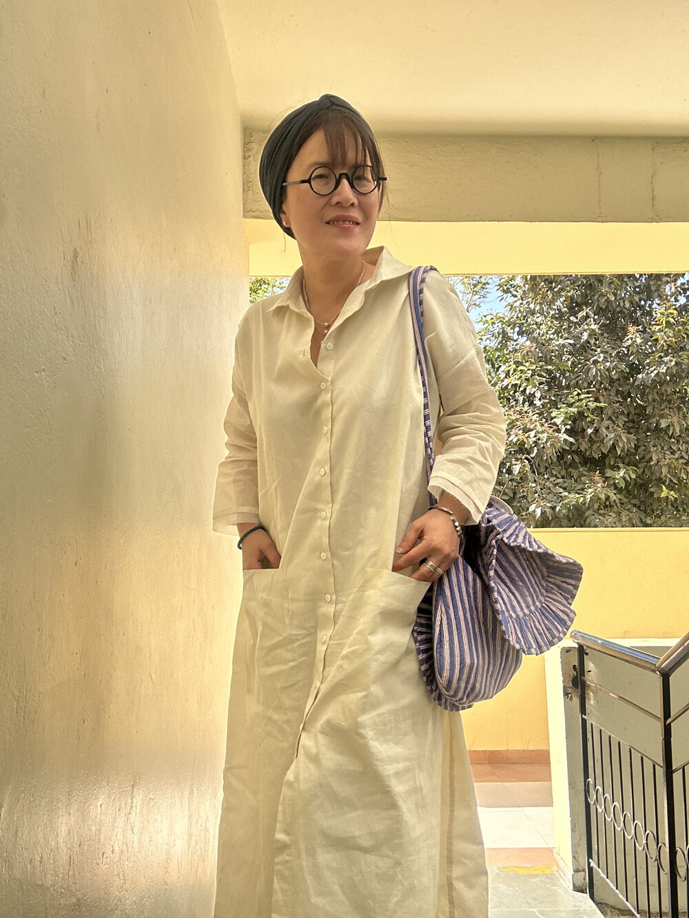 사주뒤 배송되며 봄 여름 가을 아주 잘 입으실거에요. 손으로 짠 핸드위빙 면으로 디자인되요.가슴둘레 64로 정말 박시하게 그리고 키도 커보이는 셔츠타입드레스이고 안감이 더 길게 되어 소매와 기장으로 나오는 디자인이에요. 카디와 보일이라는 면소재이고 라이닝을 대어서 더 여성스러움을 느끼게 되는 디자인이에요.