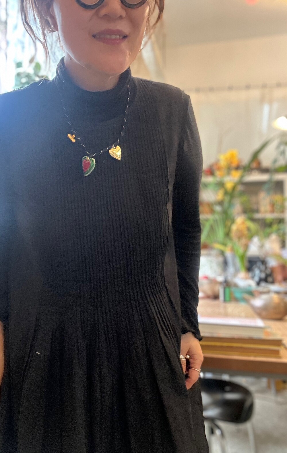 하나밖에 없어서 바로 배송과 세일가로 판매하니 변심 겨환 환불 힘듭니다.가슴둘레 반픔 56인데 신축성이 없으니 참고해주세요.기장은 105이고 모두 손으로 잡은 핀턱 입니다.카디원단이며 안감까지 부척되어있어서 사계절 모두 잘 입으세요,심지어 주머니도 있지요!