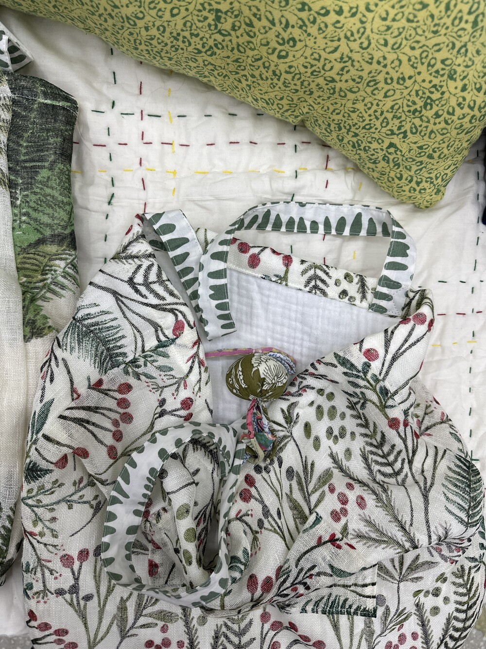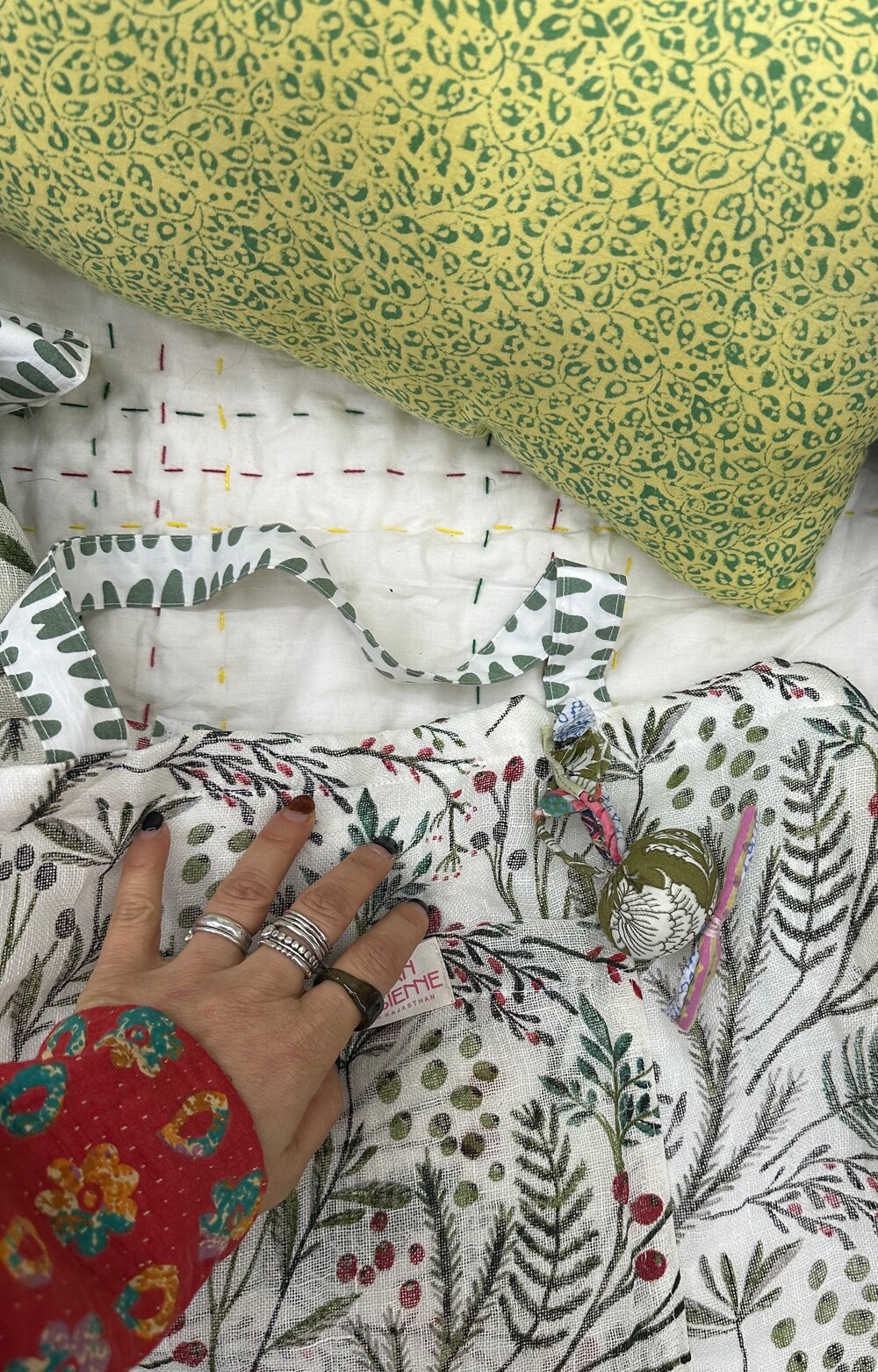 정말 예쁜 고사리 그림의 패브릭과 빨간 열매 패브릭이에요