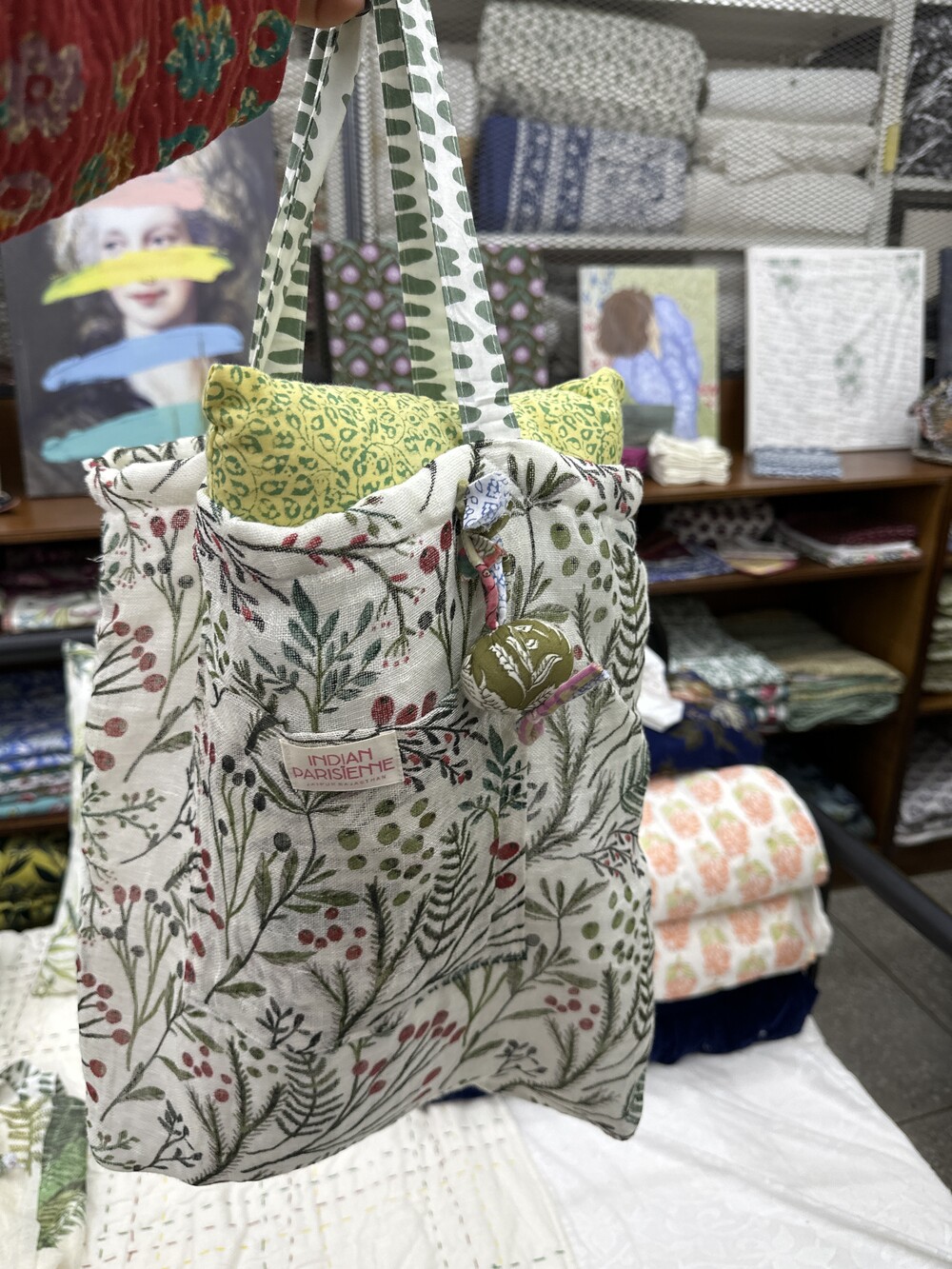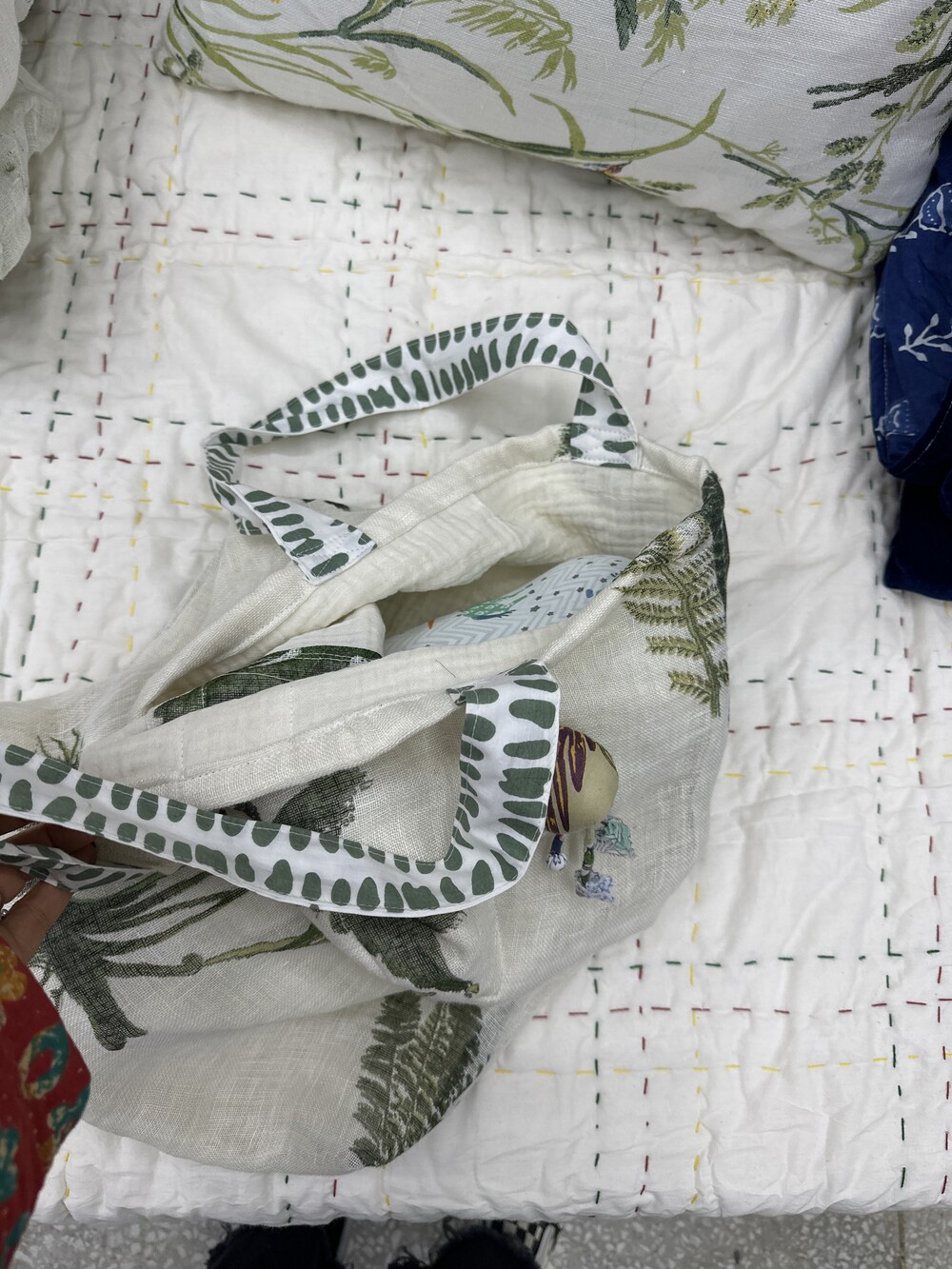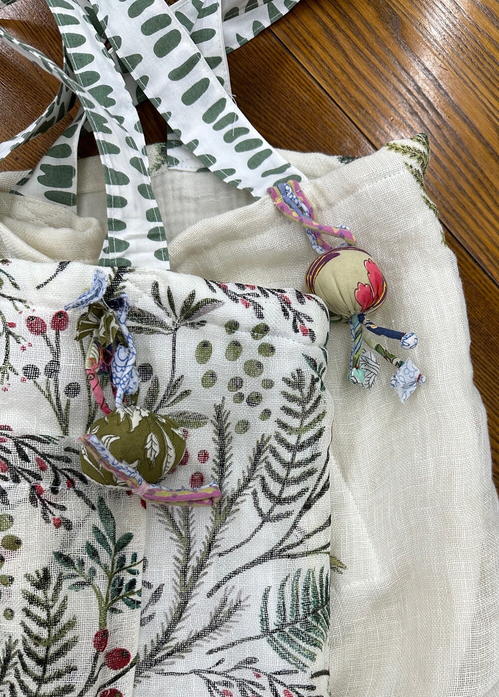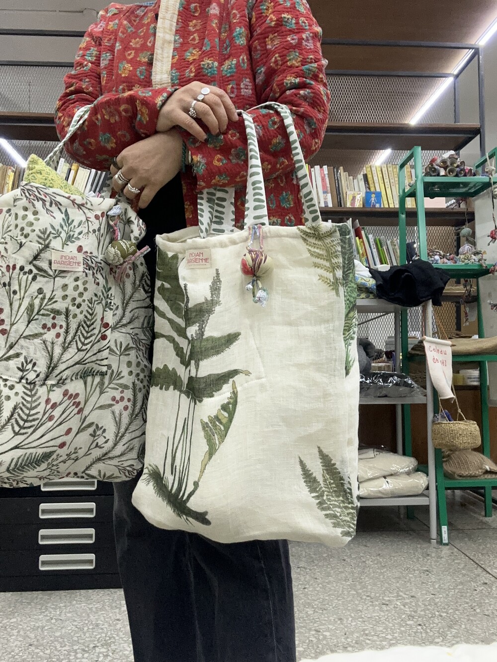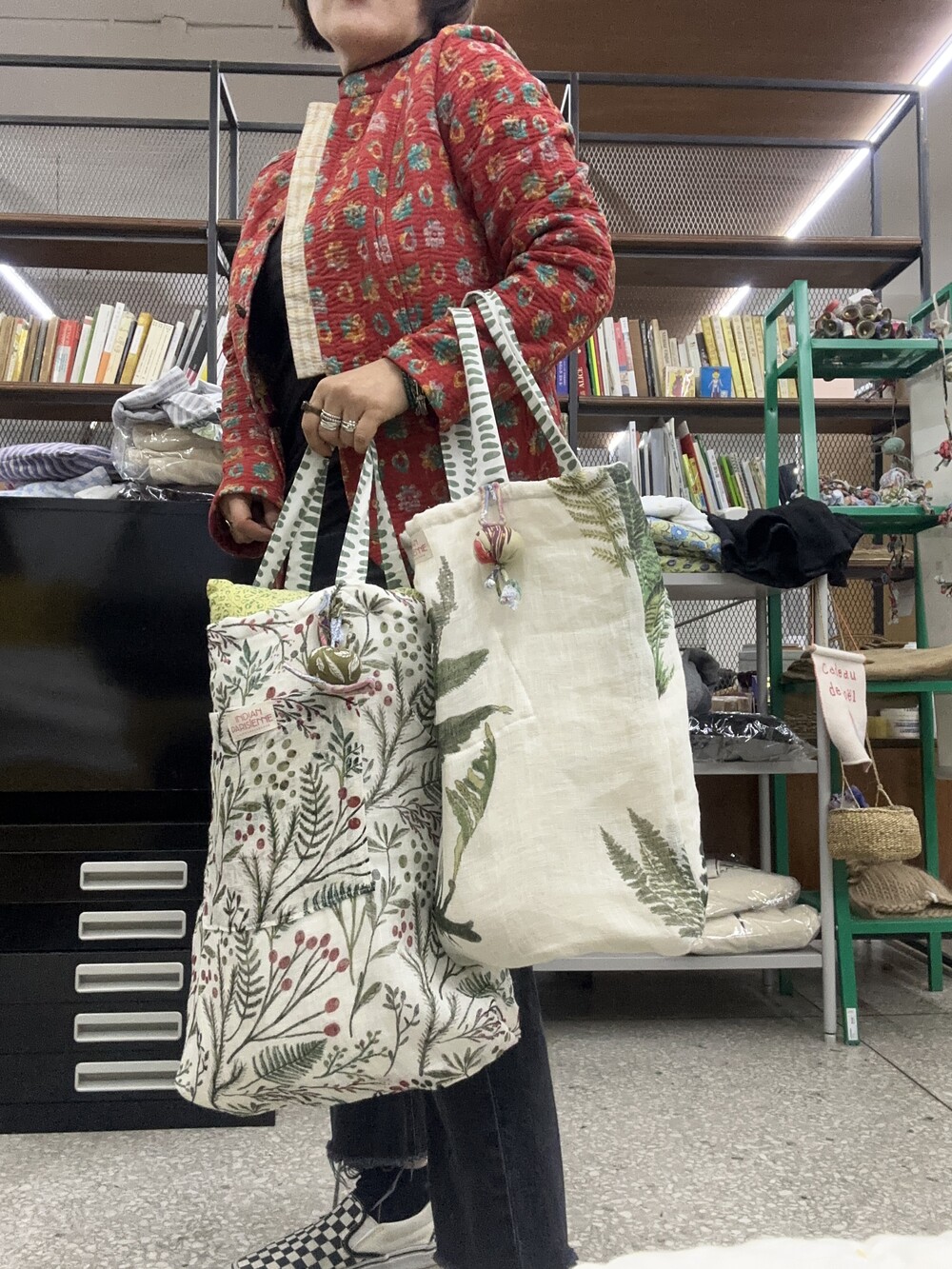 35*43 사이즈의 린넨거즈 가방이에요❤️참을 제가 귀엽게 양귀비 꽃모양으로 만들어 달았어요