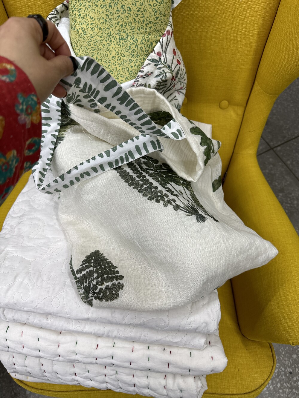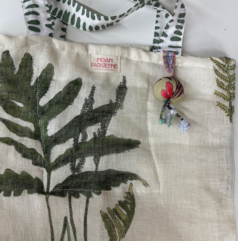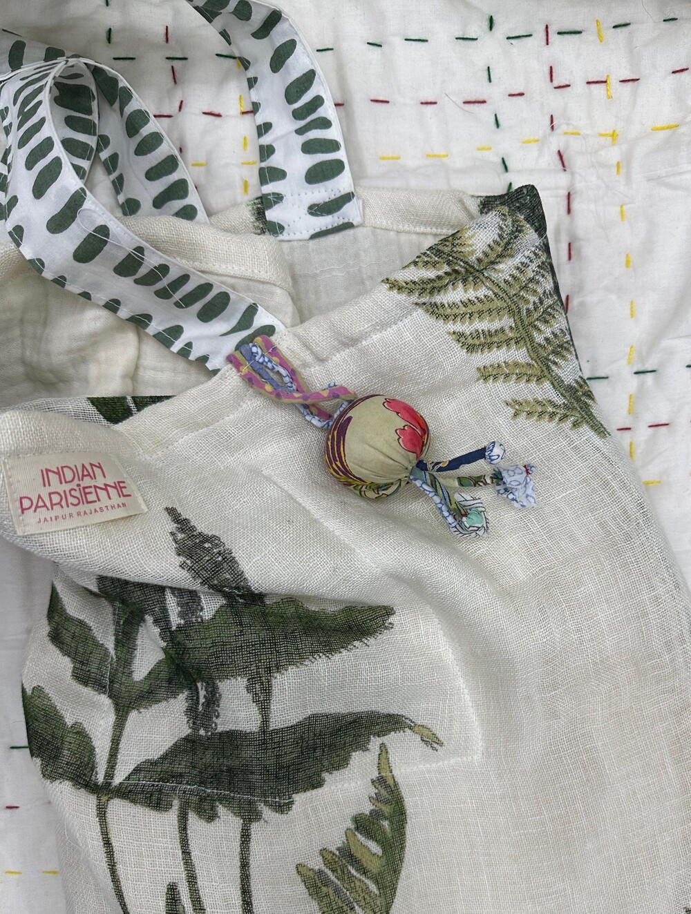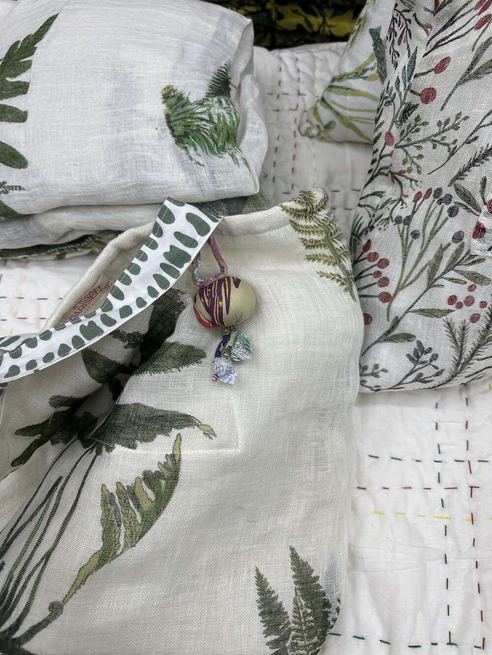 35*43 사이즈의 린넨거즈 가방이에요❤️참을 제가 귀엽게 양귀비 꽃모양으로 만들어 달았어요