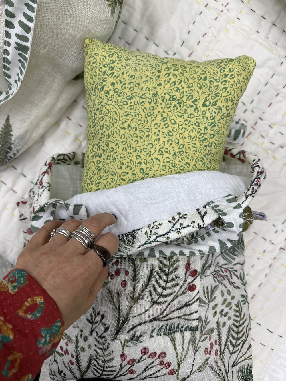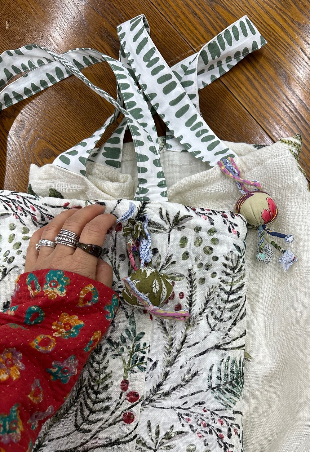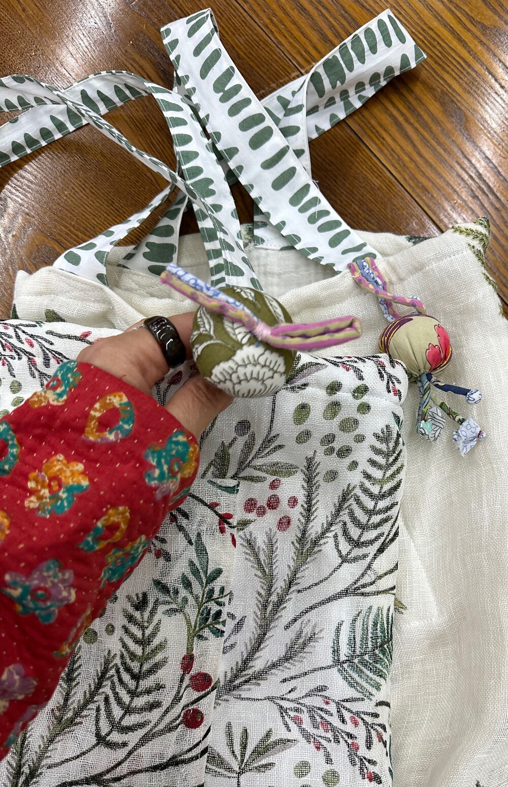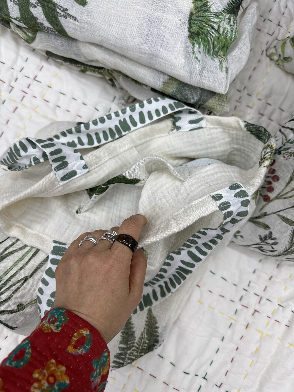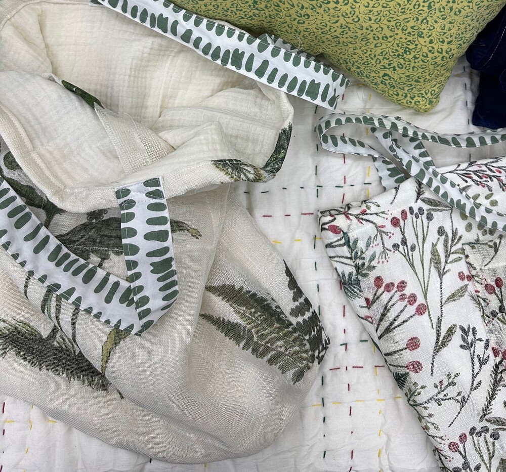 35*43 사이즈의 린넨거즈 가방이에요❤️참을 제가 귀엽게 양귀비 꽃모양으로 만들어 달았어요