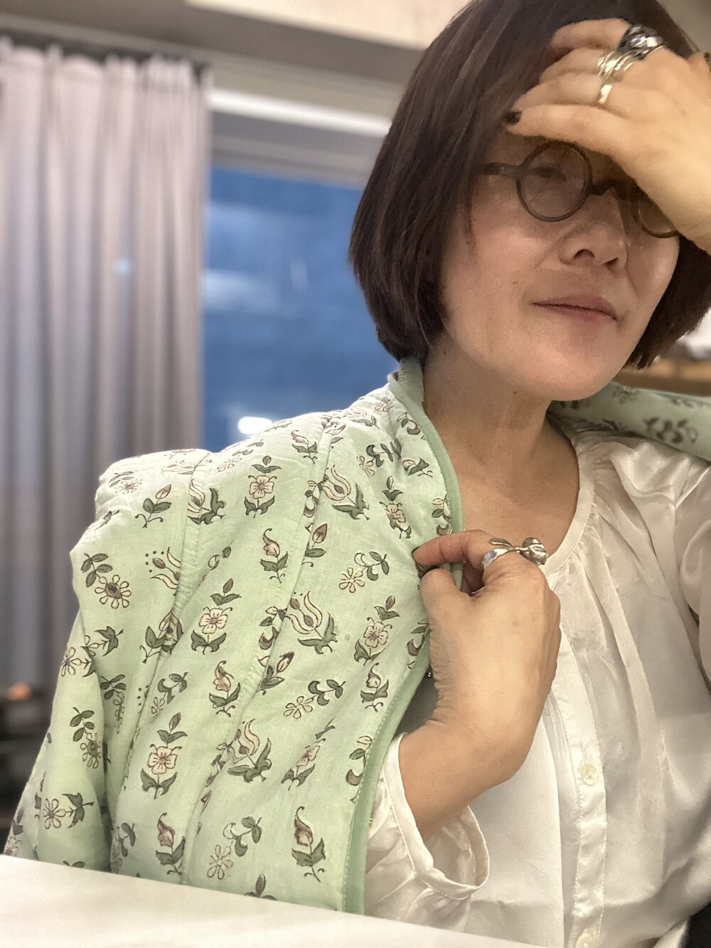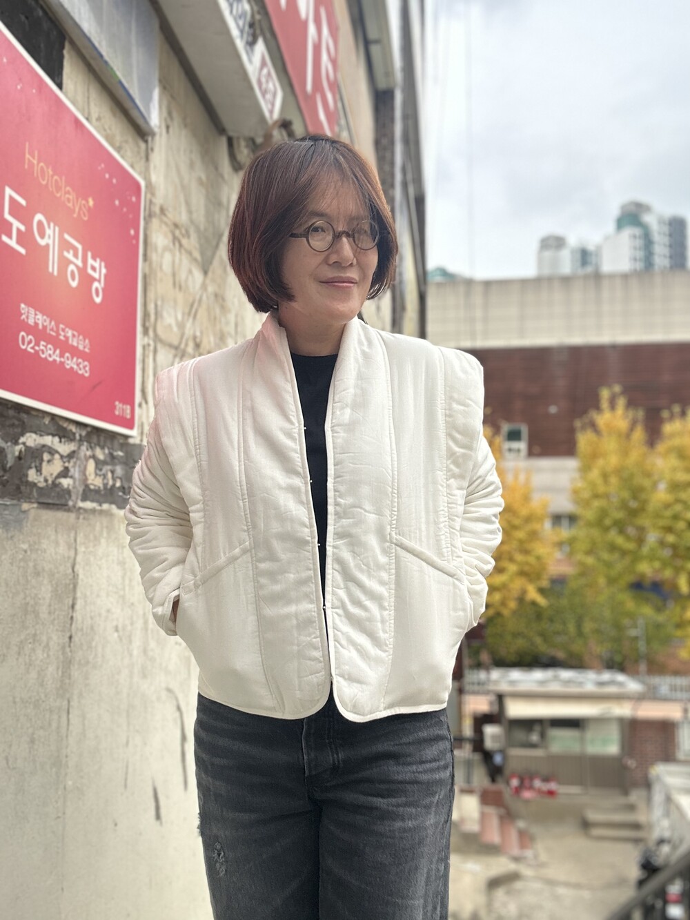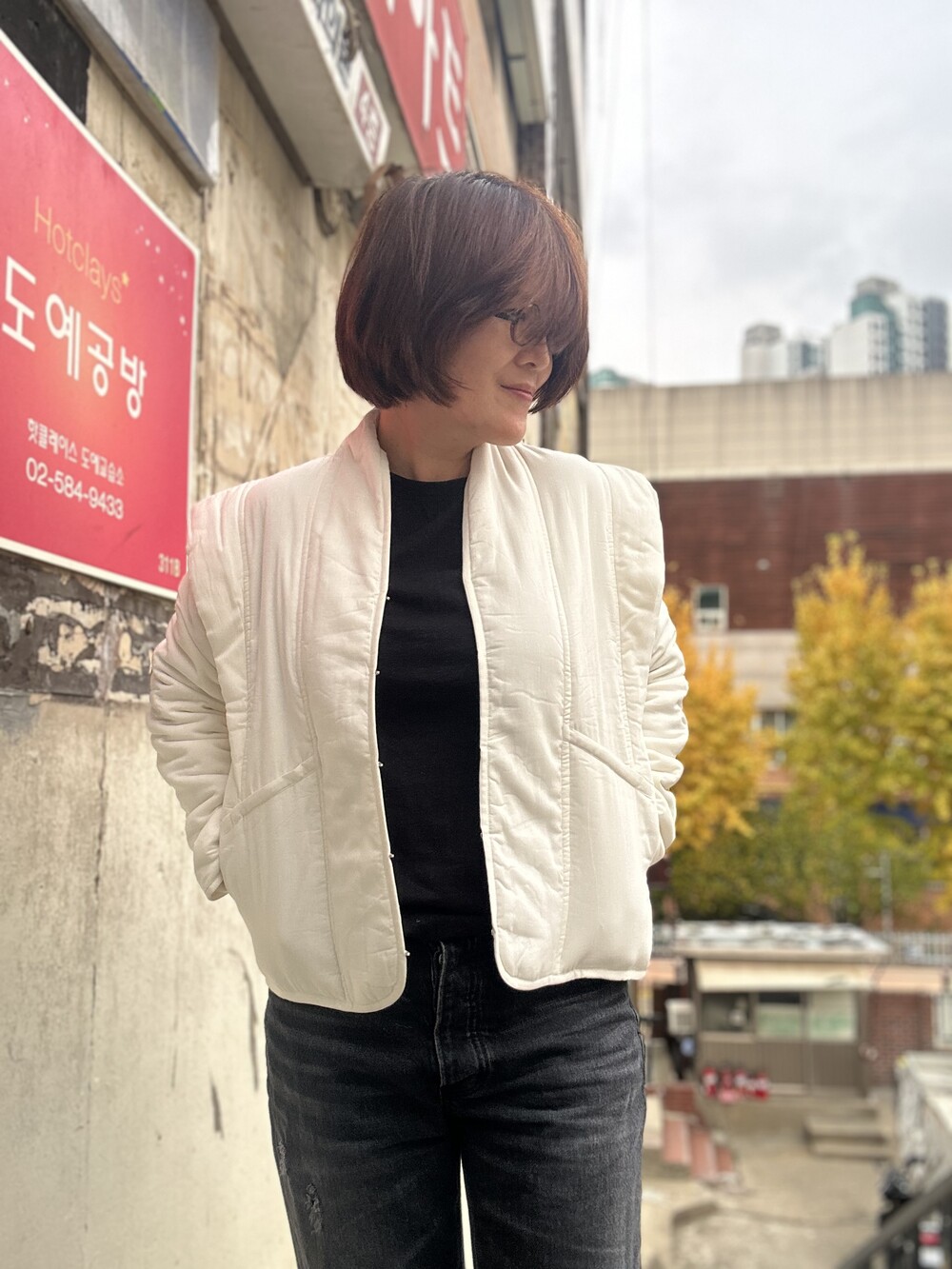 일온스 반이 들어간 목화솜 자켓이고 제가 입은게 라지사이즈에요요기장 50