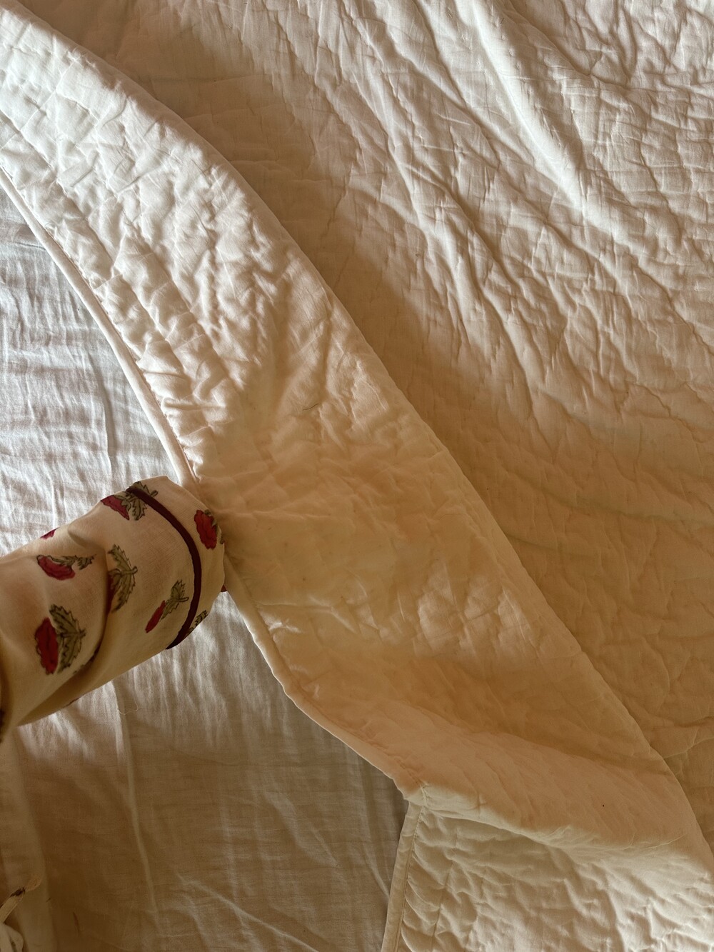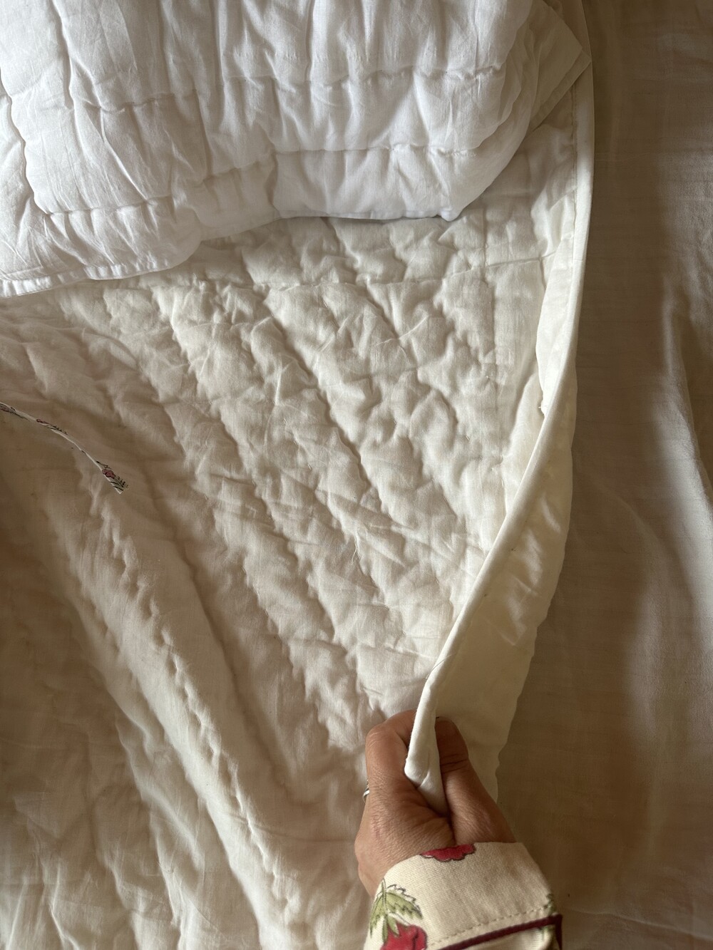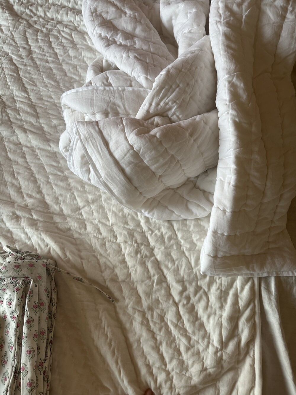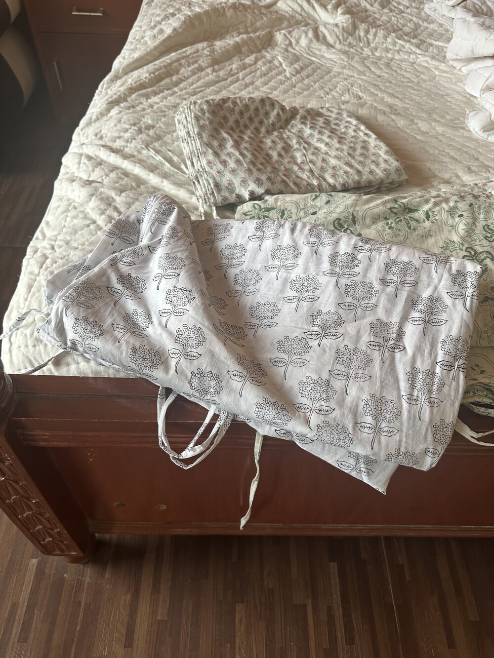 소파에서 덮기도 좋고 쿠션감이 좋아 베드 메트리스 스프링 바꾼느낌이죠. 목화솜이불과 동일한 목화솜을 플랫으로 만들어서 제작했어요,소파에 툭 걸치셔도 예뻐요.두가지 사이즈로 진행되며 주문이후 단순변심 교환힘들고 울코스 세탁하심되요.