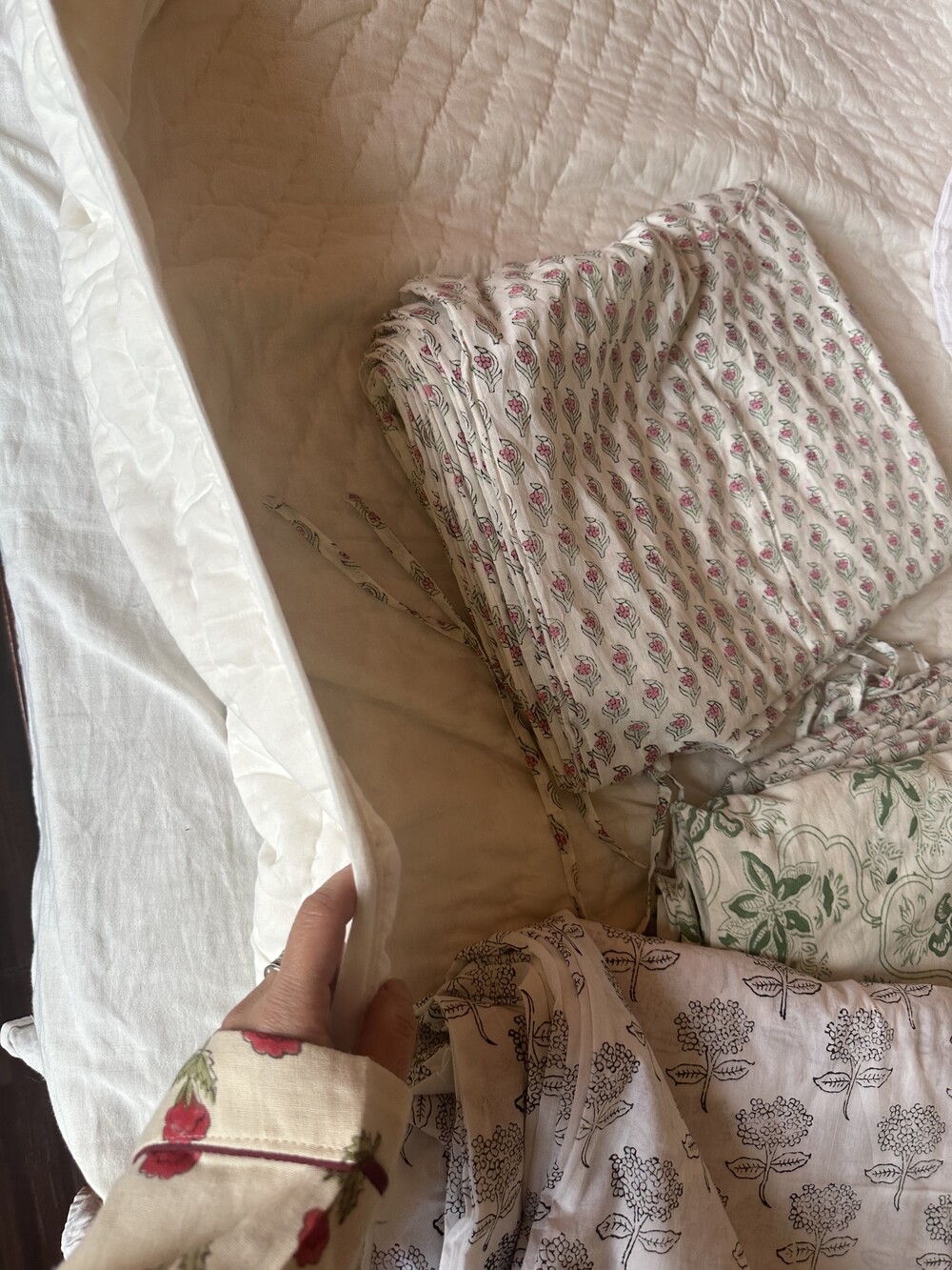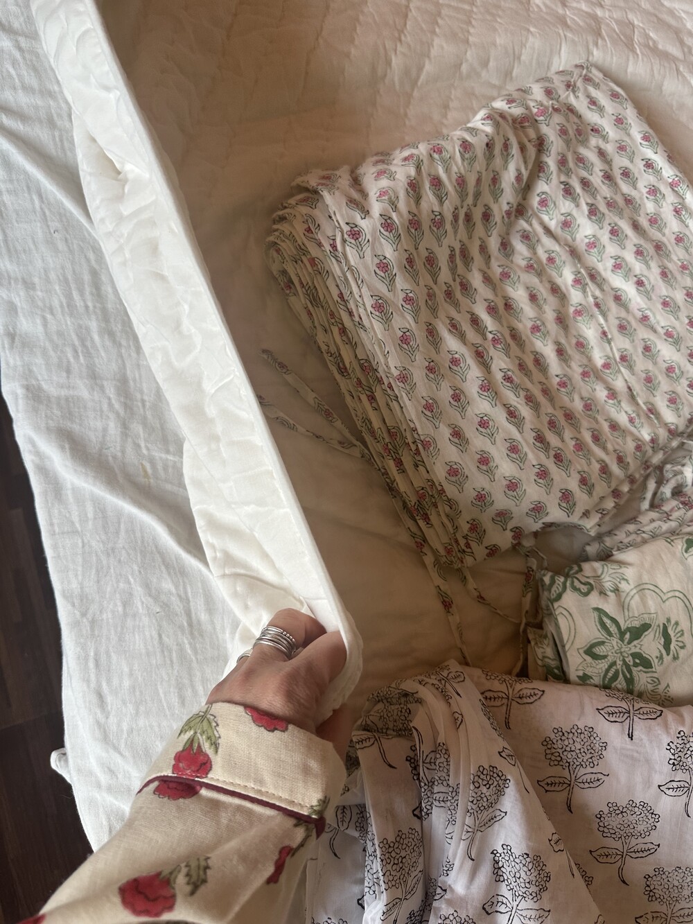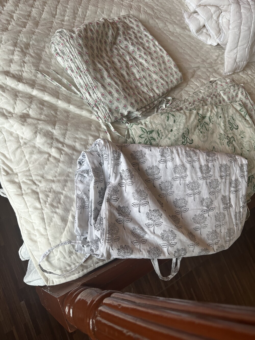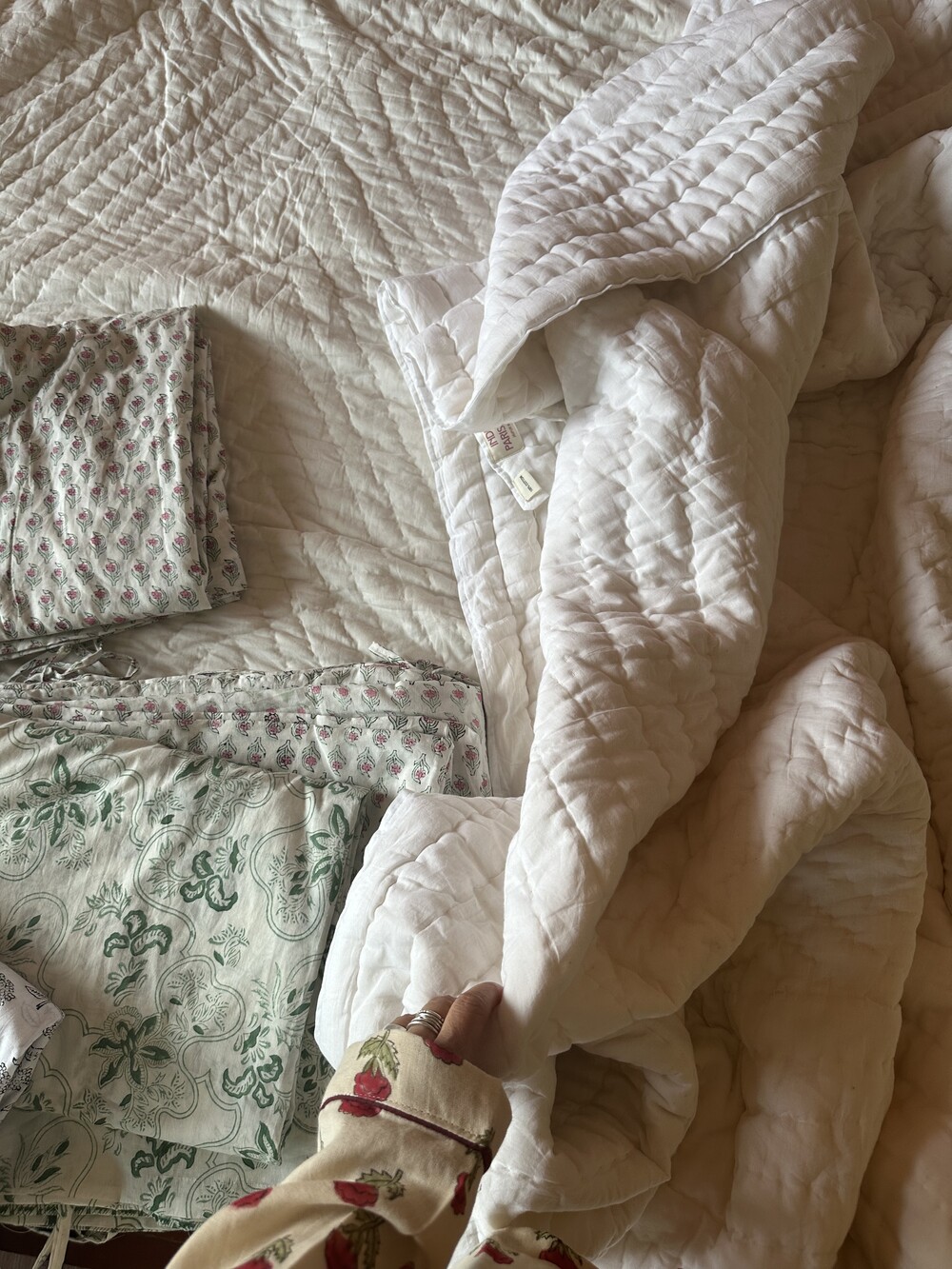 소파에서 덮기도 좋고 쿠션감이 좋아 베드 메트리스 스프링 바꾼느낌이죠. 목화솜이불과 동일한 목화솜을 플랫으로 만들어서 제작했어요,소파에 툭 걸치셔도 예뻐요.두가지 사이즈로 진행되며 주문이후 단순변심 교환힘들고 울코스 세탁하심되요.