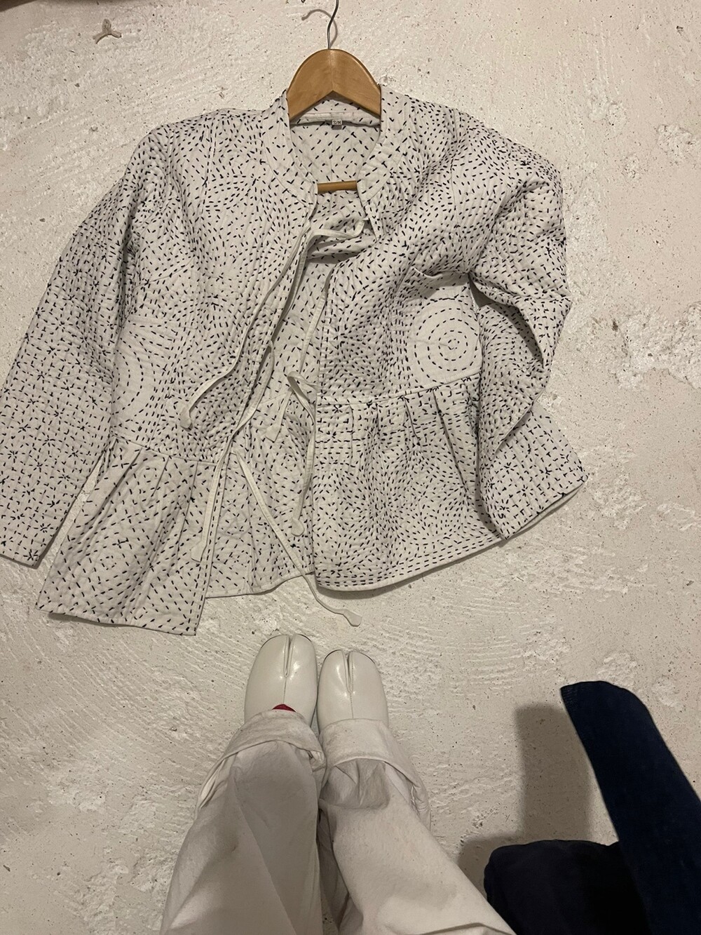 수량이 몇개없어서 세일진행합니다.동심원 점점점...소망 바램을 담은자켓 가디건이에요.여름에 에어컨에서도 가디건으로 입으시기 좋고 진이나 슬립 드레스에 걸치시기좋아요. 한달에서 한달반 소요되며 프리오더 진행하고 반품은 불가합니다. 백퍼센트 핸드메이드 스티치라 삐뚤빼뚤하고 조금씩 다르며 백퍼센트 면소재입니다.