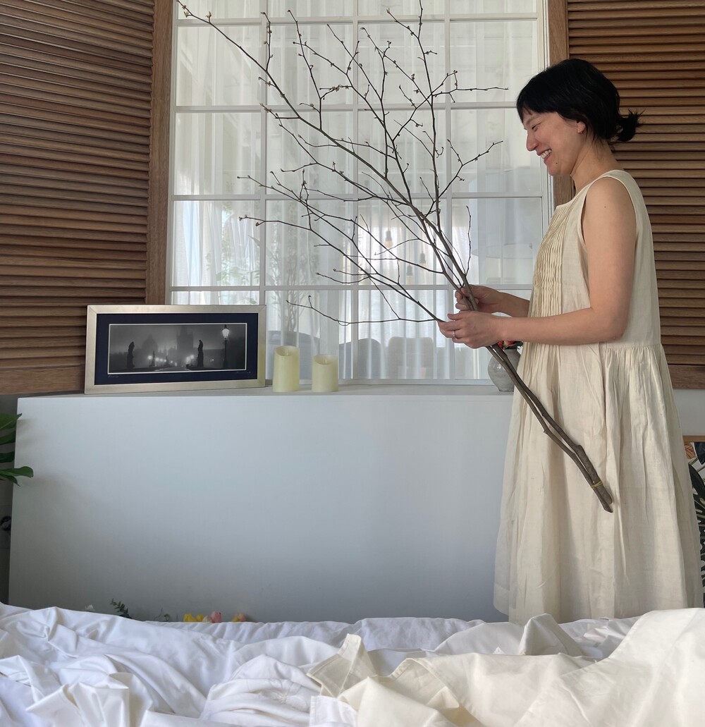 찻물로 물들인 카디원단입니다.색감이 아주 자연스럽고 아름다워요.