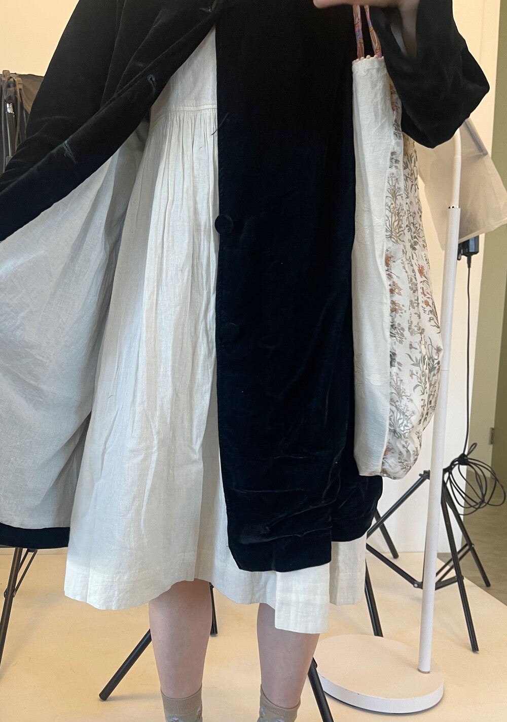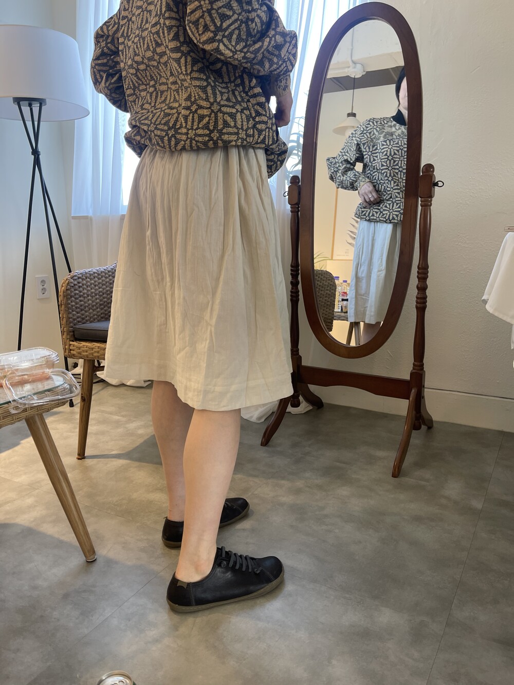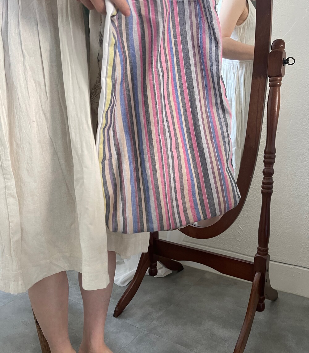bust small40,mideum44,large 49로 진행되고 xl는 52에요 기장은 104cm를 기준으로 약간의 오차가있고 진동둘레는 넉넉히 재단됩니다.가디건과 자켓 그리고 스웨터에 입으시기도 좋아요. 안김 치마도 있어서 실용적이기도해요.4주간의 제작기간이 소요되고 밝은색상이며 주문제작으로 기간인에 단순변심 교환환불 힘든점 이해부탁드려요.