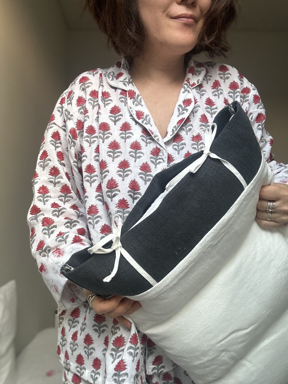 빨간꽃과 그린 숲 그리고 청화백자 느낌의 세가지 거즈에요.원단모두 준비되어있고 열흘뒤 그러니까 3.25 인도서 출발해요❤️ 사월초 또는 중순에 받으실거에요!면 거즈 소재이고 가슴둘레 단면 54와 64로 진행해요. 저희 거즈 소재 정말 최고인거 아시죠?!빨면 더 예쁜 소재에요❤️ 잠옷입고 지는 삶 꼭 알려드리고파요!!!!! 특별할인가 꼭 잡으세요🙏 특별 할인가 기간이 종료되었고 선주문제작으로 단순변심 교환 힘드니 신중구매해주세요