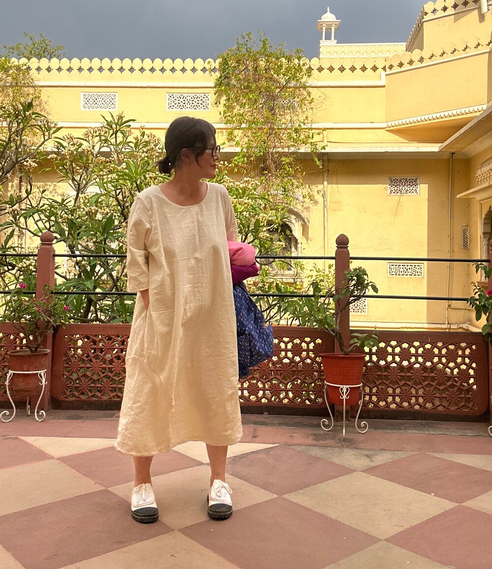 카디(직기로 짠 천연소재)로 만든 마늘,두부,인삼,막걸리 컬러 드레스에요.안감 되어있고 주머니 있고요.기장은 107정도이고 가슴둘레반품, 64에요. 단순변심,중간변심,환불,교환 힘드나 신중구매해주세요.그리고 밝은 색상 제품으로 더욱 환불 취소 불가합니다.