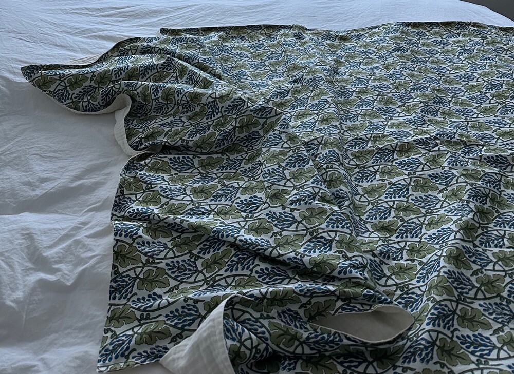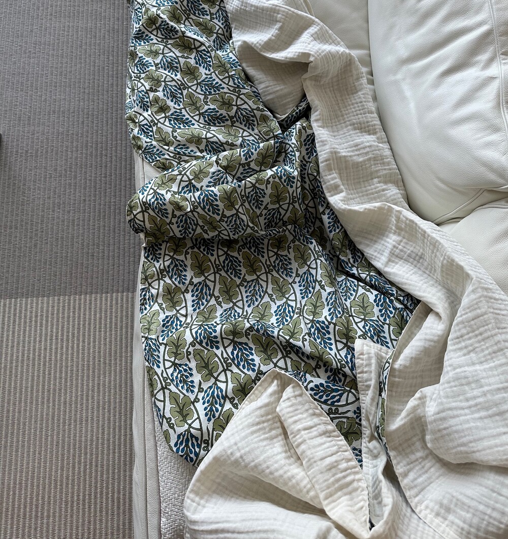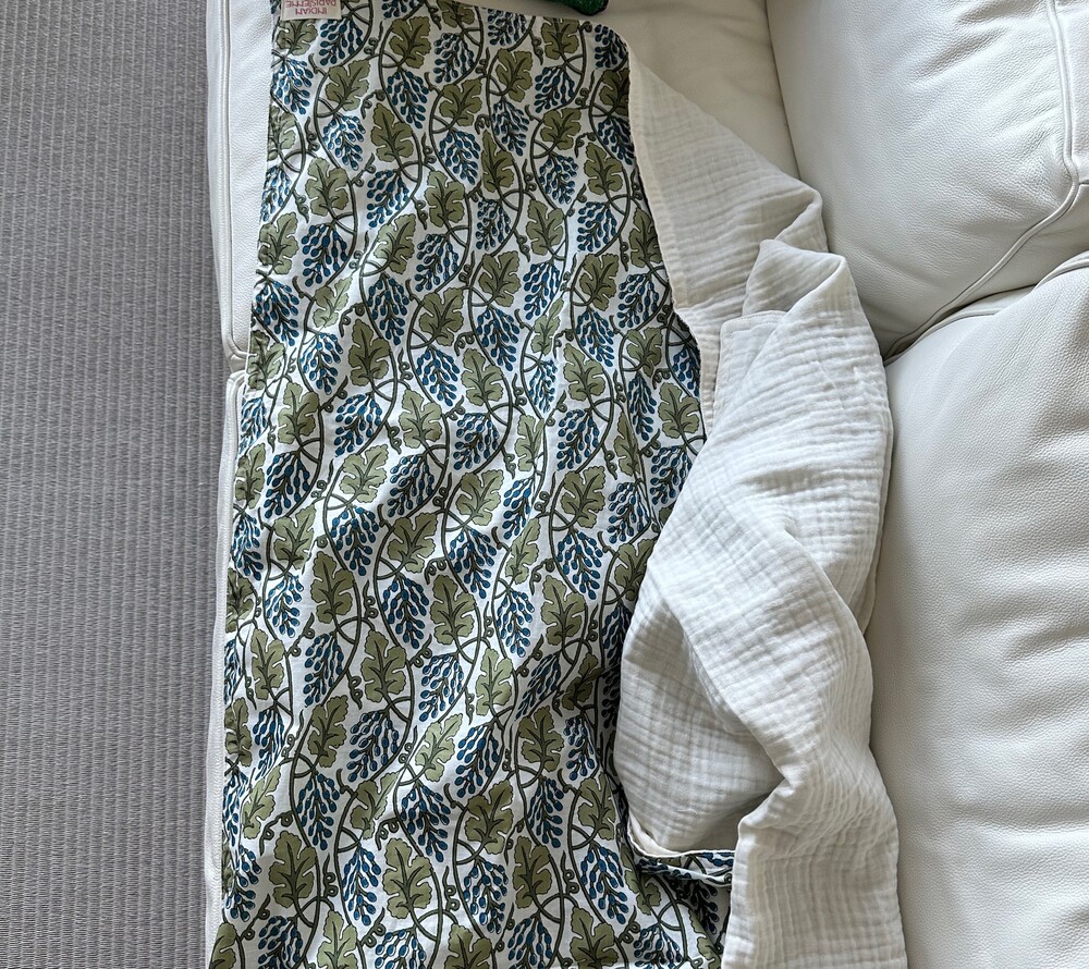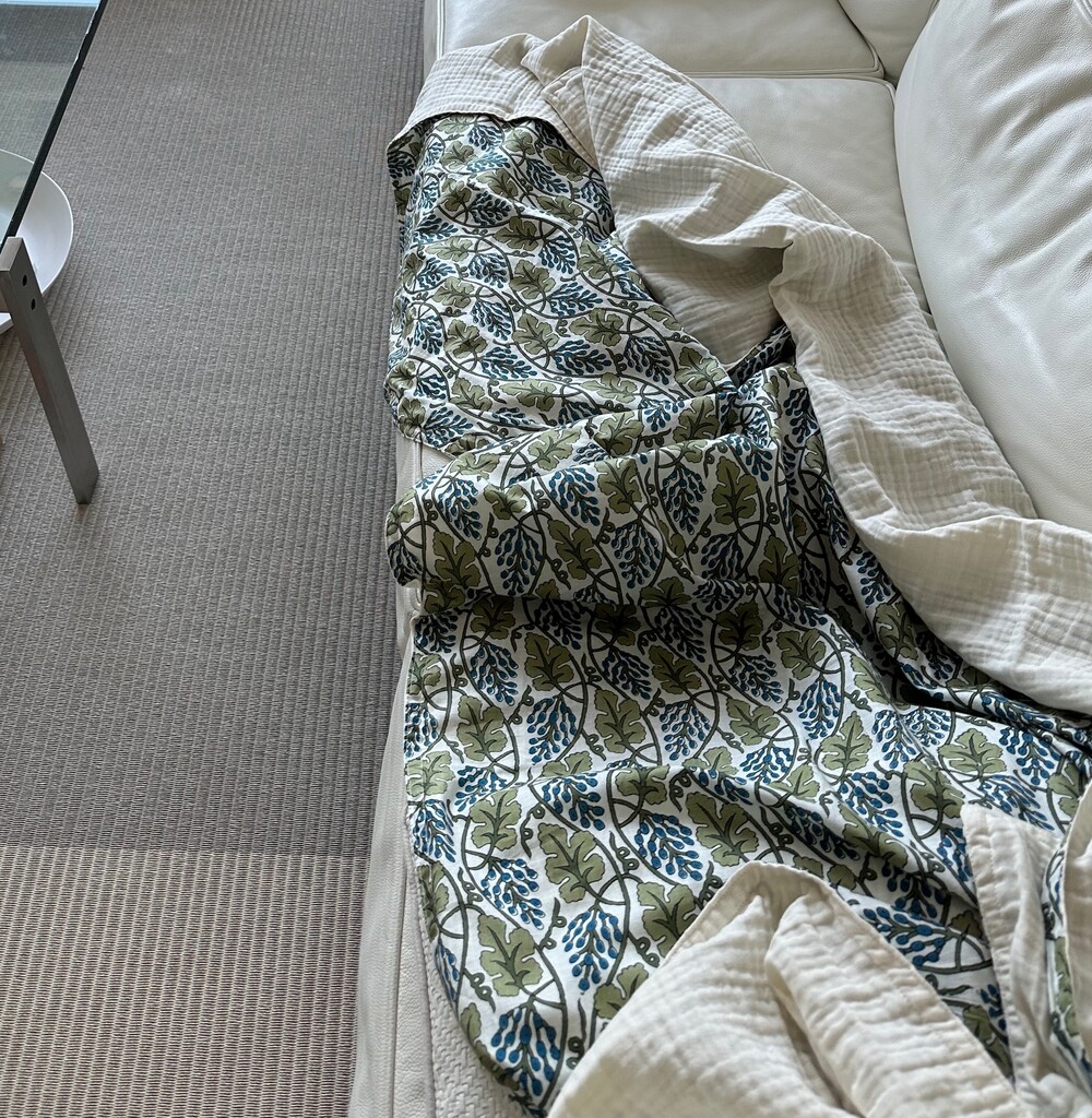폭은 112센티미터 길이 200센티미터인 면과 삼중면거즈 조합의 이불이에요. 들뜨지않게 손바느질로 중간중간 매듭이 되어있고 소파위에서 낮잠을 즐기시거나 여름 선배드에서 넘 좋으실거에요❤️주문제작으로 바로 발송됩니다!!!!