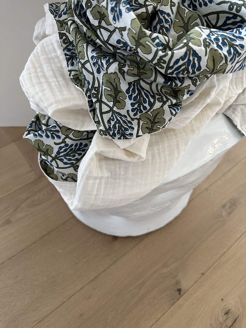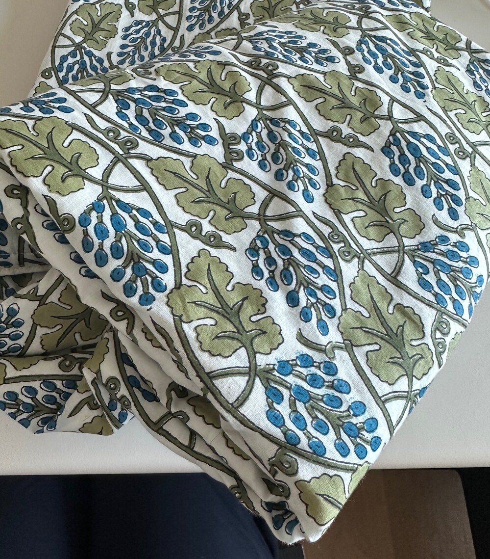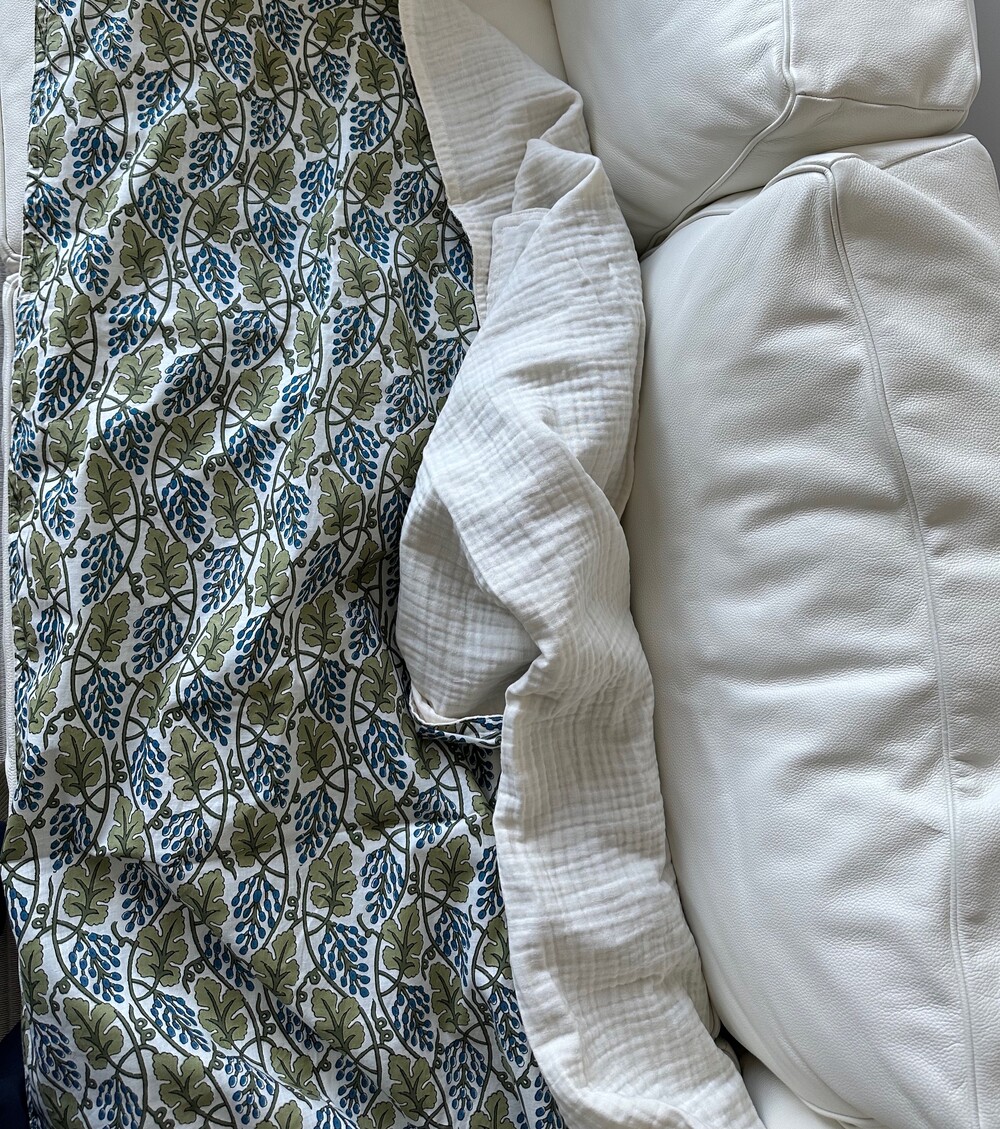폭은 112센티미터 길이 200센티미터인 면과 삼중면거즈 조합의 이불이에요. 들뜨지않게 손바느질로 중간중간 매듭이 되어있고 소파위에서 낮잠을 즐기시거나 여름 선배드에서 넘 좋으실거에요❤️주문제작으로 바로 발송됩니다!!!!