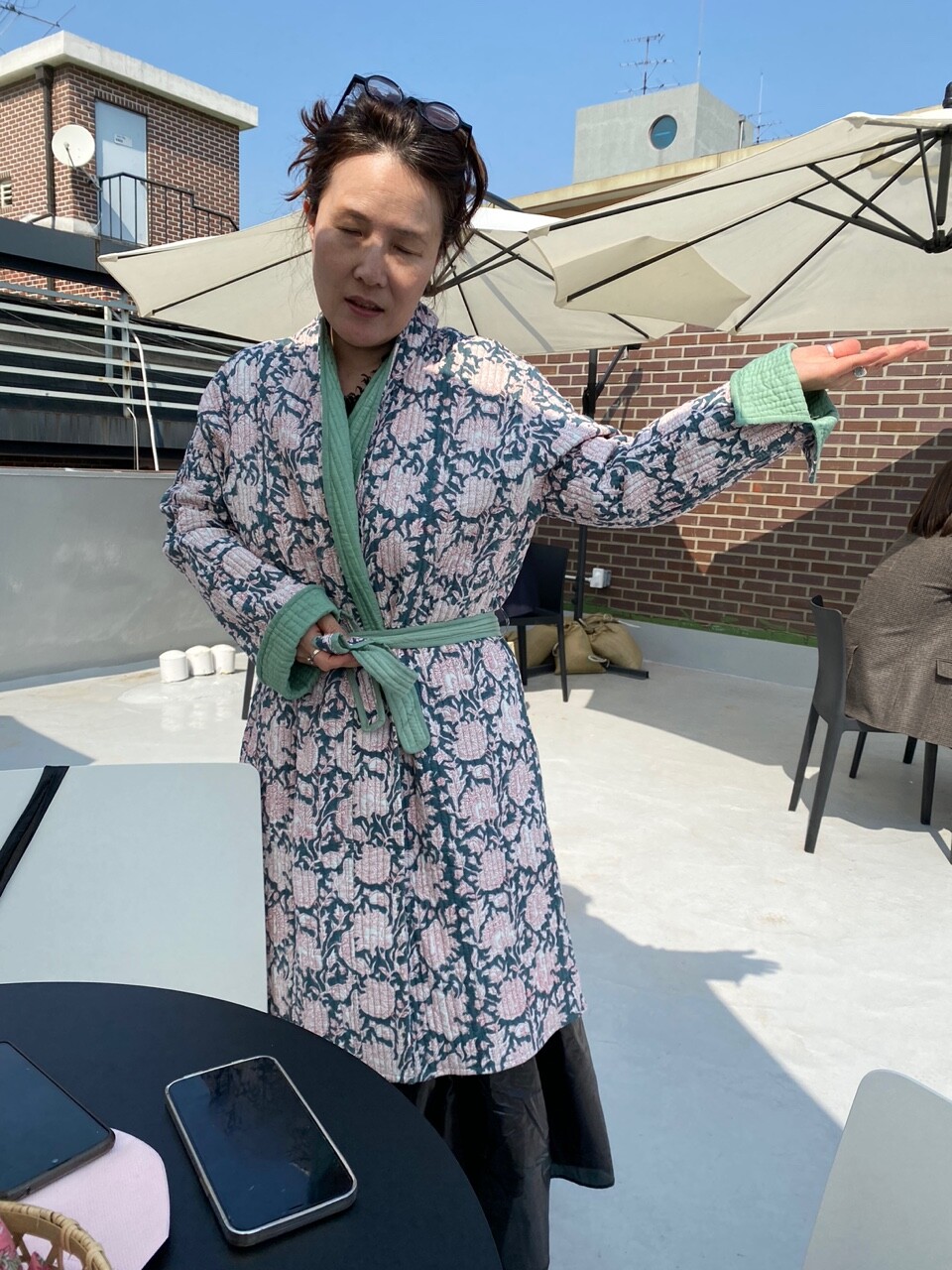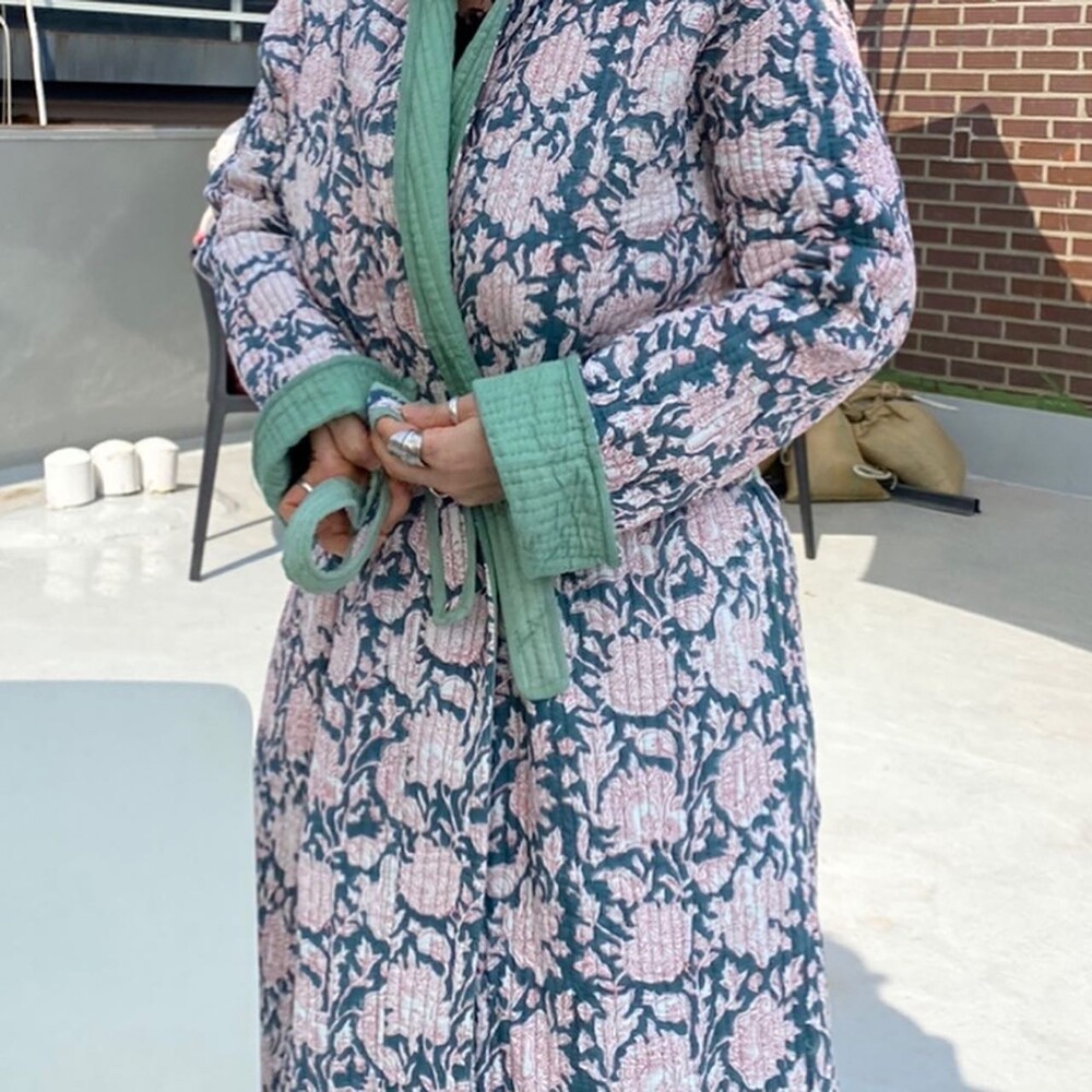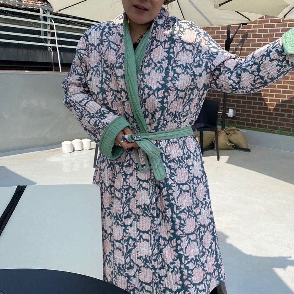 손누빔 퀼팅로브 기장 추가된 119센티 기장의 로브입니다.💓면소재로 울코스 단독세탁을 권하고 연료냄새를 위해서는 햇빛샤워 필요합니다. 한정수량으로 개인변심으로 인한 반품 교환불가하고 색상 화면과 조금 다를수있음을 알려드립니다,77반정도까지 충분하세요.