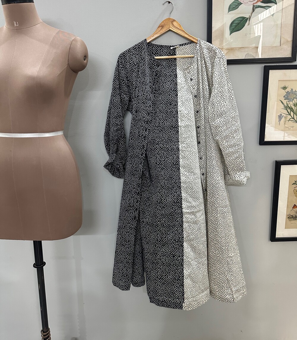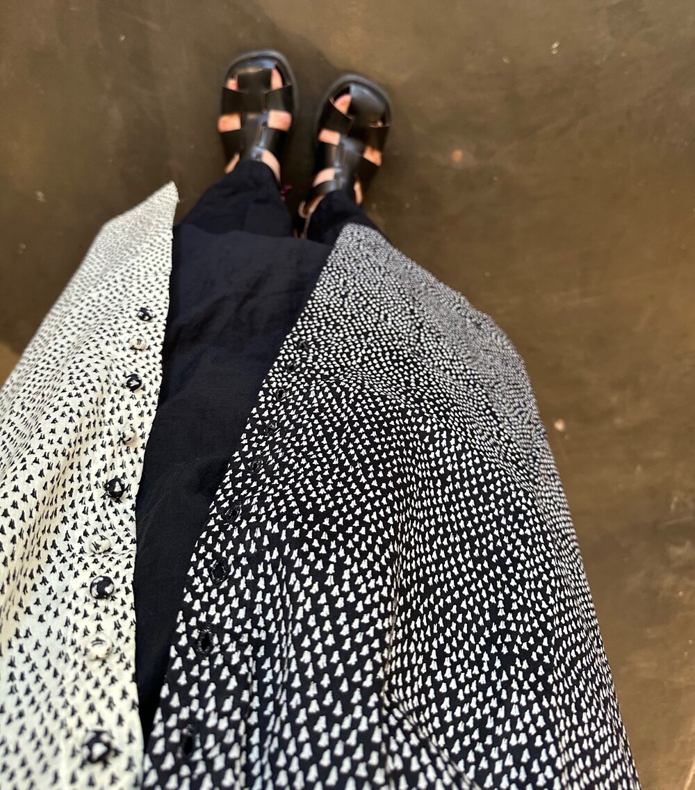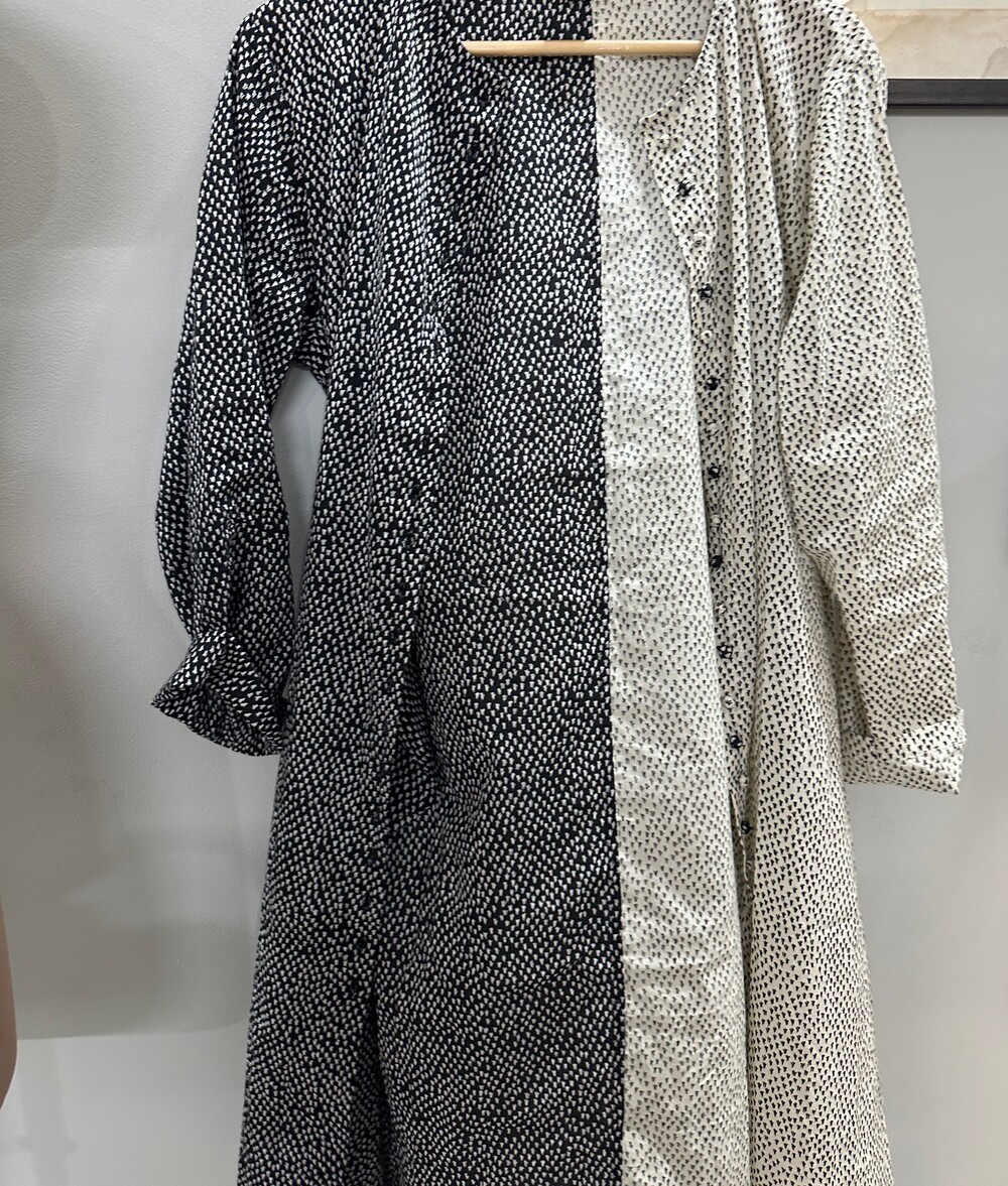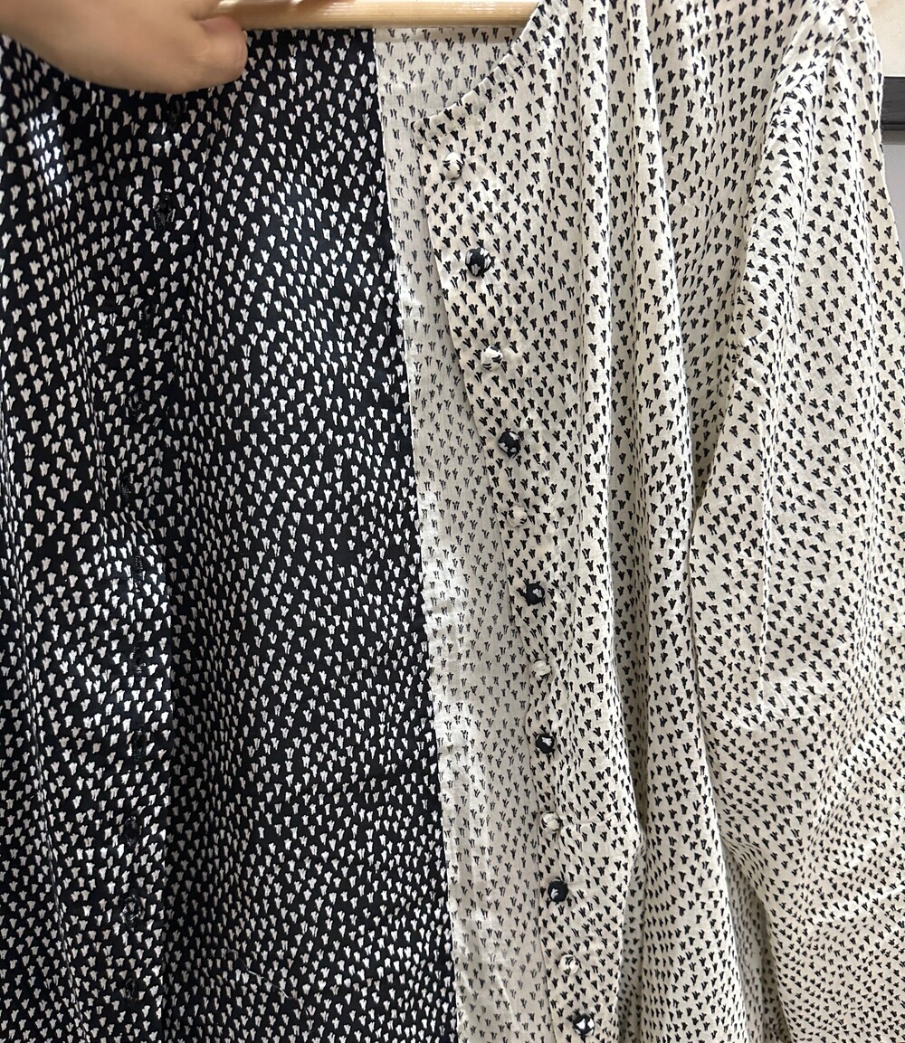 불랙과 화이트의 드래스 타입 로브에요 슬립드레스 또는 터틀넥 위에 걸치기도 좋죠!
