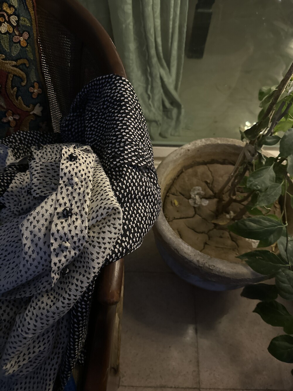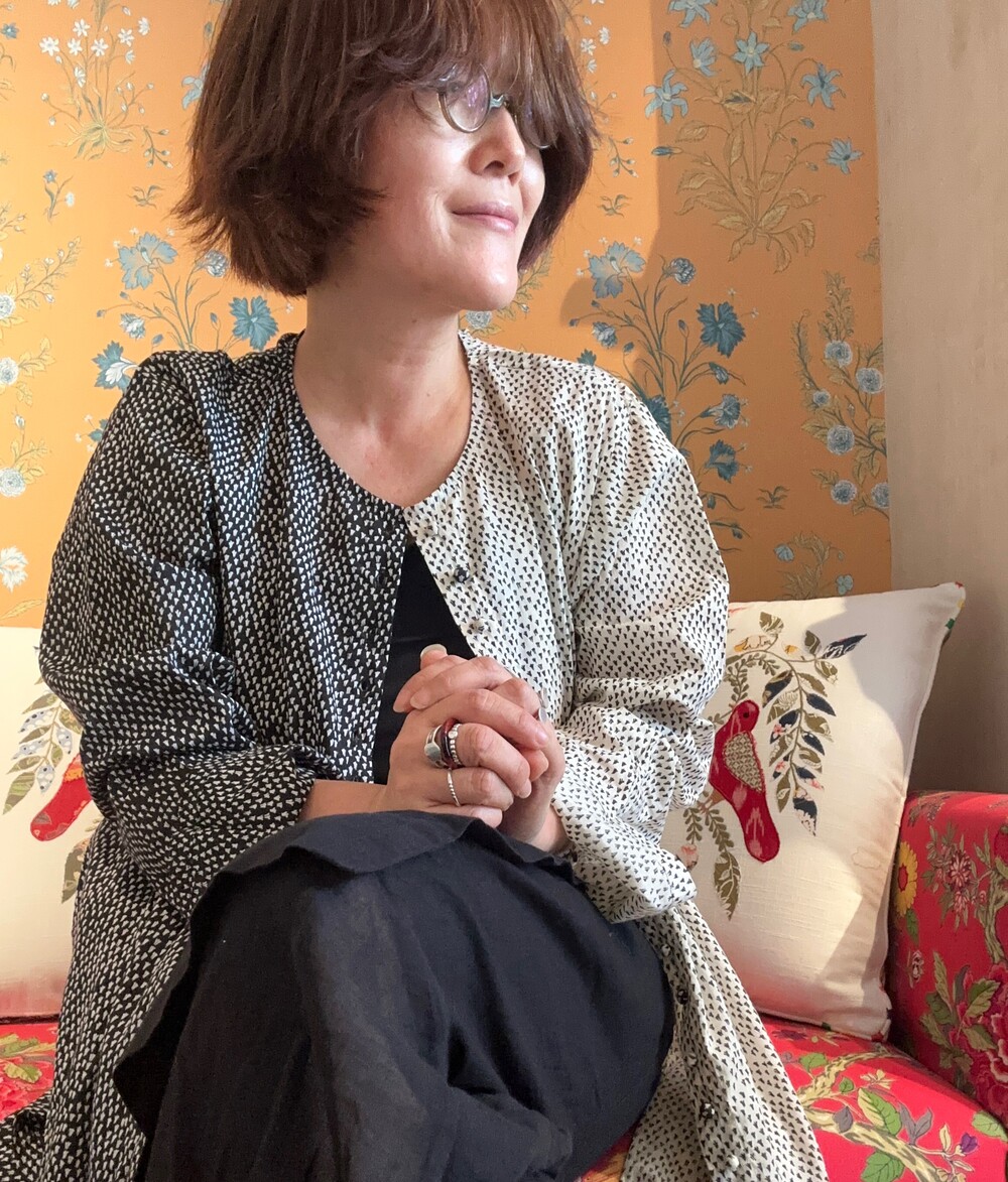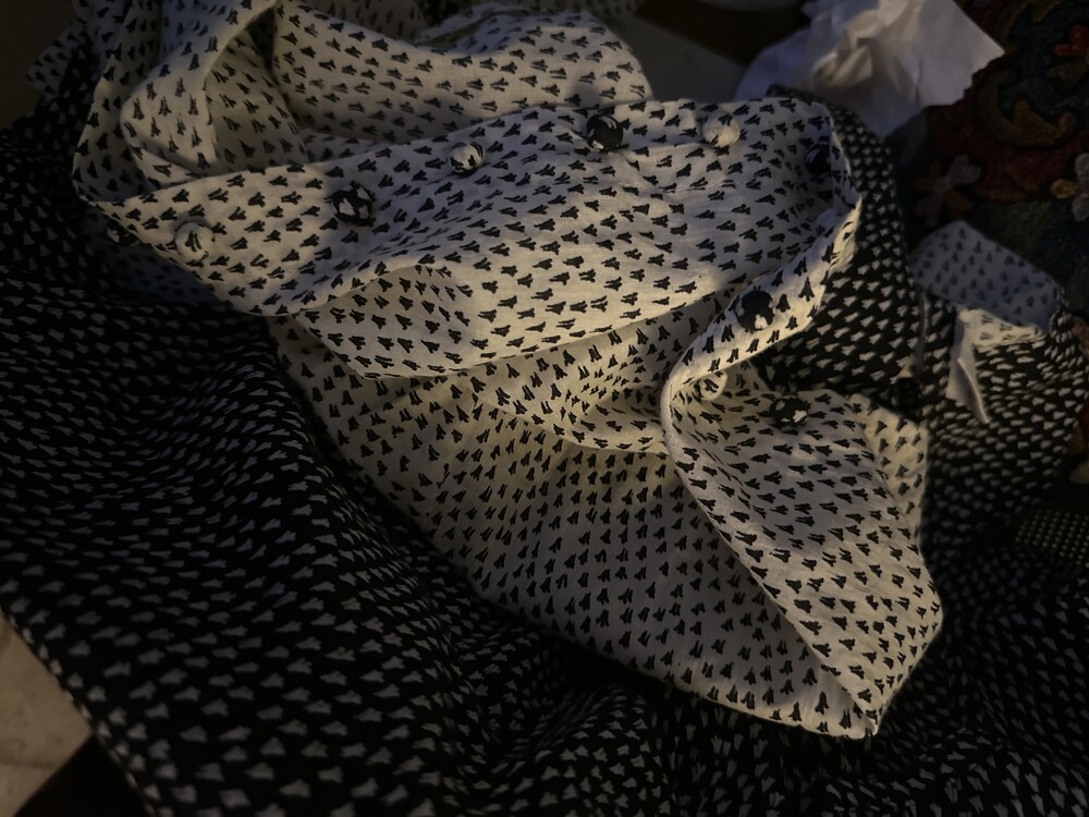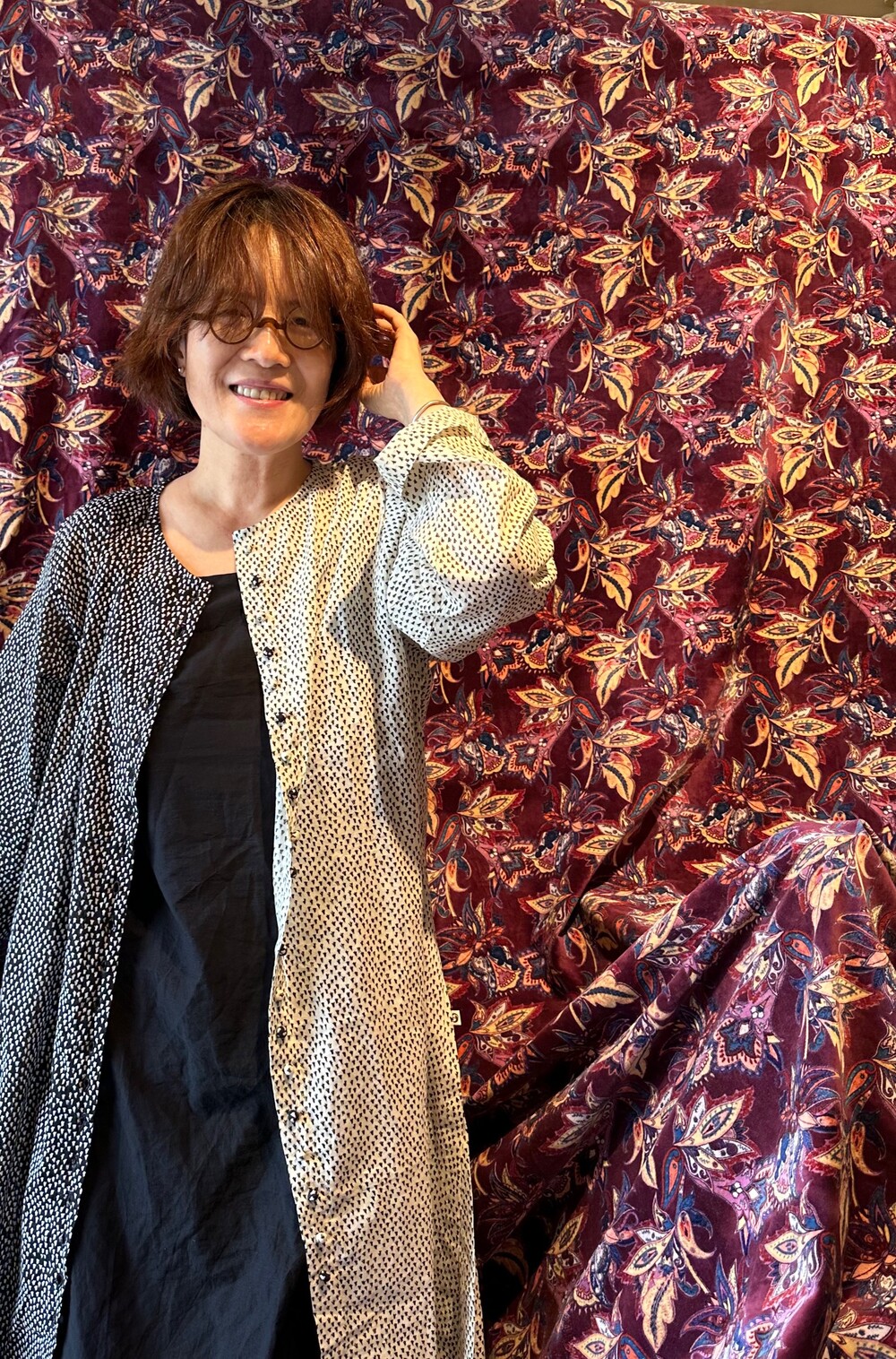 불랙과 화이트의 드래스 타입 로브에요 슬립드레스 또는 터틀넥 위에 걸치기도 좋죠!