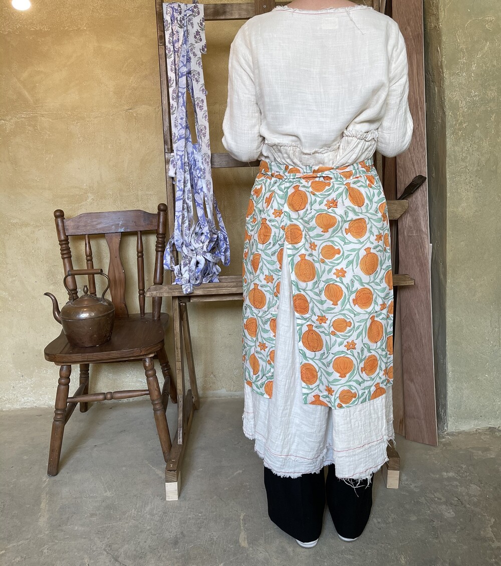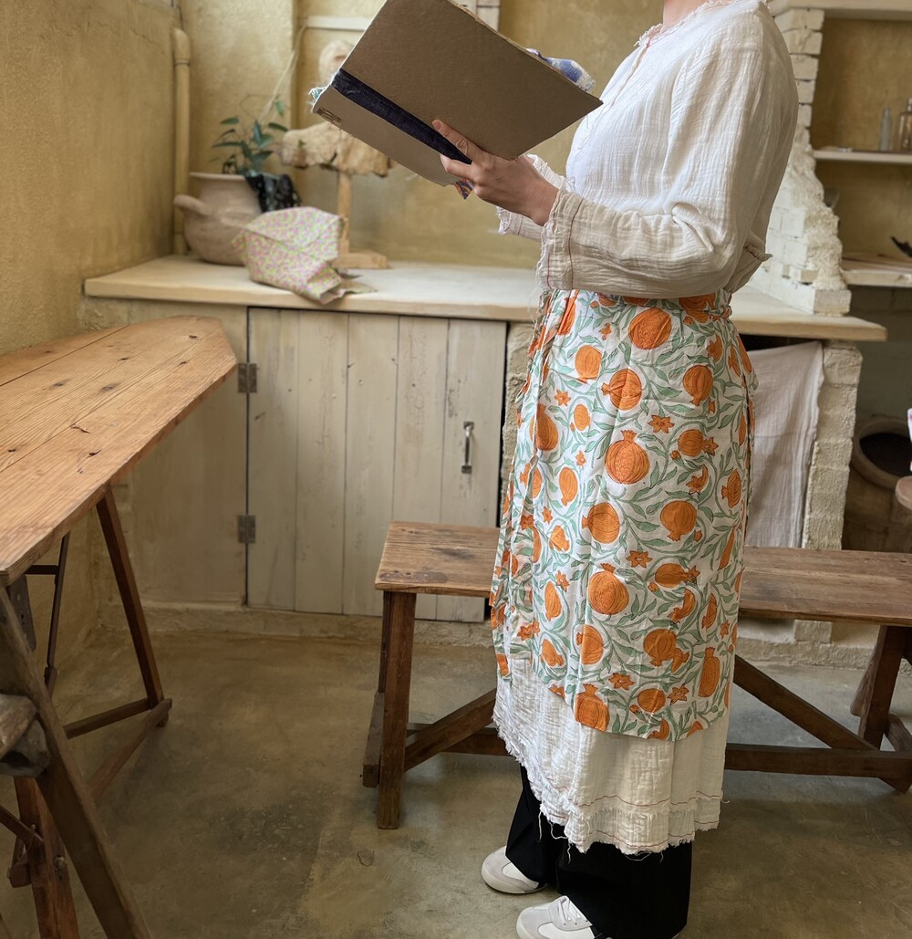 석류패턴의 앞치마에요 무릎기장이고 스커트처럼 덧입으시기도 좋아요