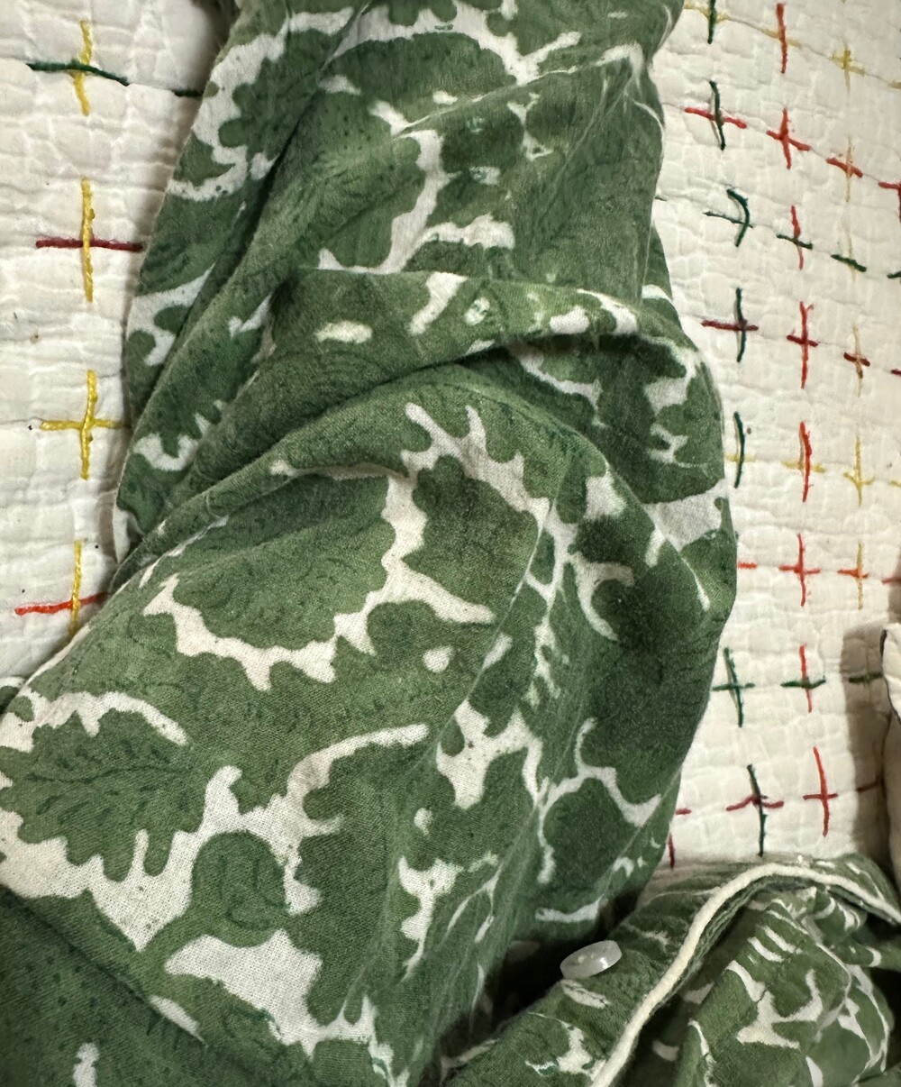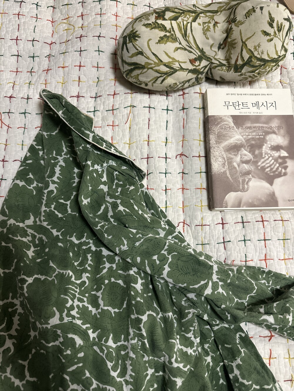 면소재이고 인도에서 제작되었으며 사이즈 원사이즈에요 77사이즈까지 넉넉히 입으실수있어요